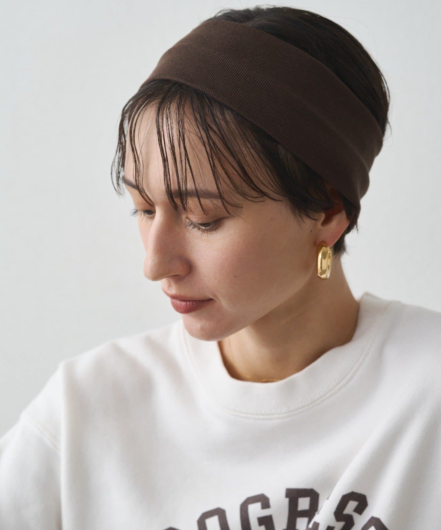 シンプルなデザインながら、洗練された印象を与えてくれるヘアバンド。
