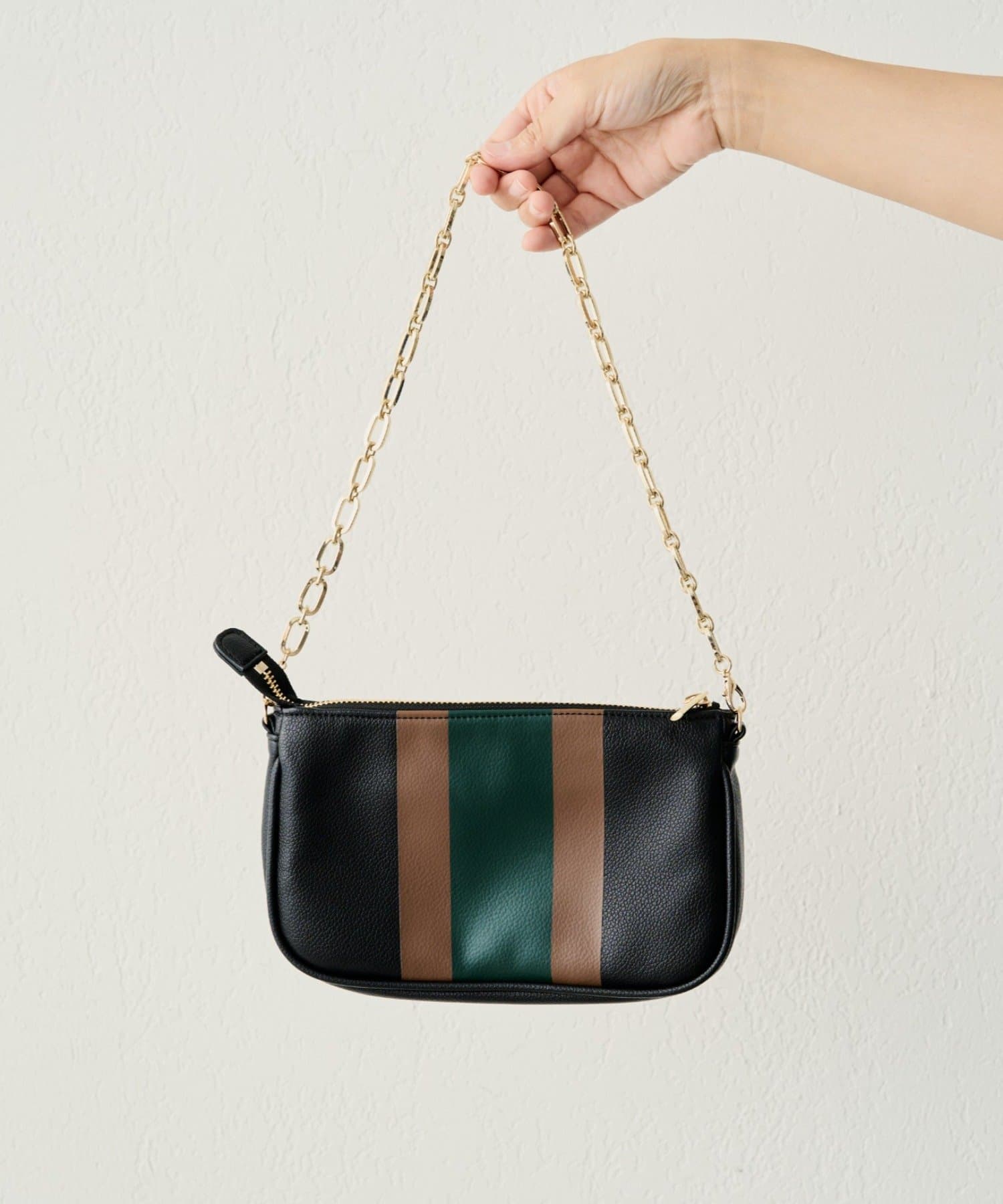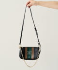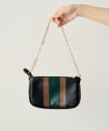 ゴールドのチェーンストラップと、付属のショルダーストラップでその日のコーディネートによって自由にアレンジできます。