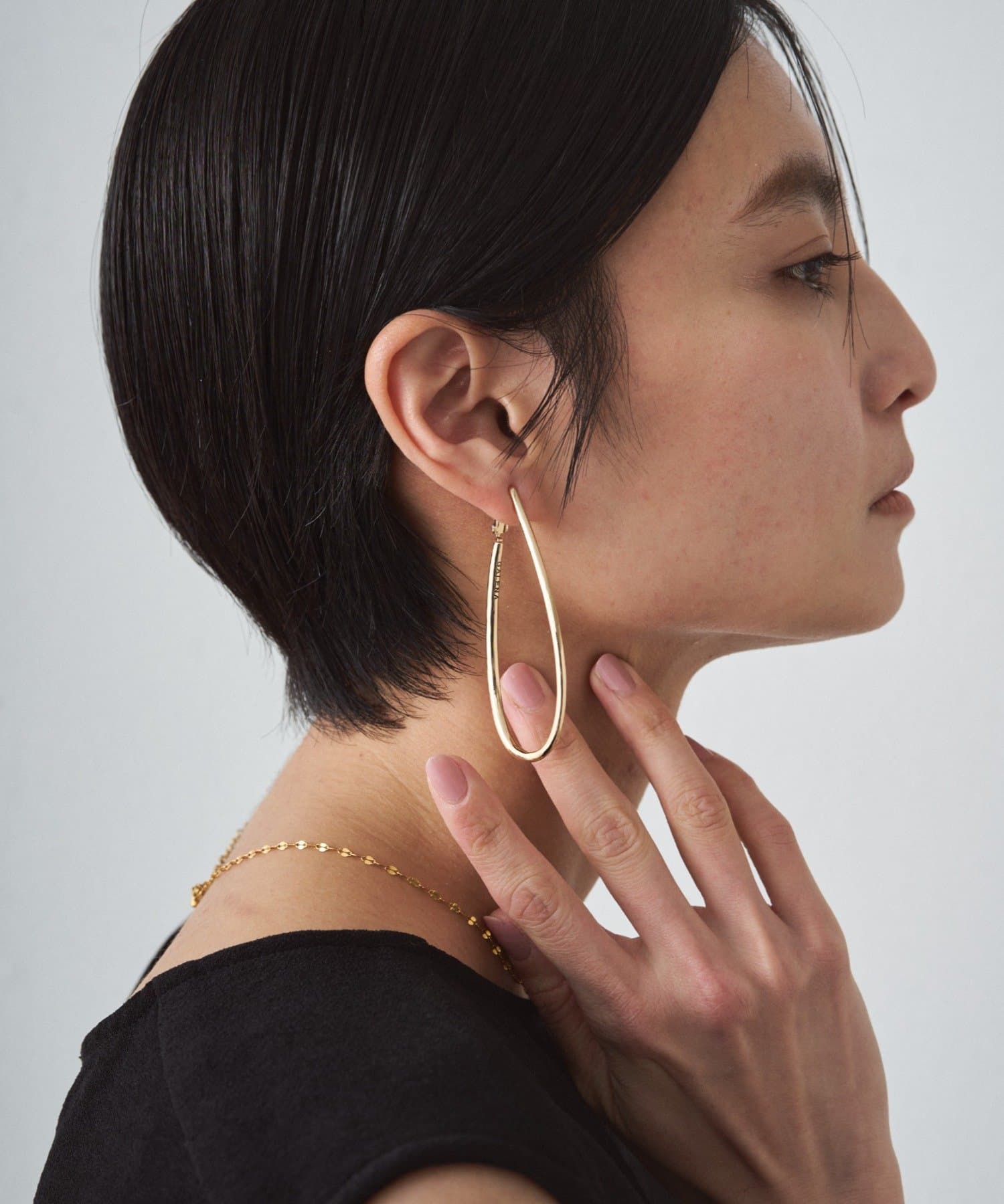 耳元で優雅に揺れるドロップ型のシルエットが、