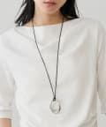 シンプルな装いにこそ映える、存在感のあるロングネックレス。