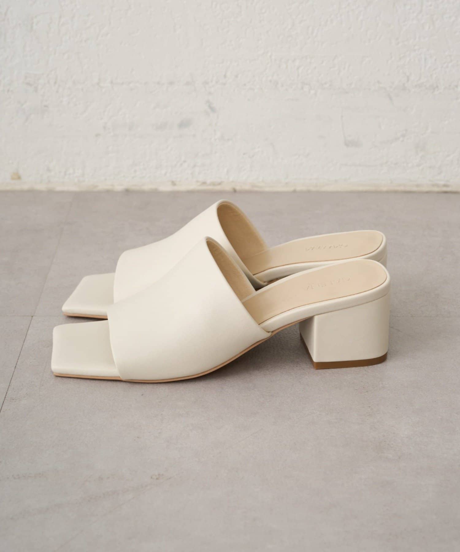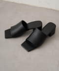 都会的で洗練された足元を演出する、スクエアトゥミュールサンダル。