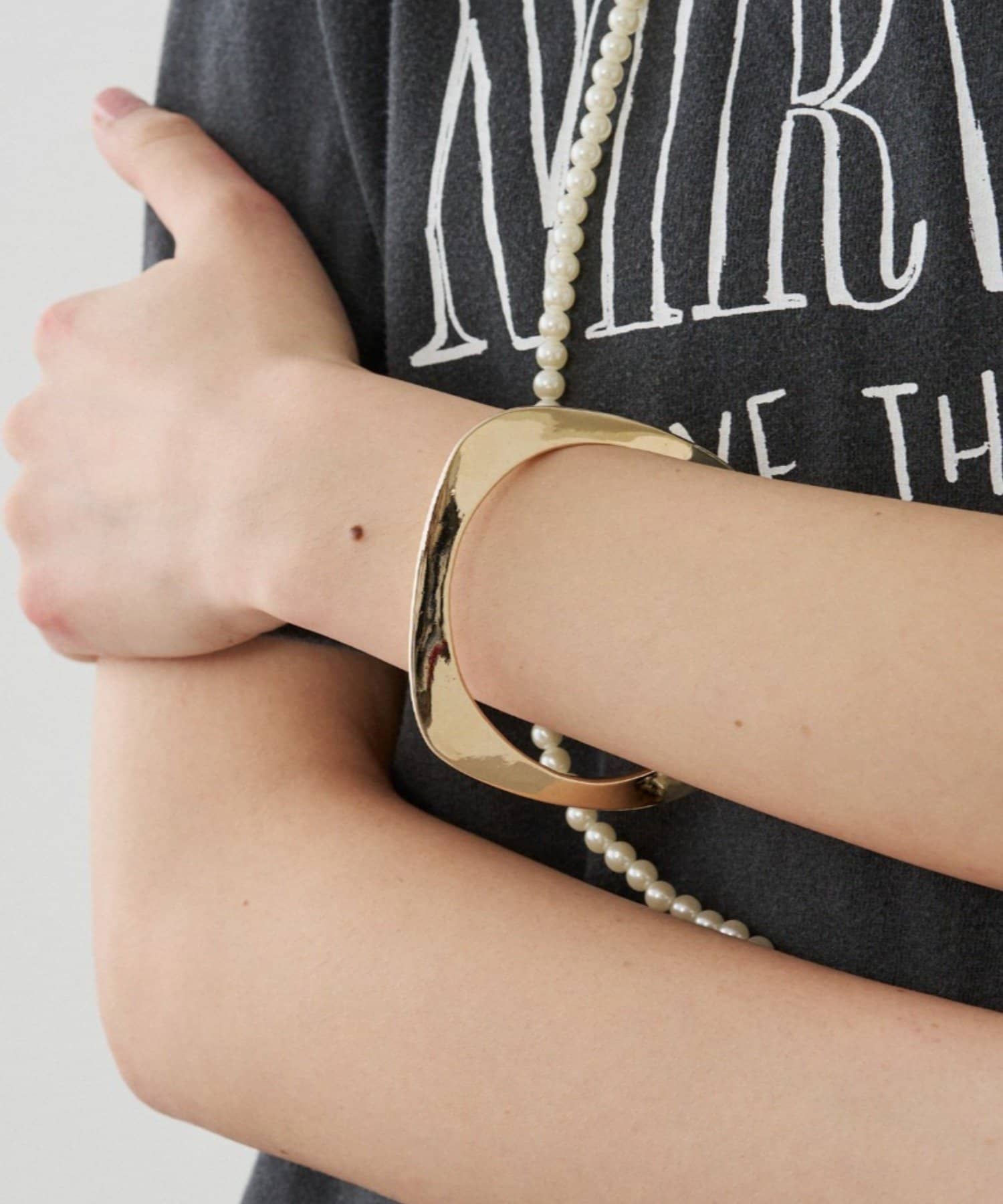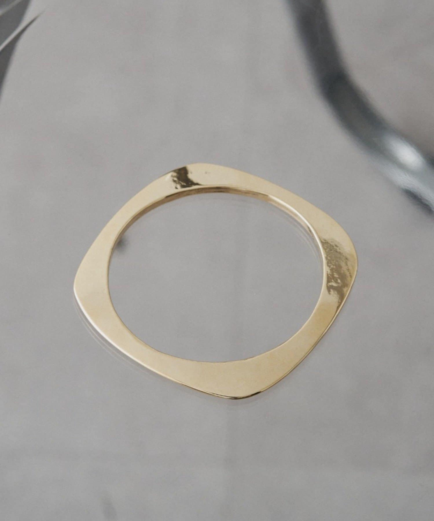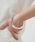 存在感のあるバングルですが、丸みのあるスクエア型で女性らしさも◎