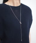 繊細なラインが光を捉え、胸元にさりげない存在感を放つロングネックレスです。