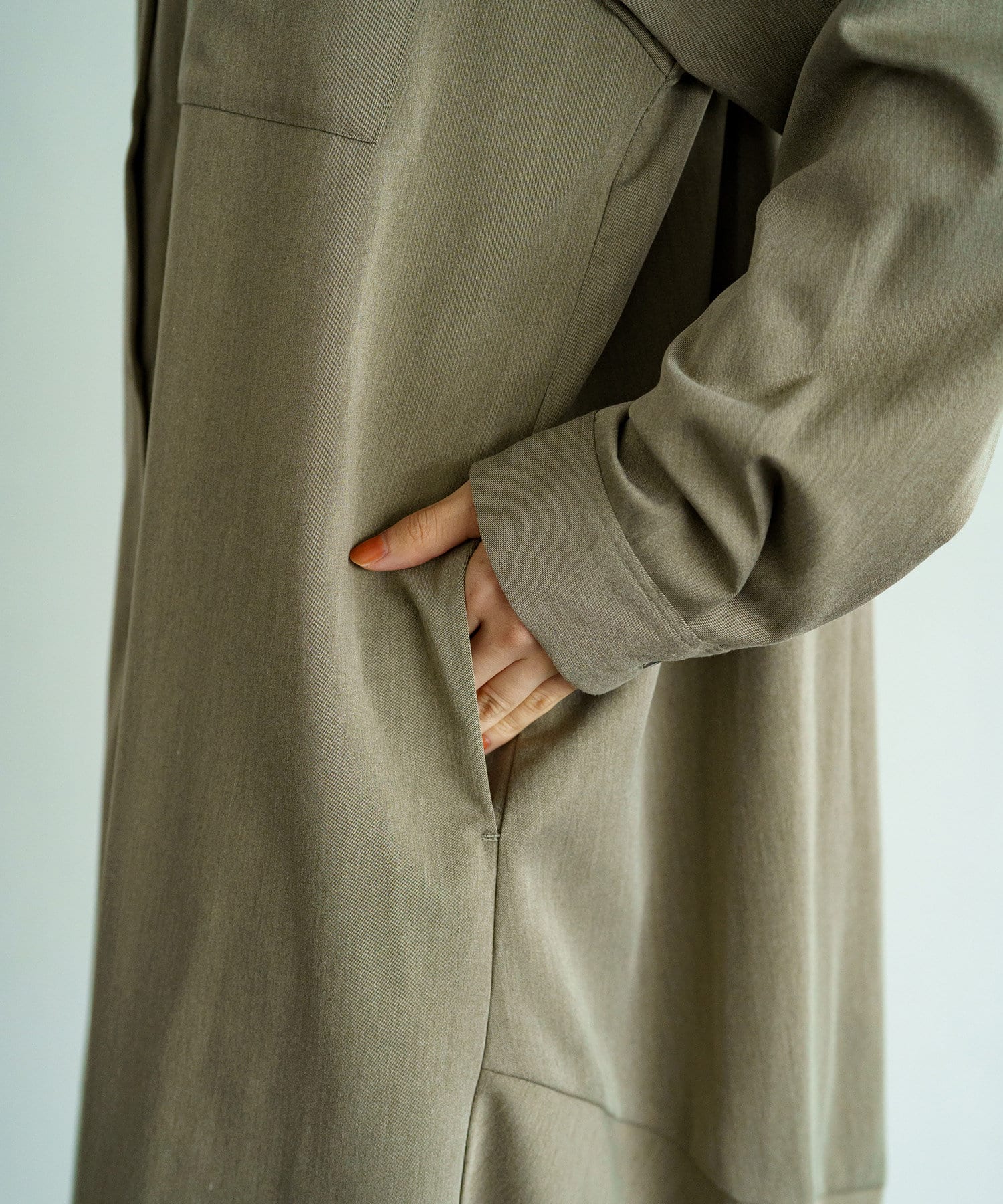 オーセンティックなデザインながら、オフボディのシルエットと大げさなまでの長丈によって新鮮な雰囲気に仕上がっています。