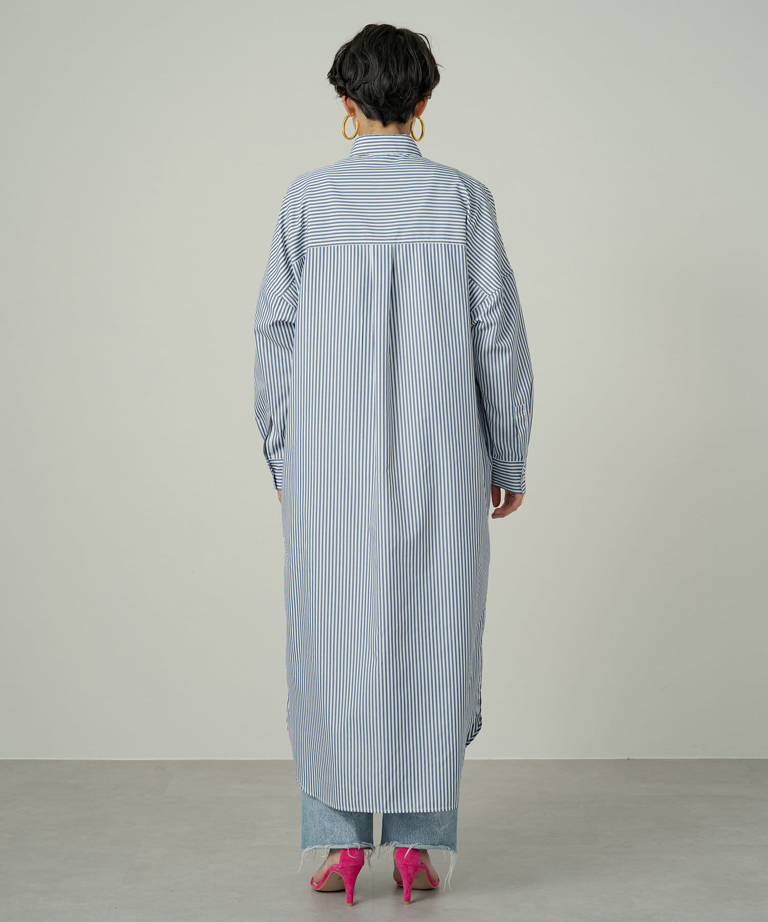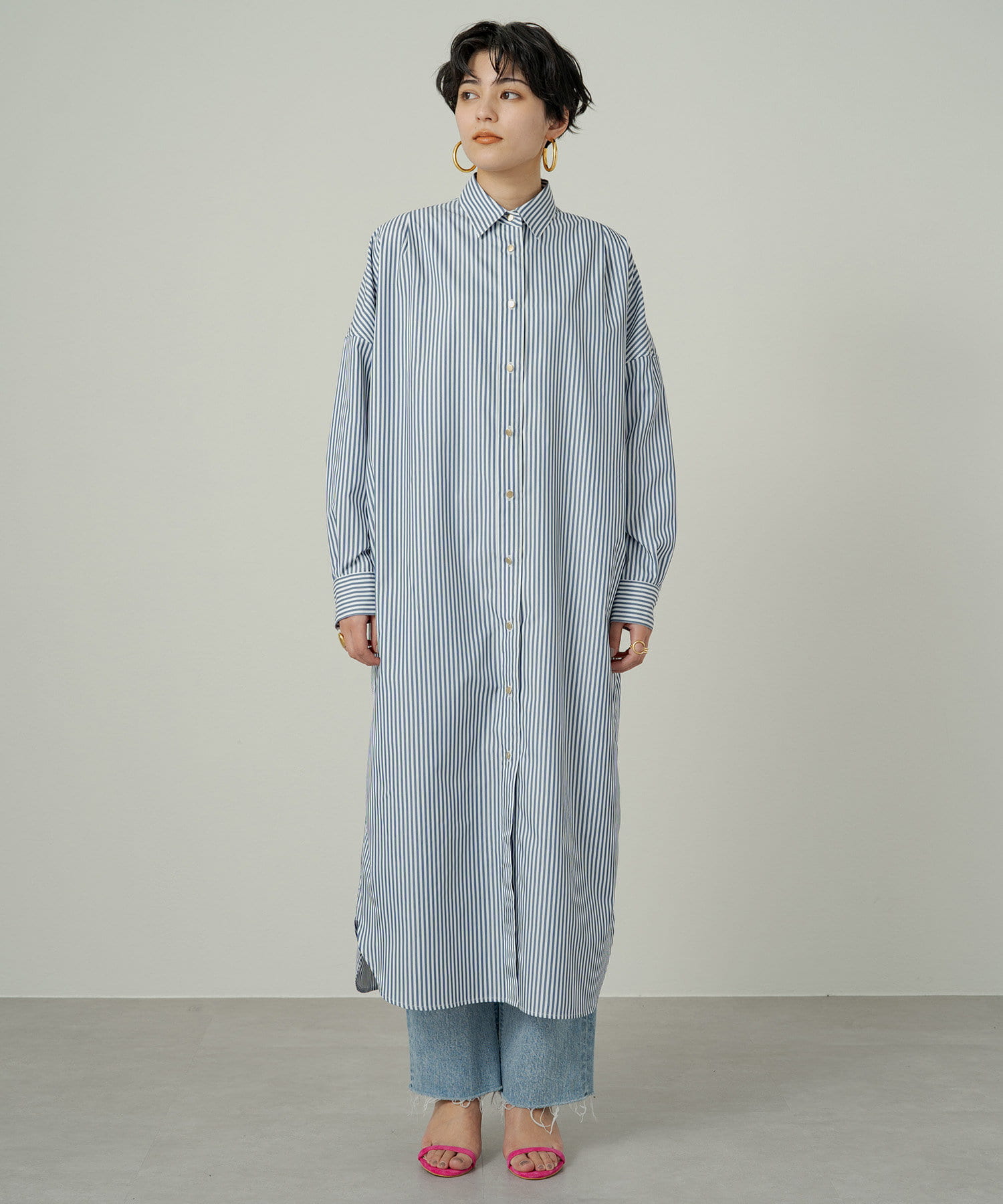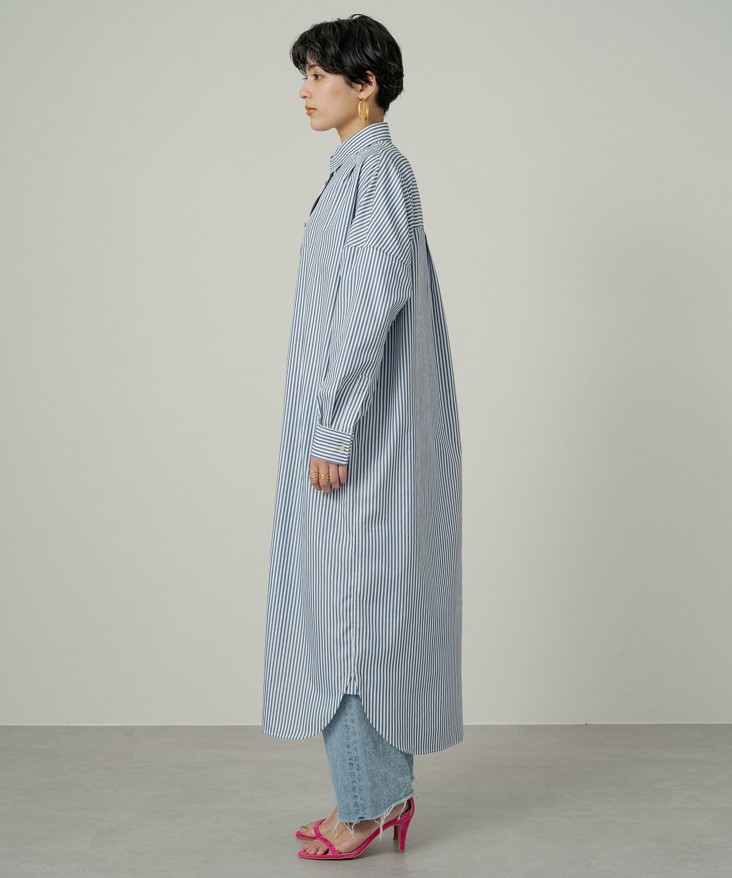 *ミドルピッチのストライプが映えるシャツワンピース*