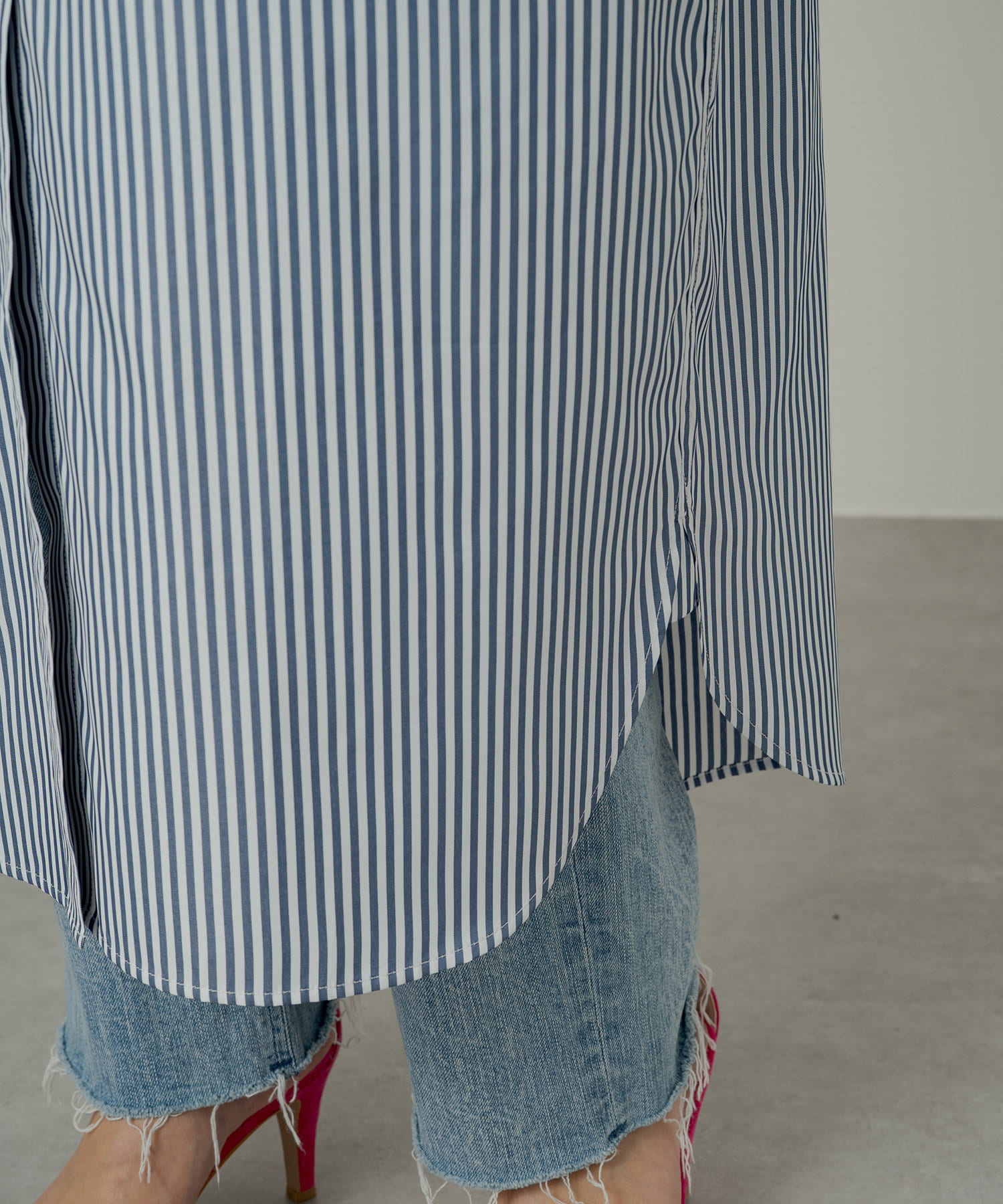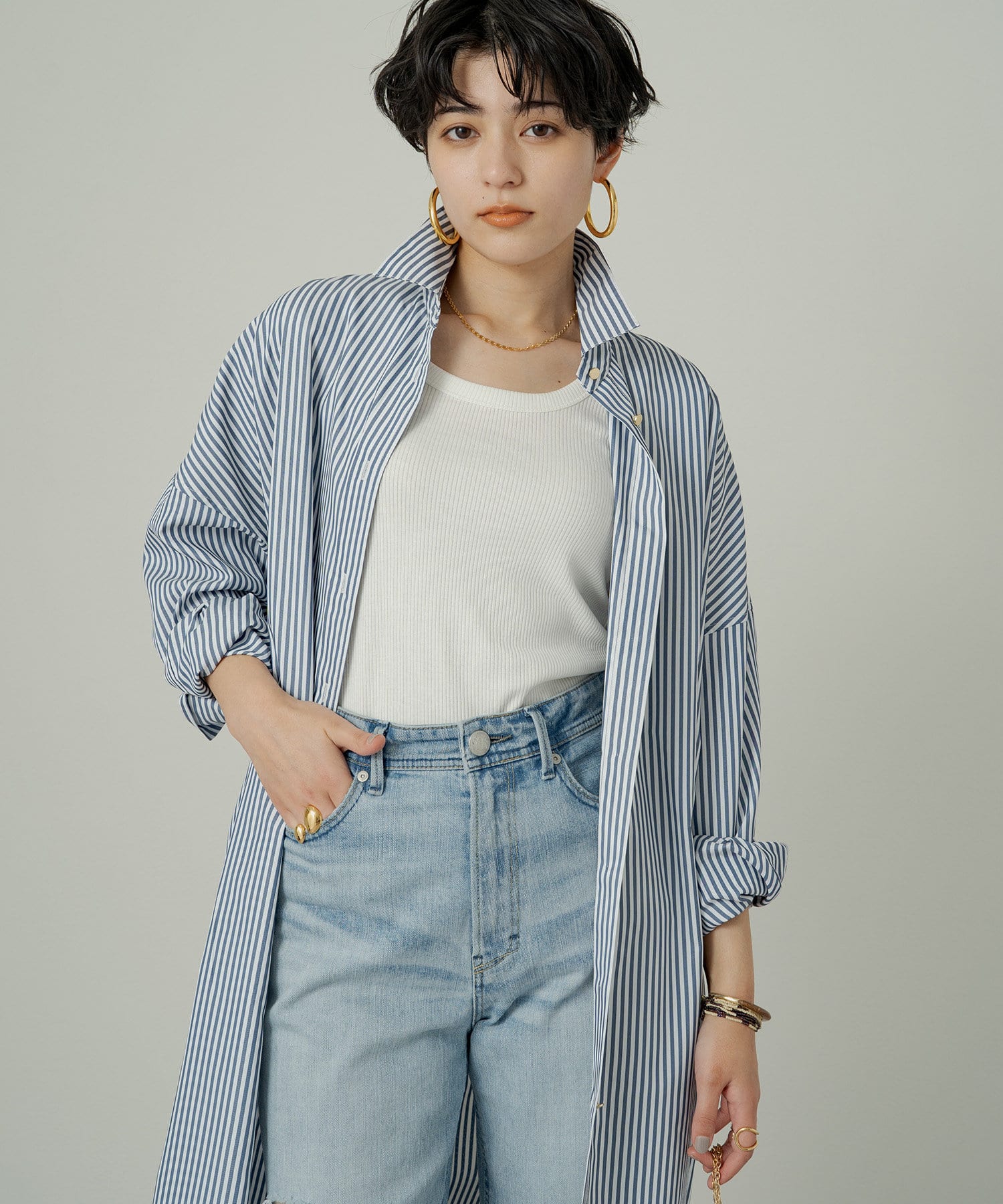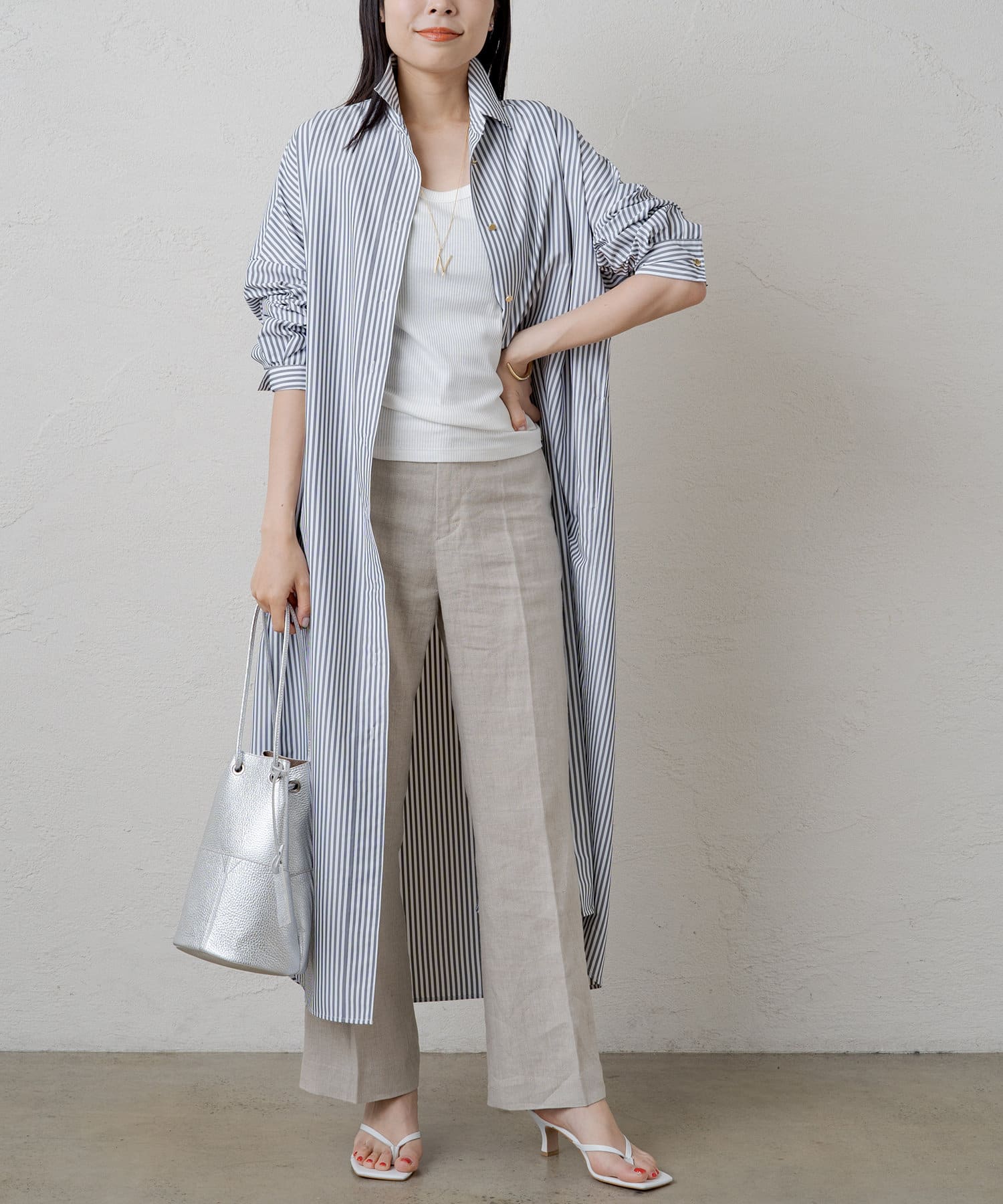 *ミドルピッチのストライプが映えるシャツワンピース*