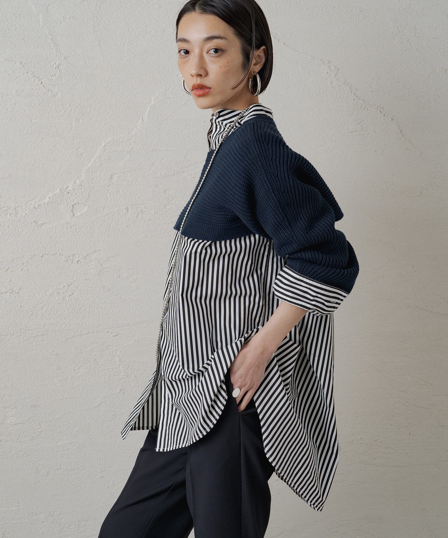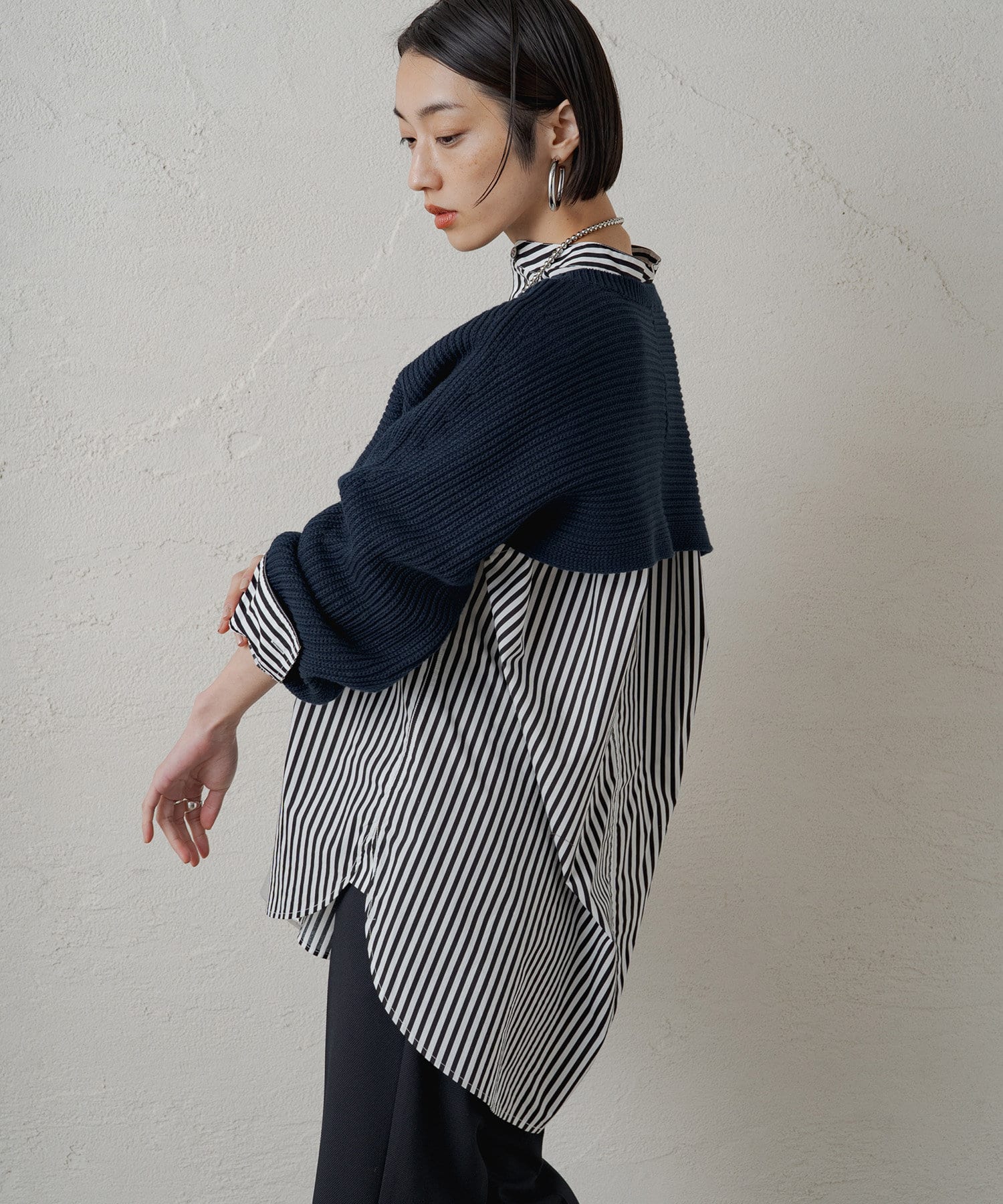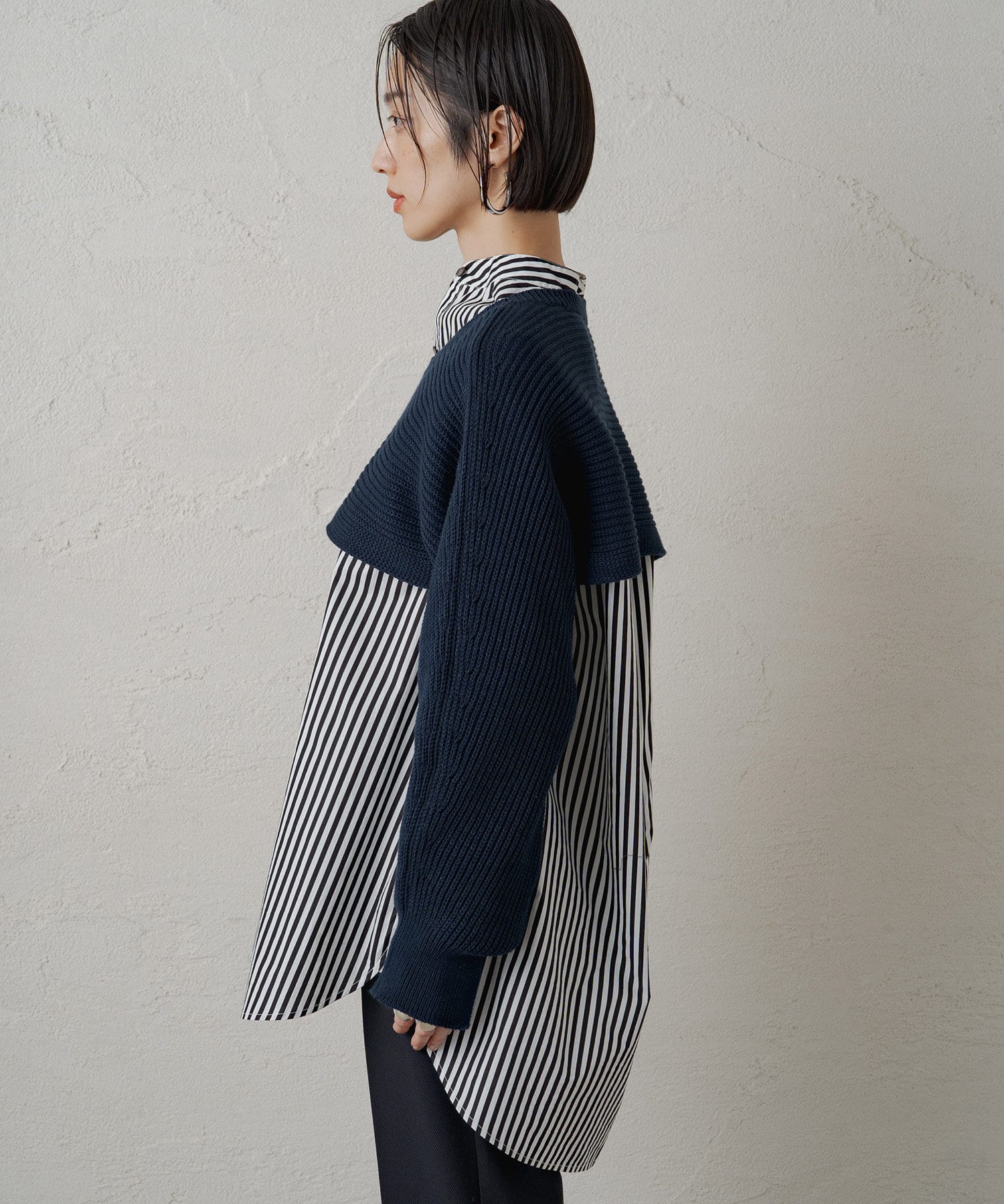 レイヤード気分高まるマイクロ丈のショートニット