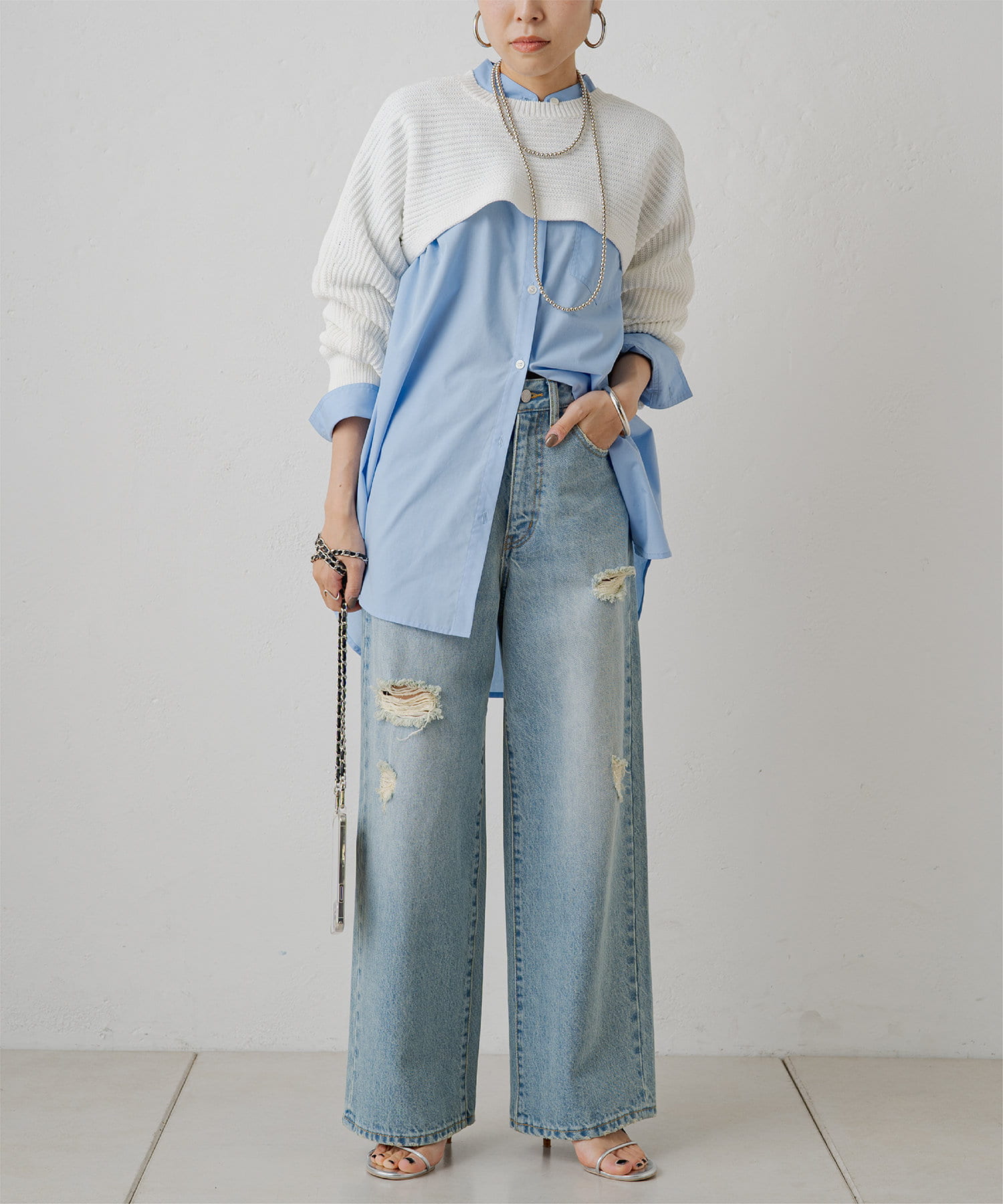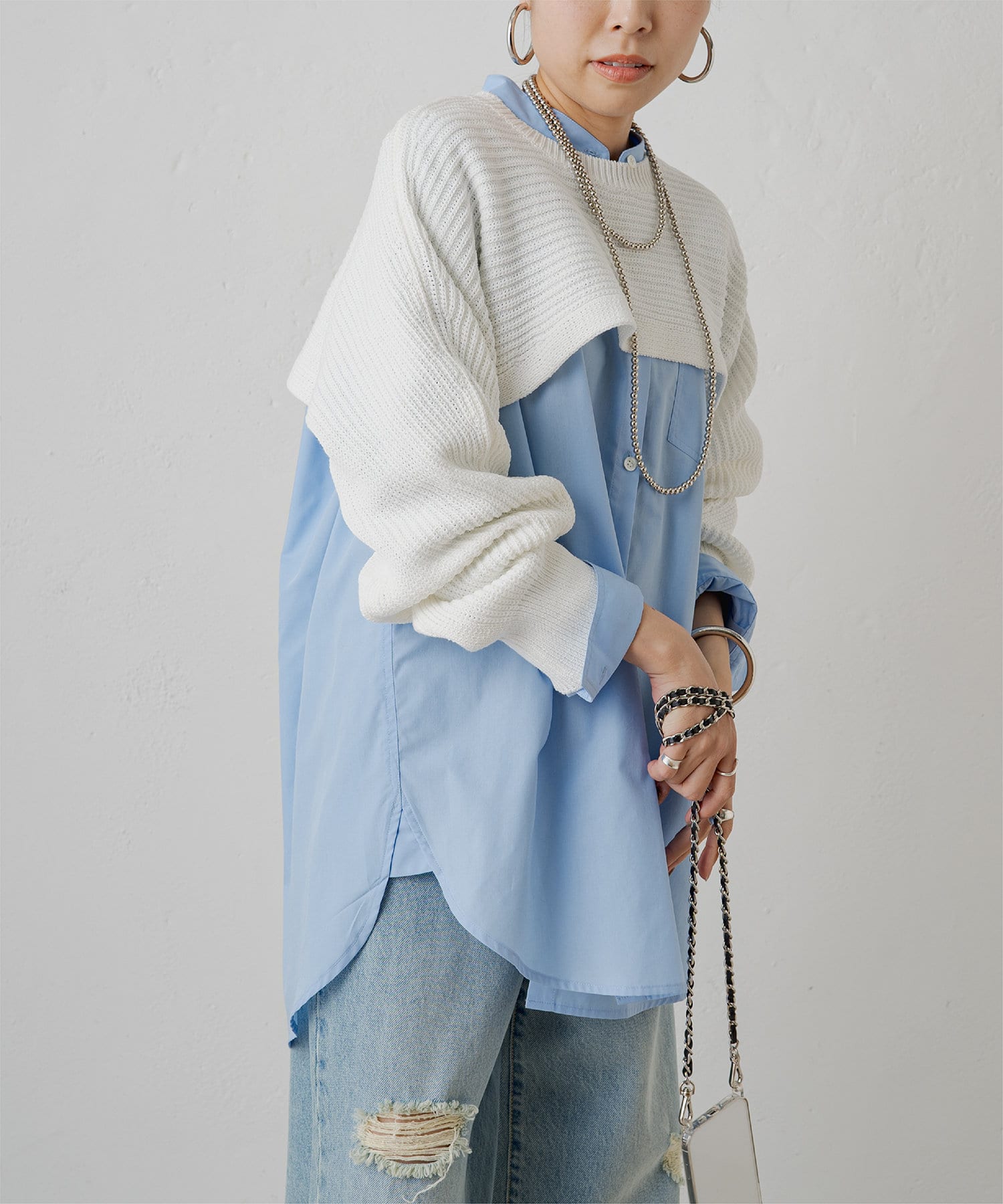 シャツやシャツワンピース、カットソーの上に重ねるだけで、ガラリと印象を変えてくれるアイテム。