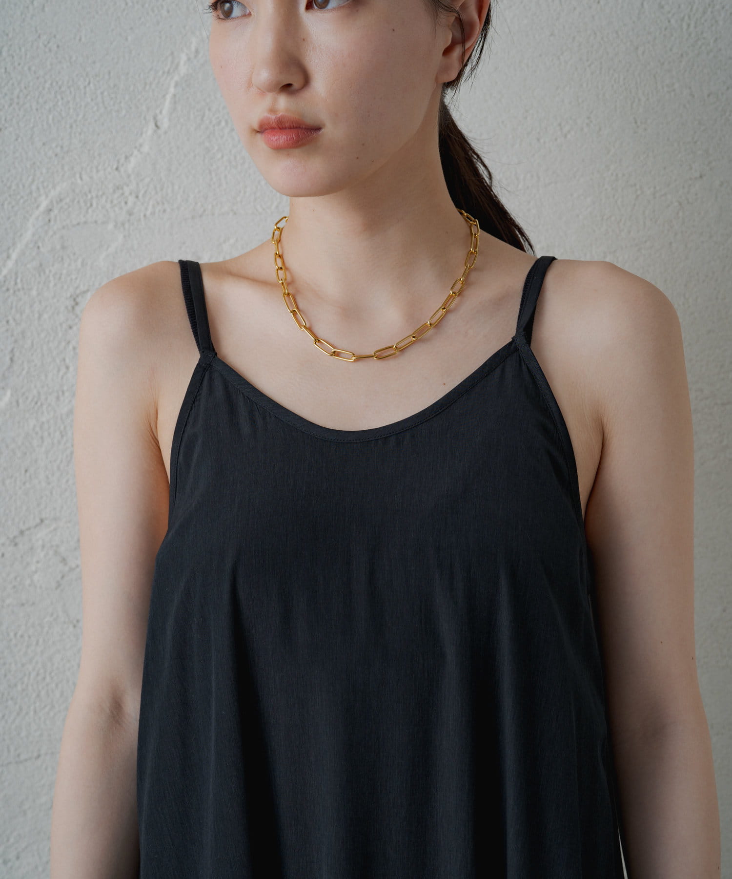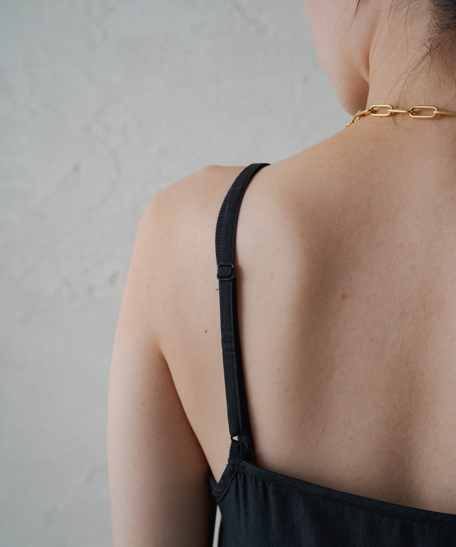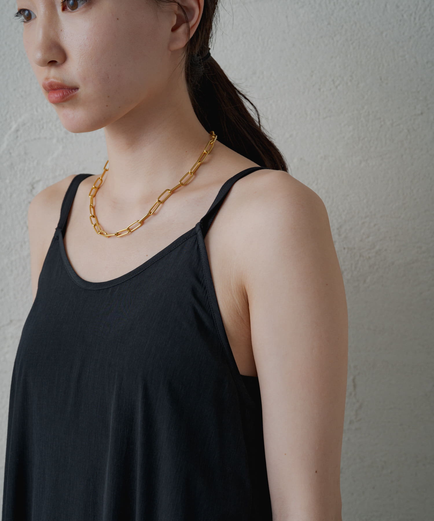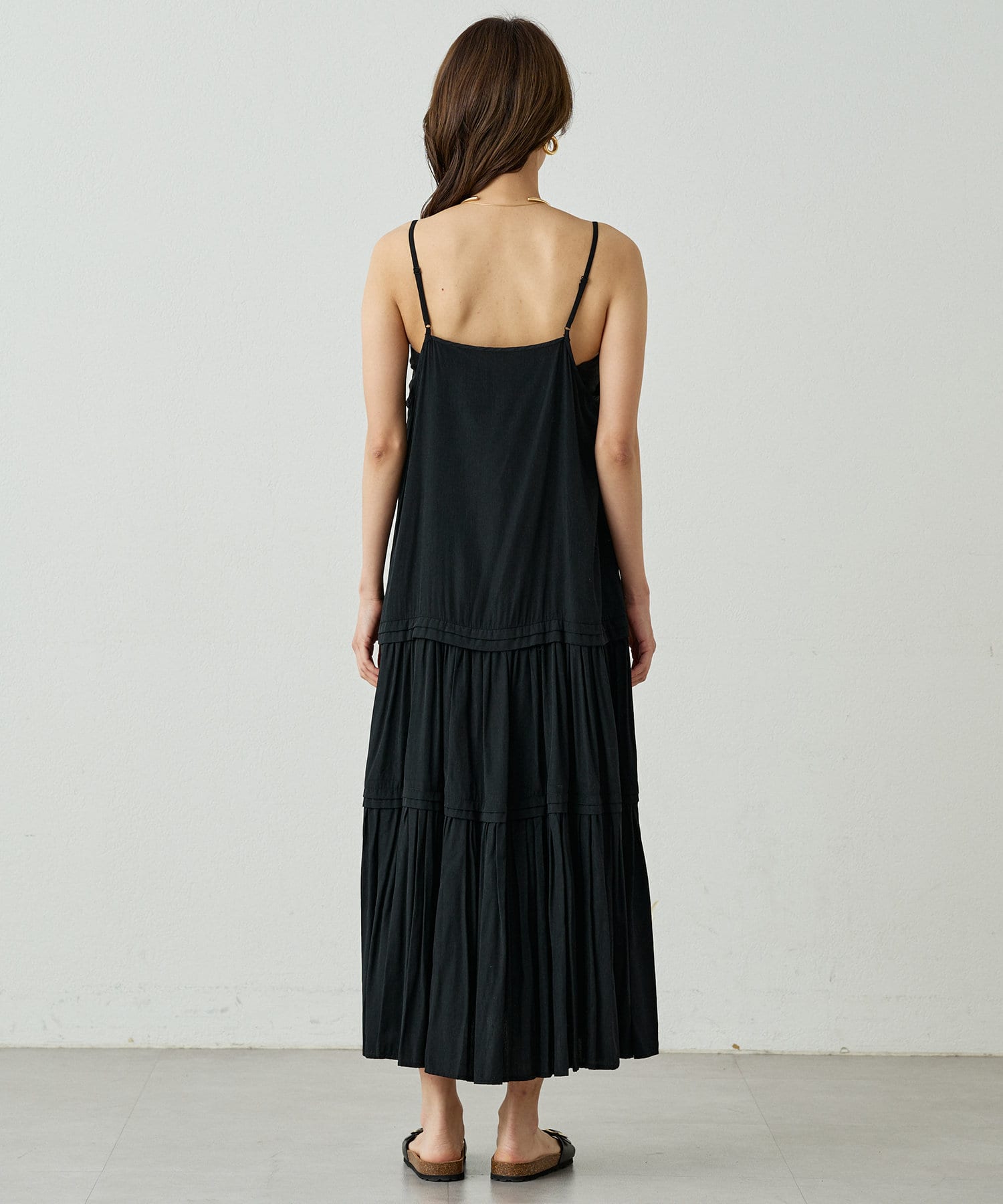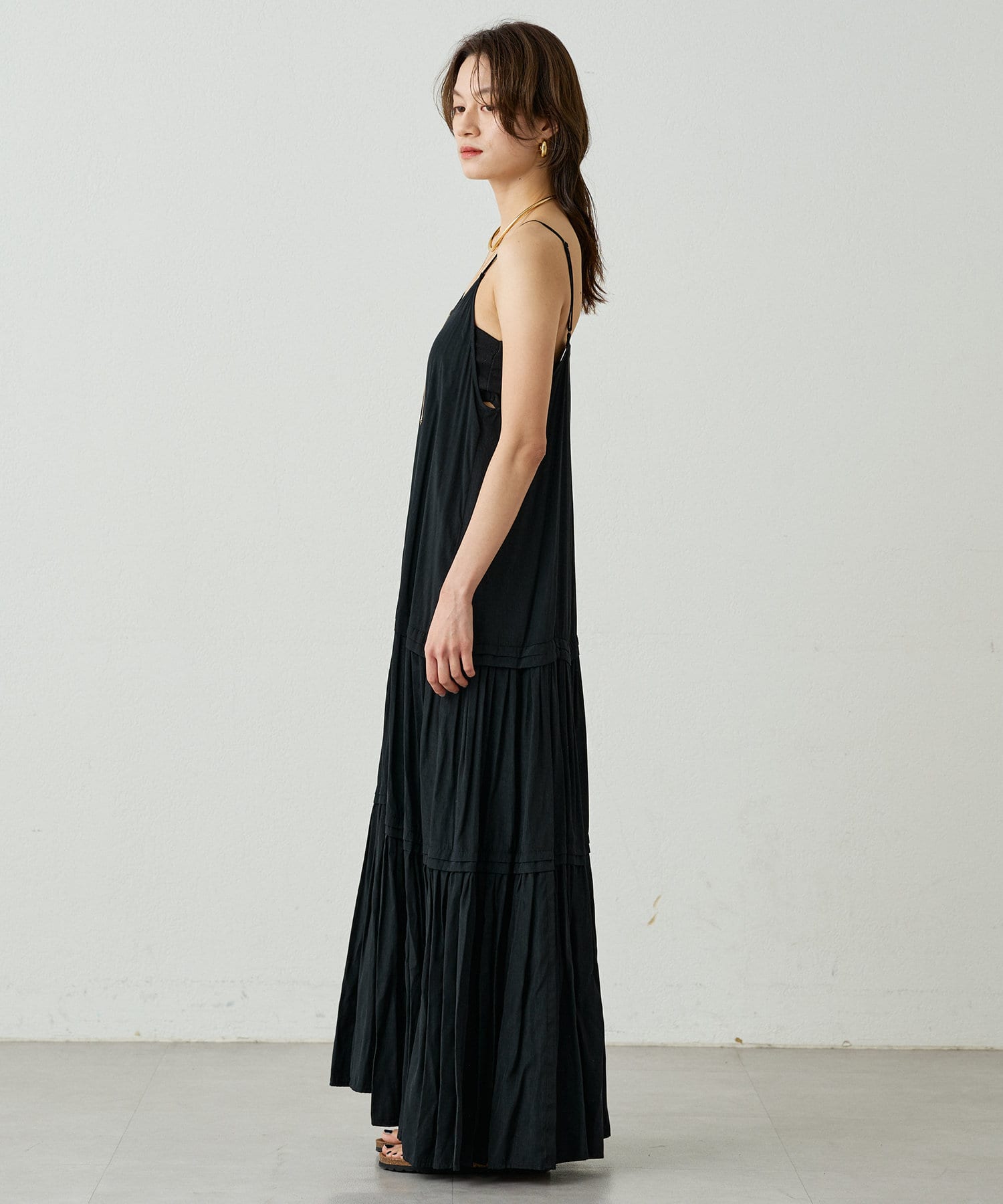 裾に向かってナチュラルな揺れ感を楽しめるキャミソールタイプのワンピース。