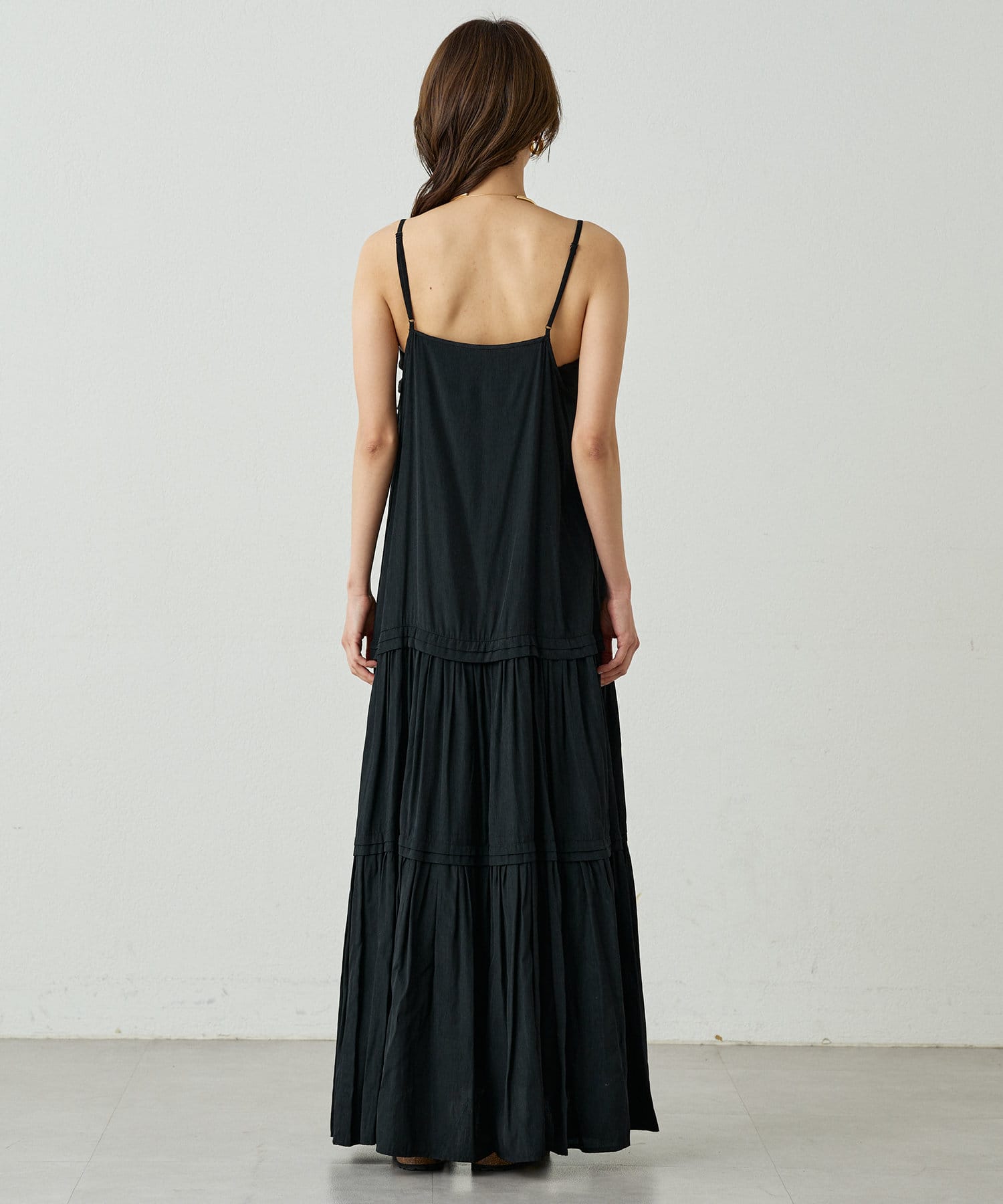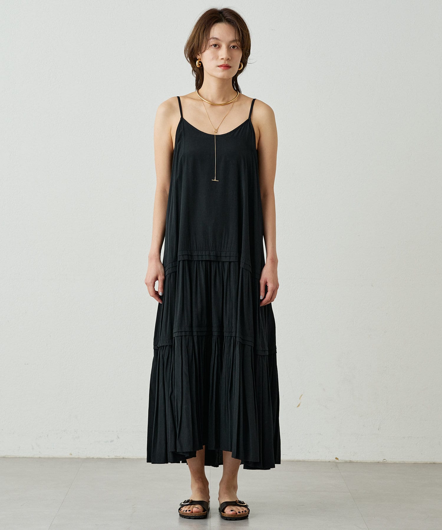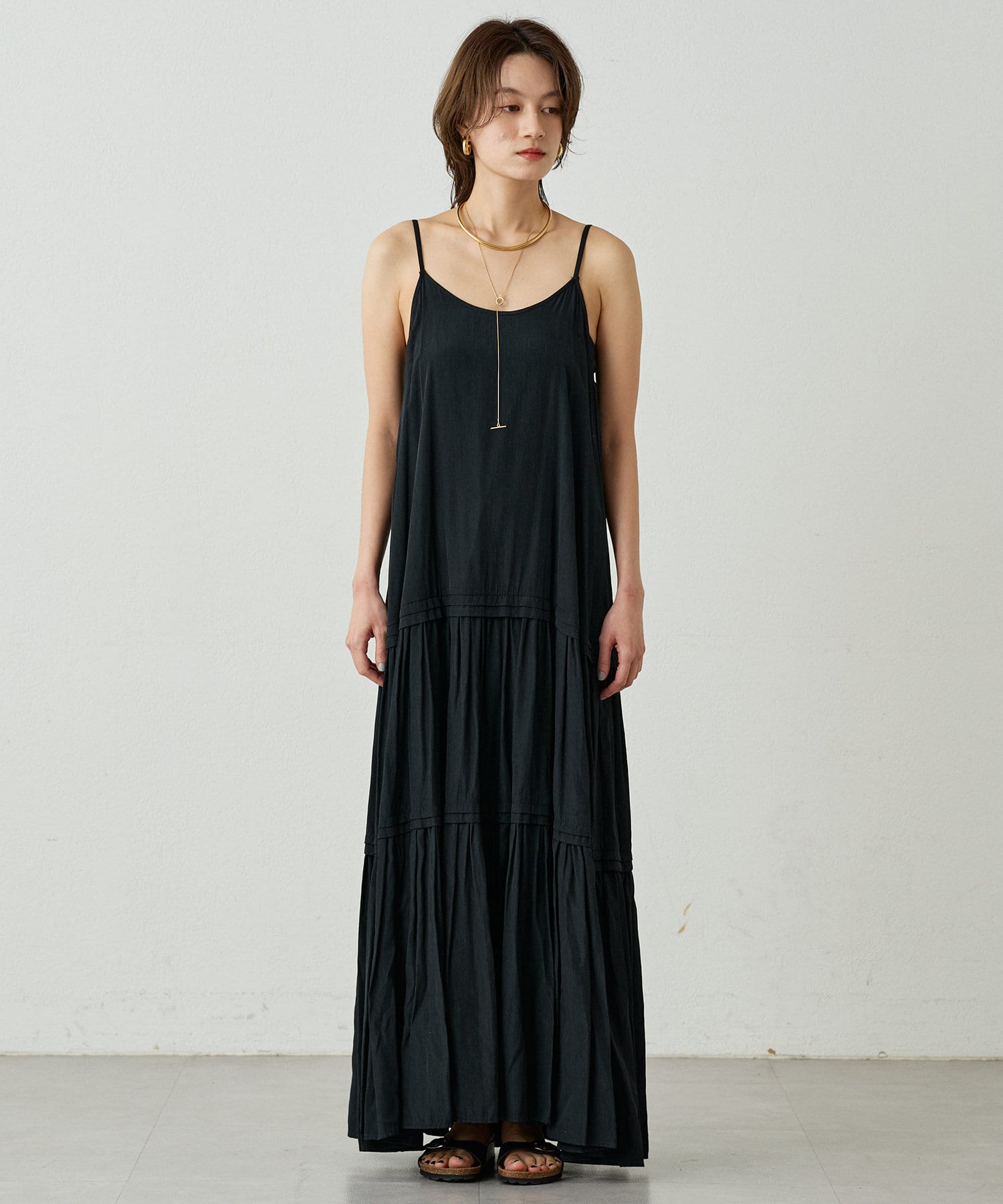 【名品ワンピ/手洗い可能】サテンティアードキャミワンピース