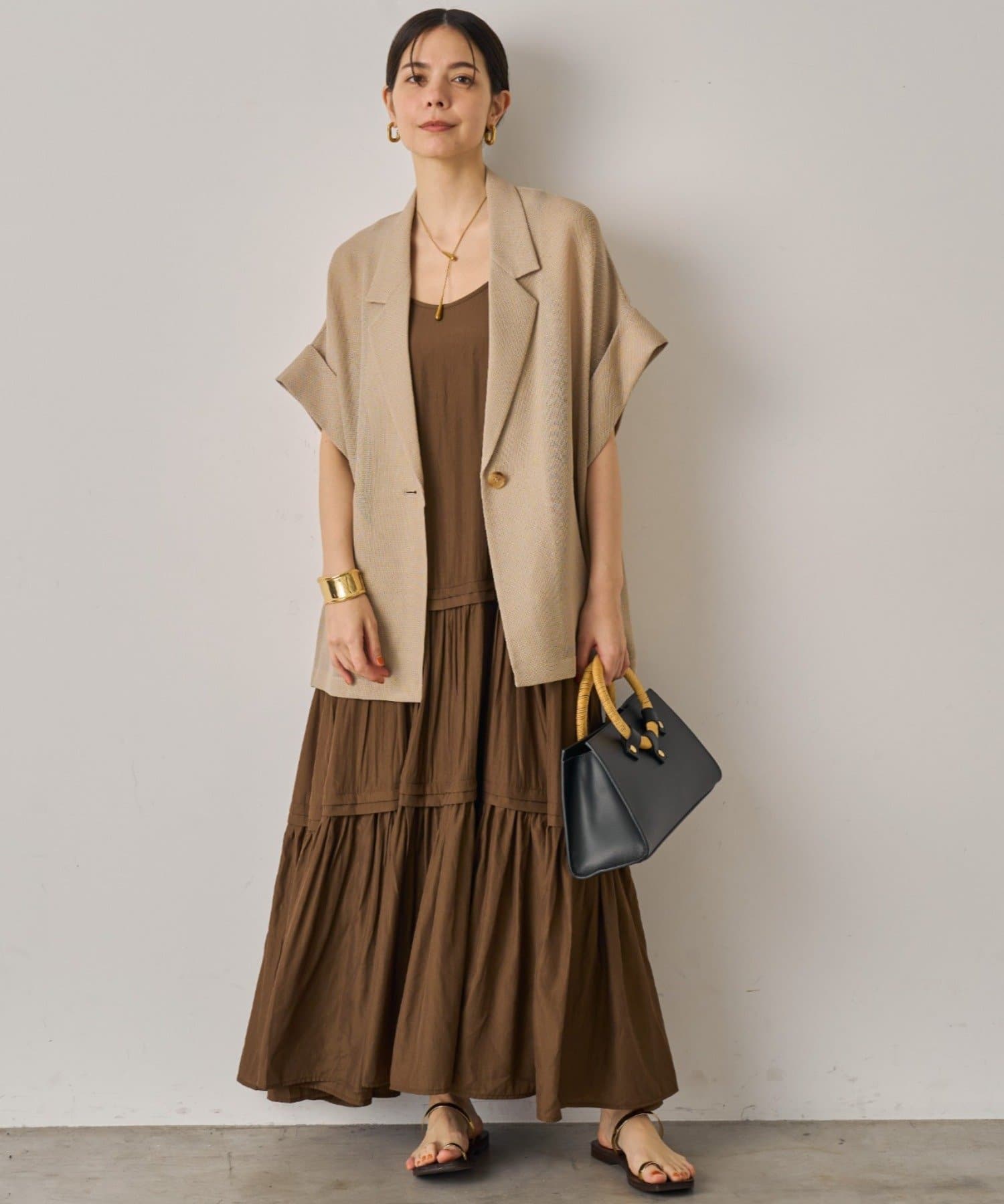 秋口はワンピースの上にオーバーサイズのニットを重ねたり、FURカシミヤのカーディガンを合わせたりと通年着まわしをお楽しみいただけます。
