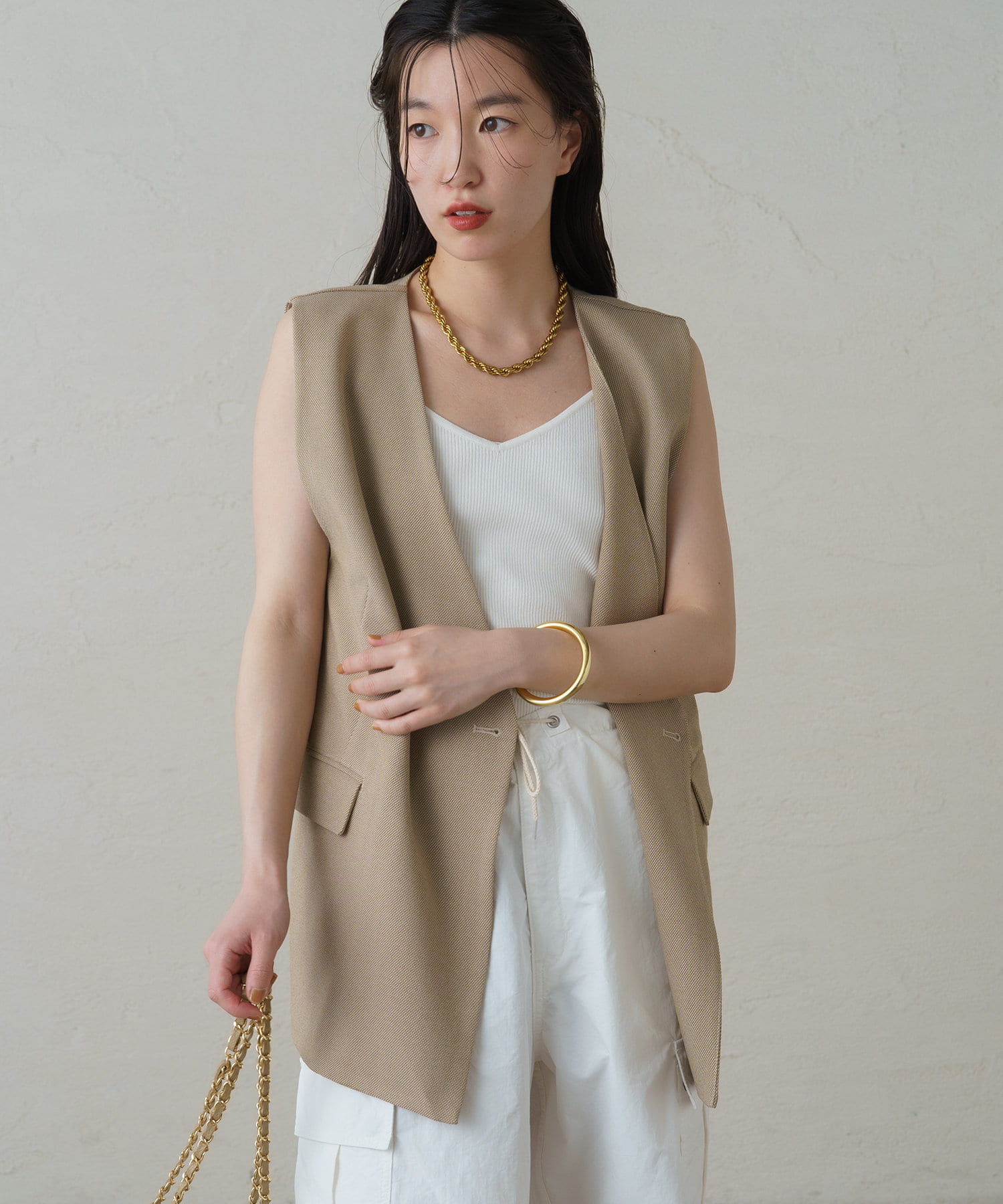 肩紐の長さが調整できるので、合わせる洋服によって着丈や胸元の開き具合を調整できるようになっています。