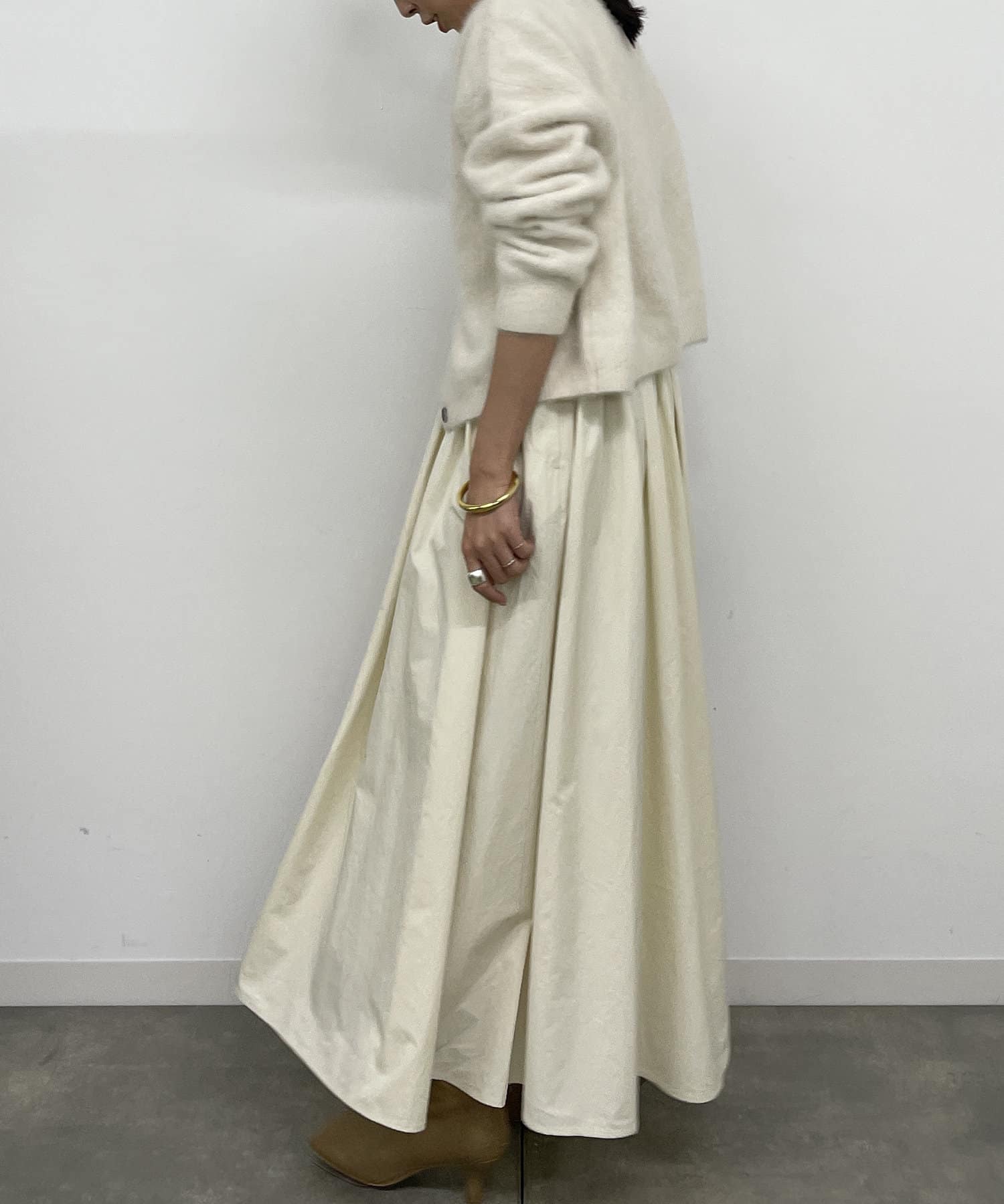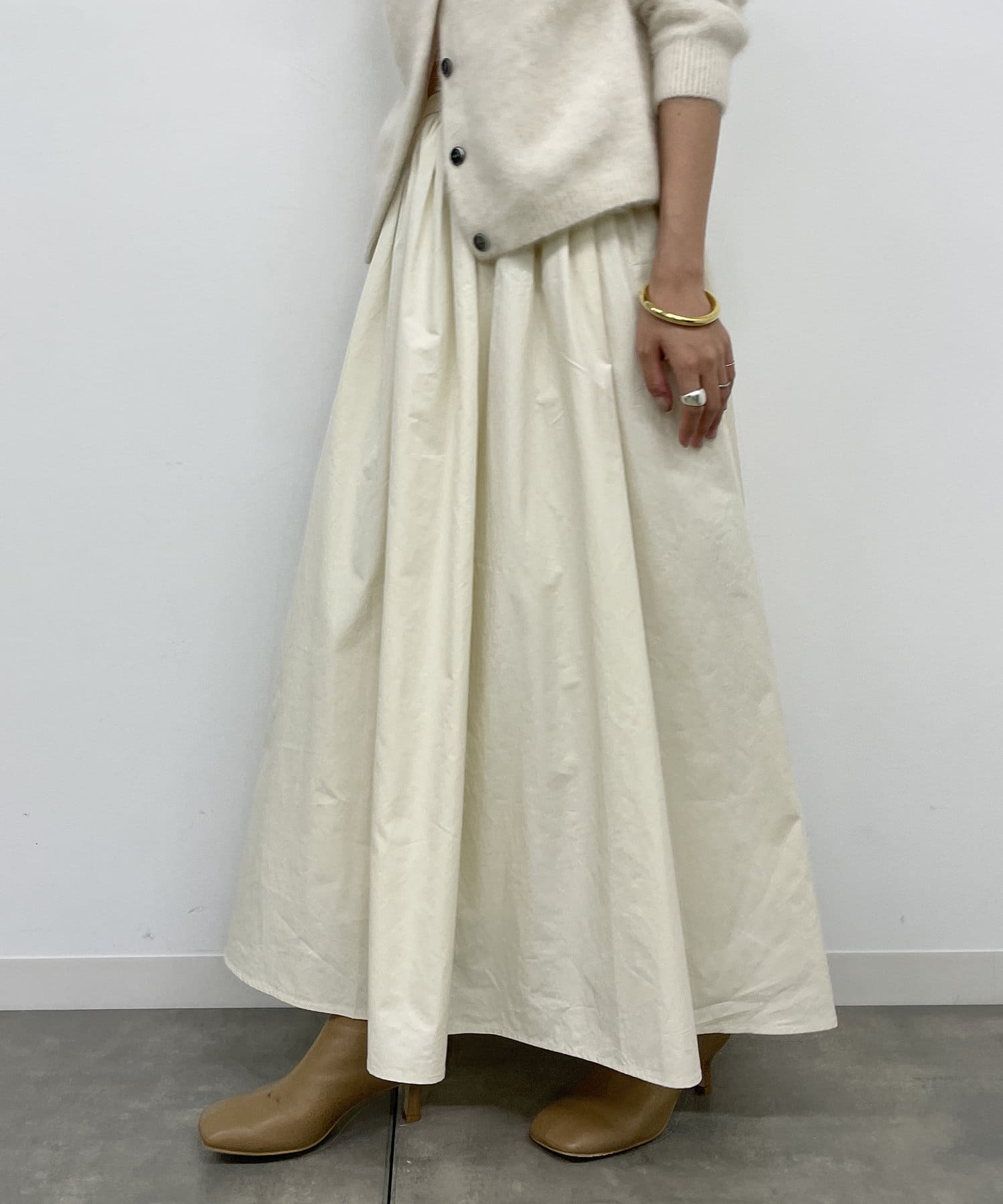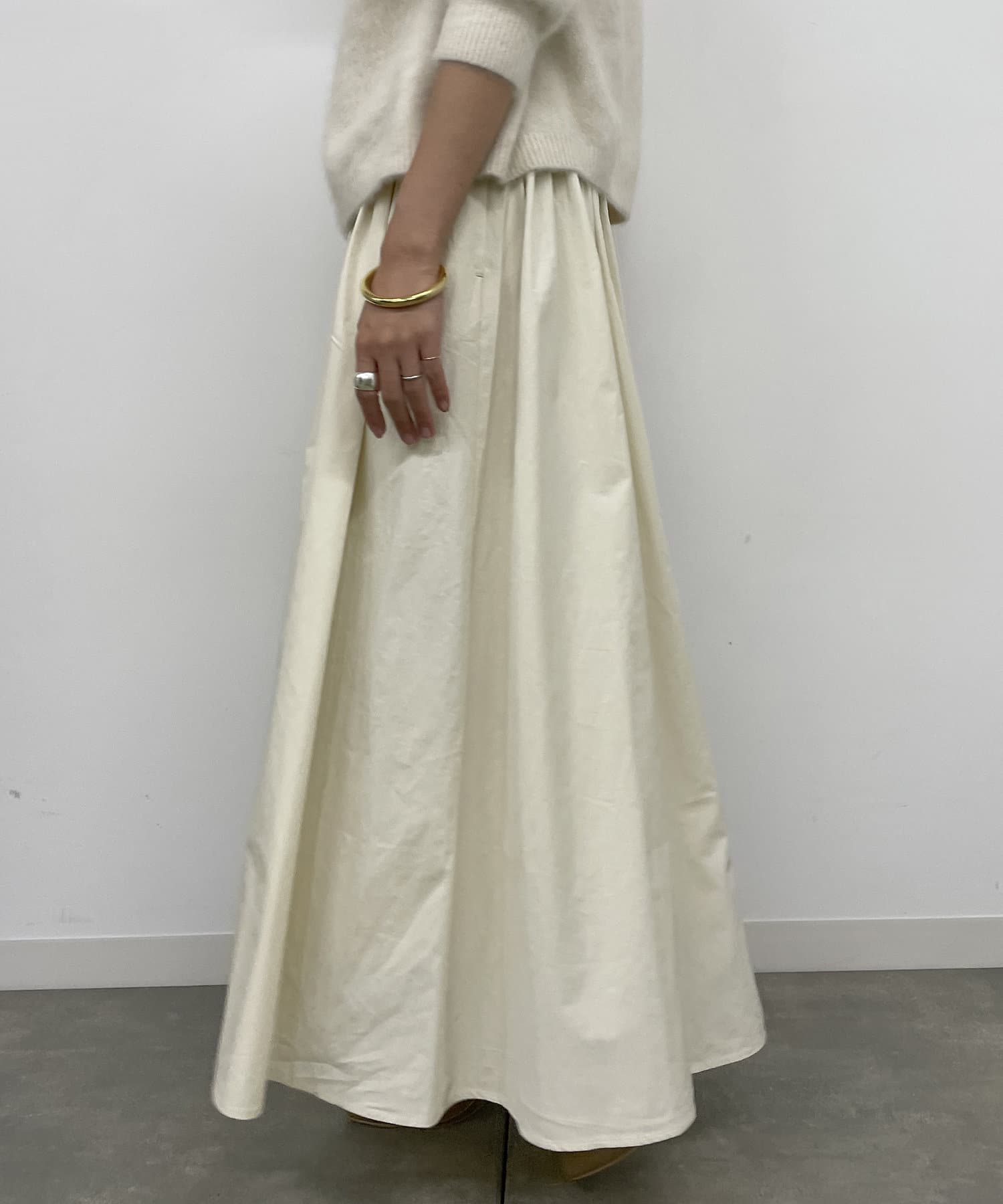 ボリュームのある揺れ感が美しいタフタギャザースカート
