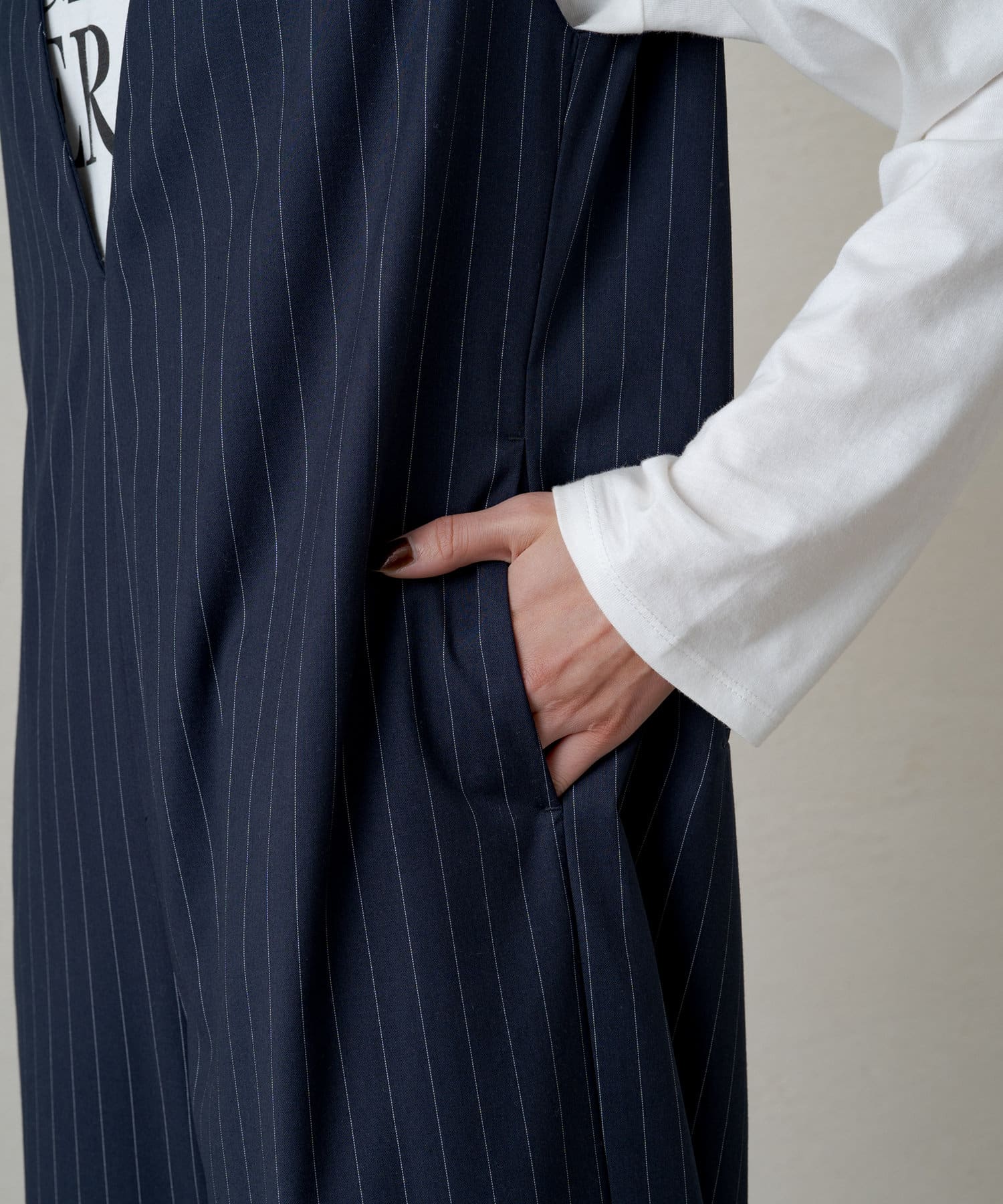ジャケットやカーディガンを羽織っても決まるので、長いシーズンご着用いただきやすい一着です。