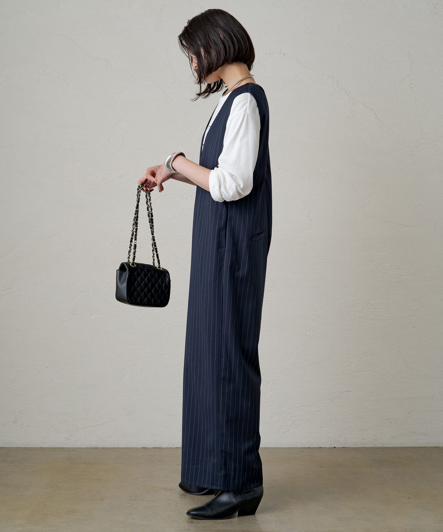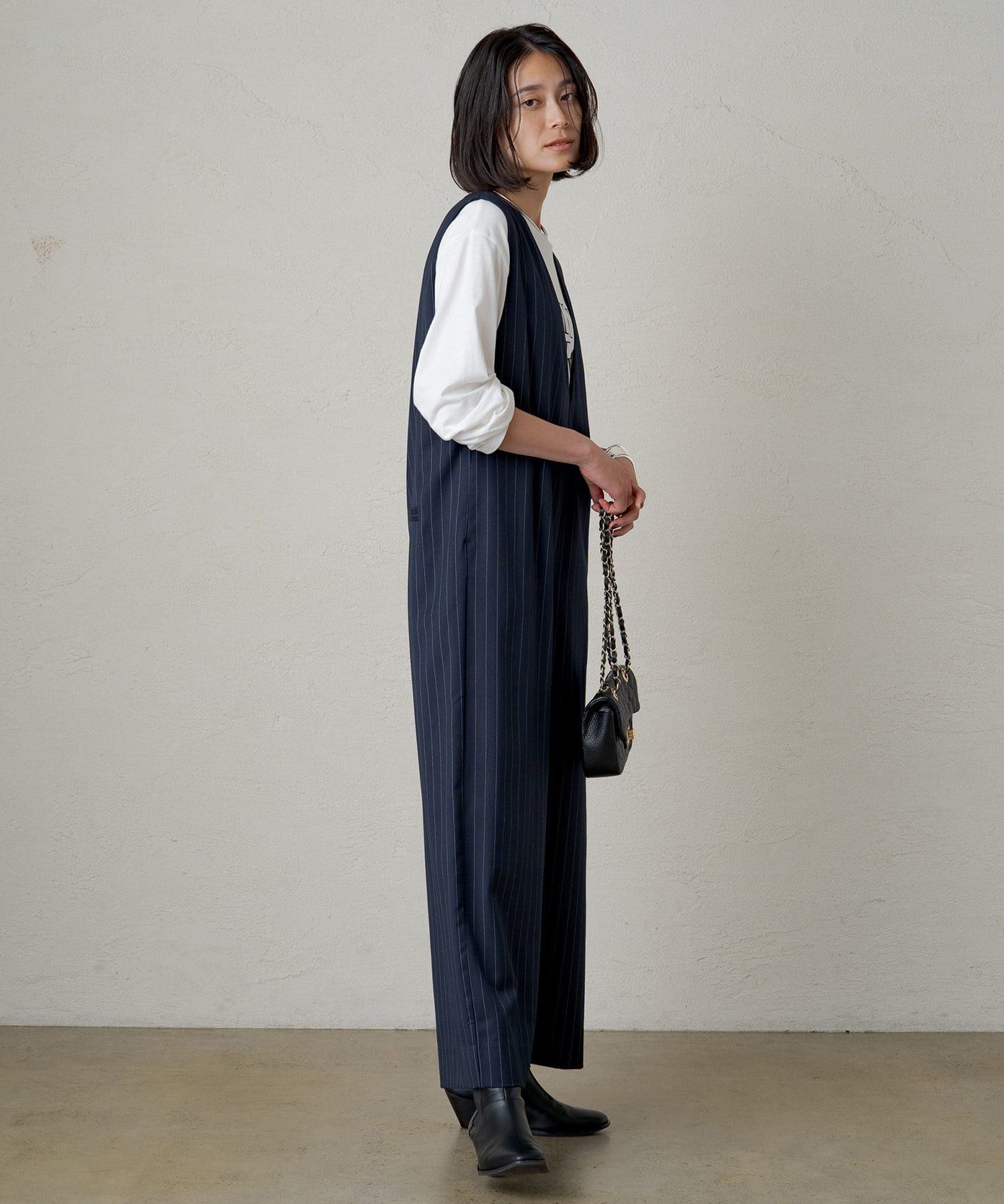 女性らしい柔らかさがありつつ、ハンサムにも着こなせるオールインワン