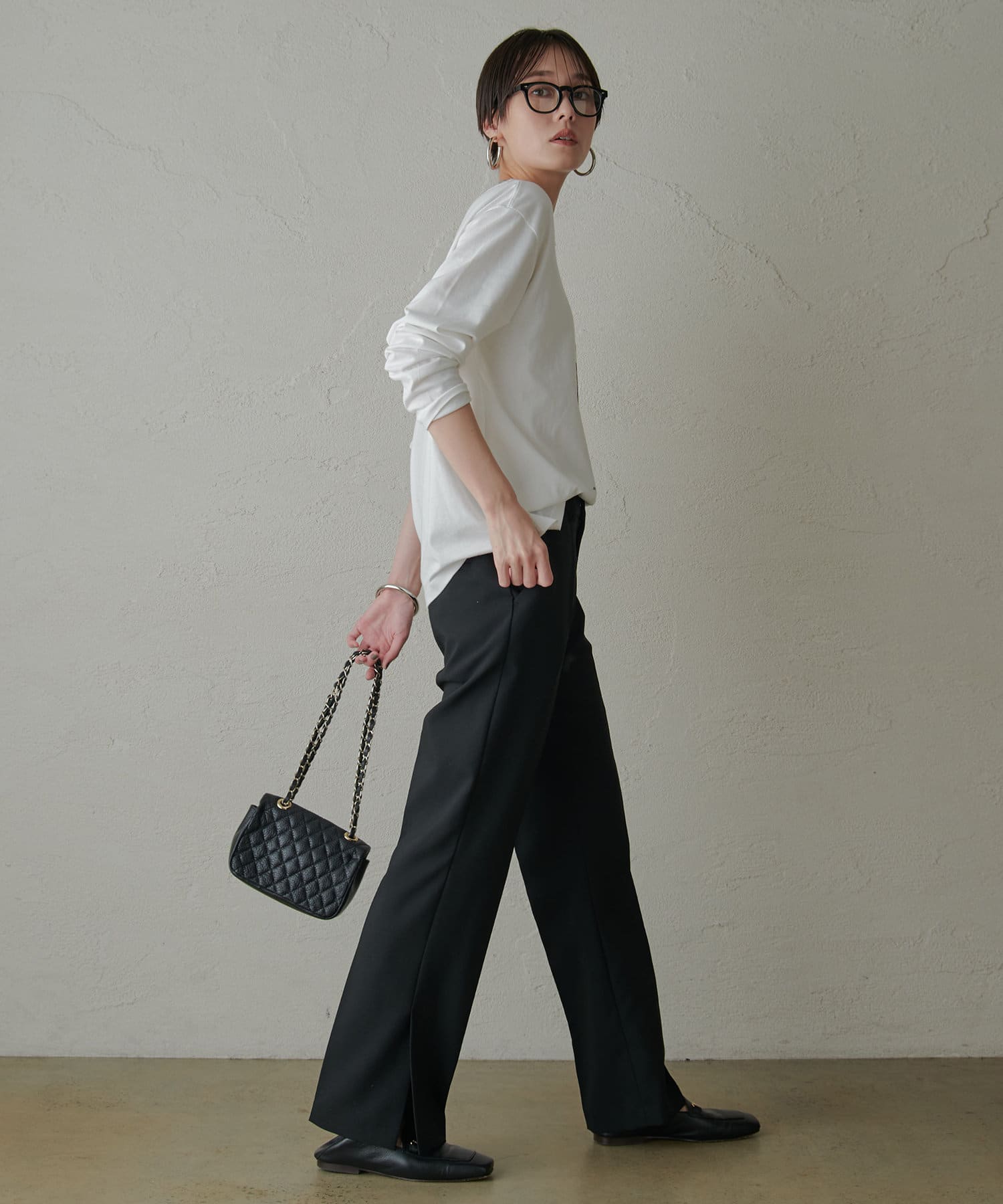すっきりと美脚見えしてくれるサイドスリットパンツ