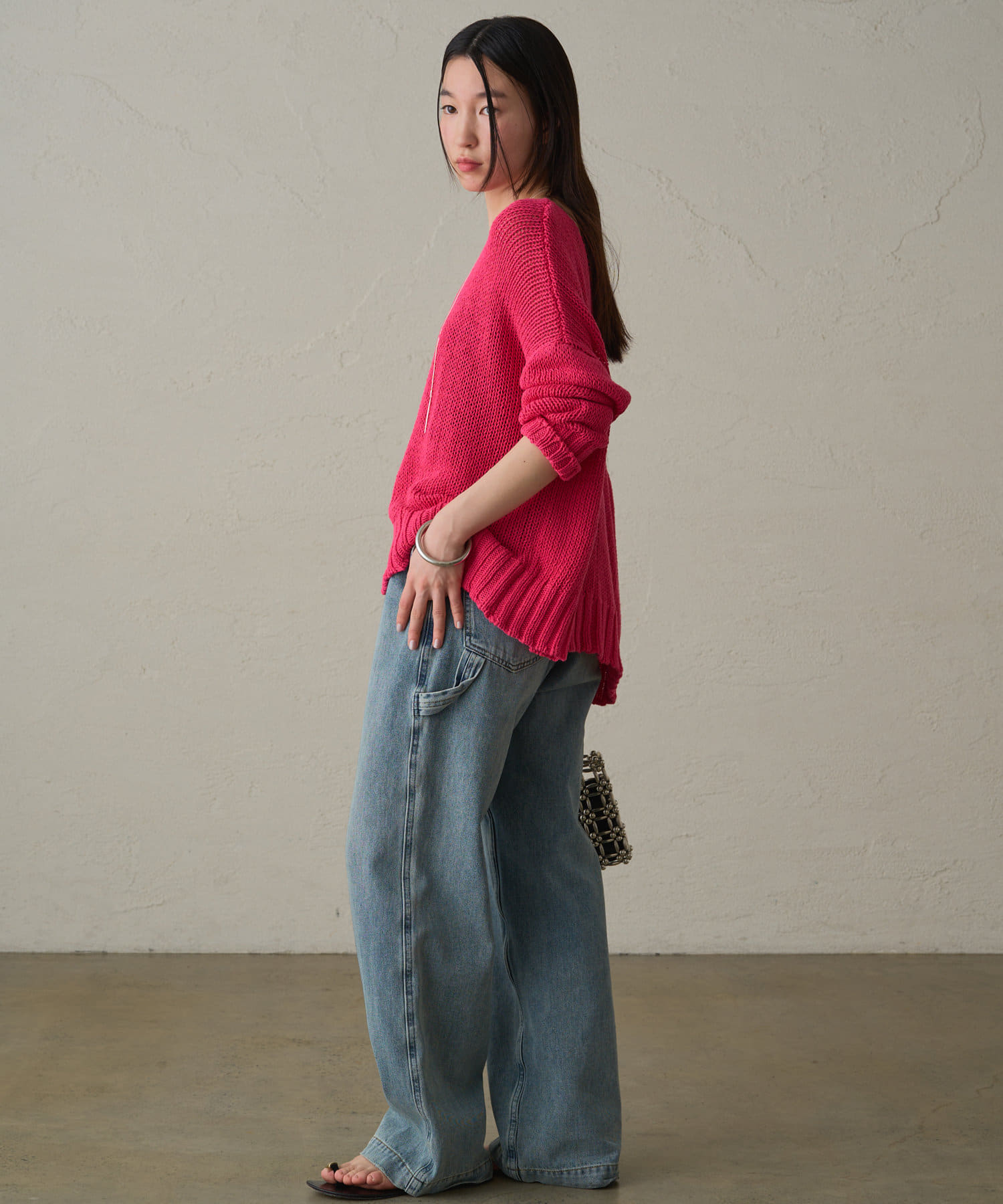 ざっくりニットはデニムなどのカジュアルなアイテムに合わせるのがおすすめ。