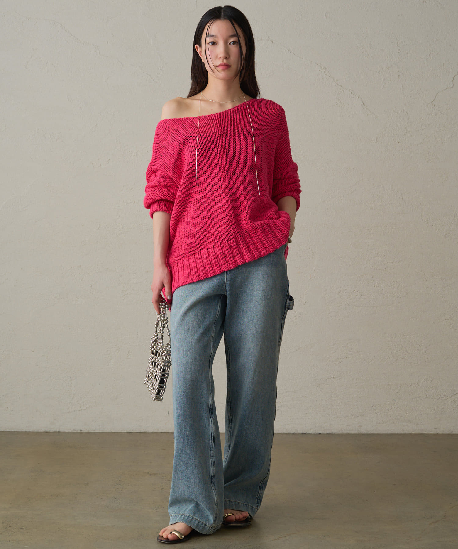 首の開きが横に広めなので、ワンショルのように着ても◎