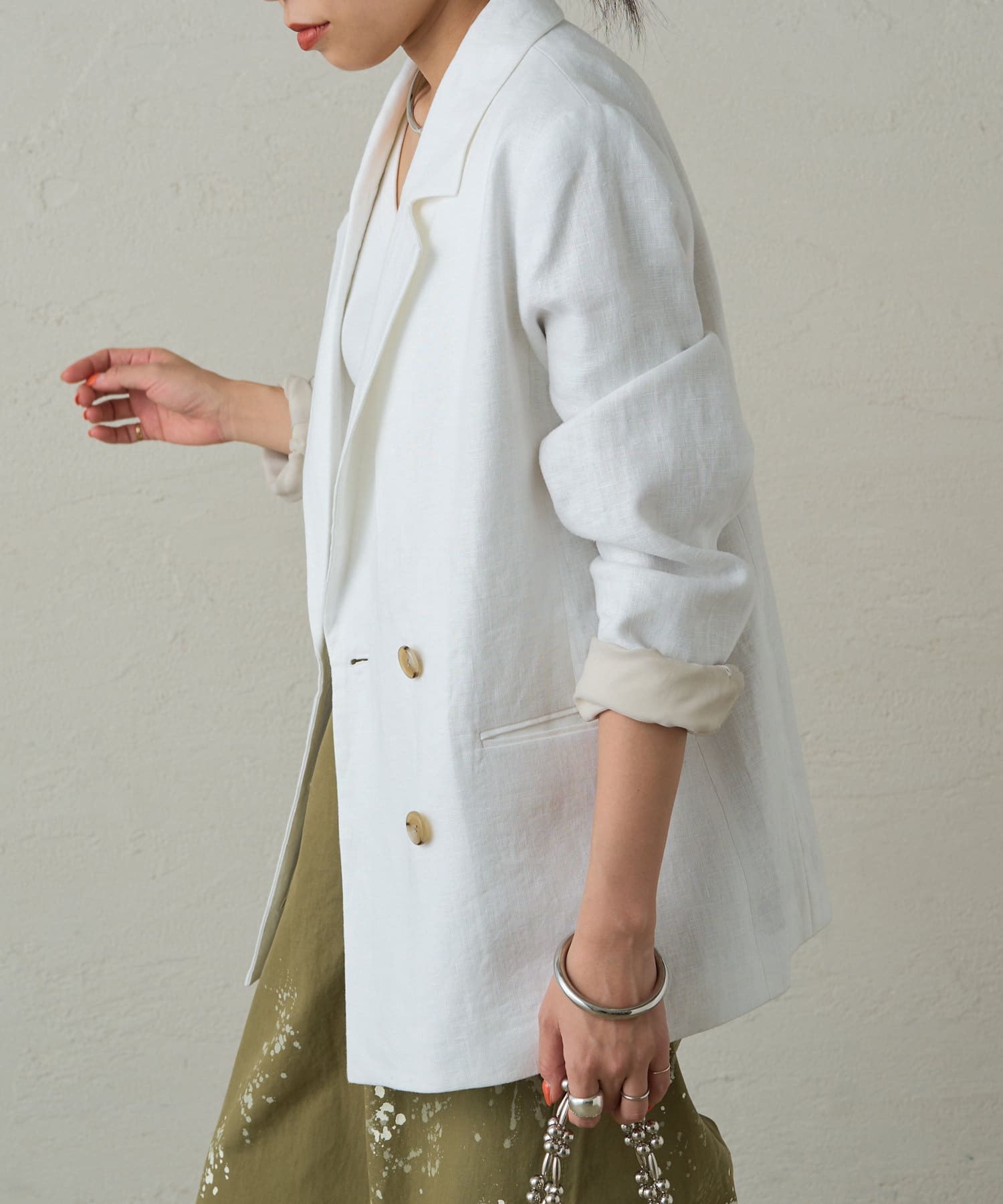春から夏にかけて重宝するハンサムな印象のリネンダブルジャケット
