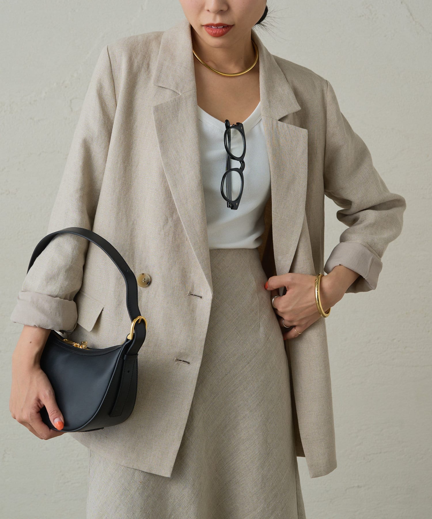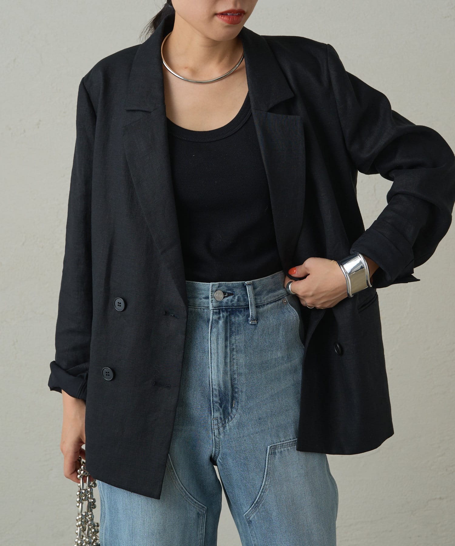 ハンサムな印象のダブル仕立てのジャケットは、しっかりとした素材感で春先から真夏手前まで長く着ていただけます。