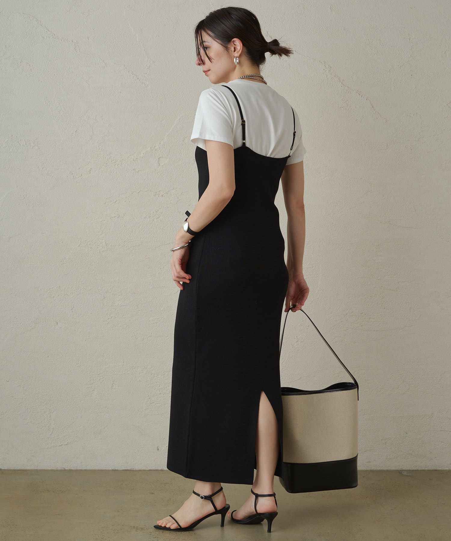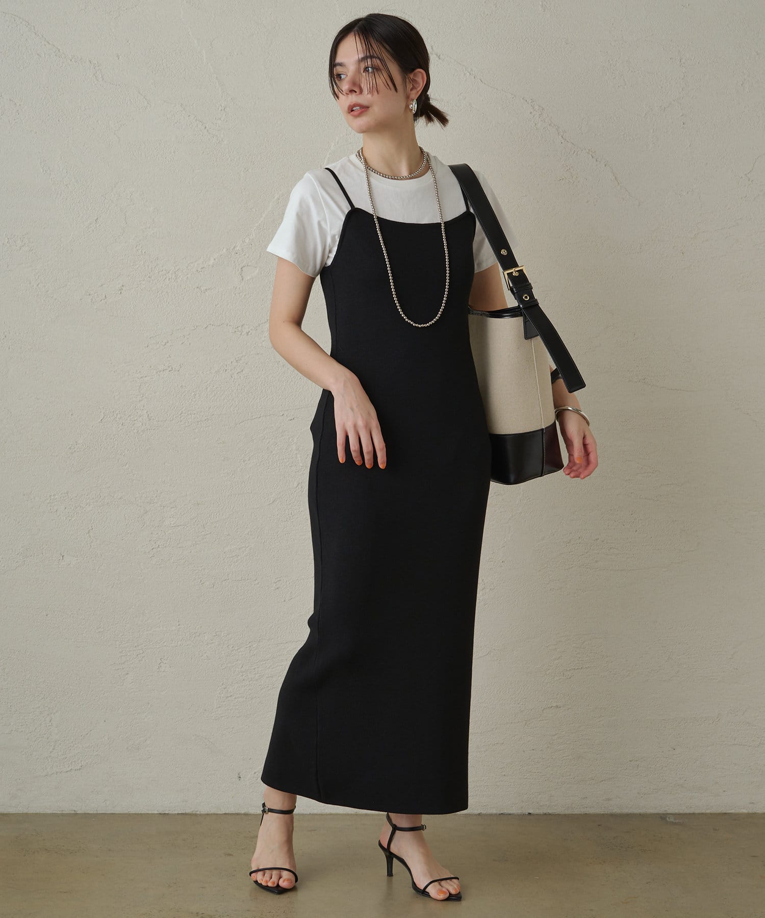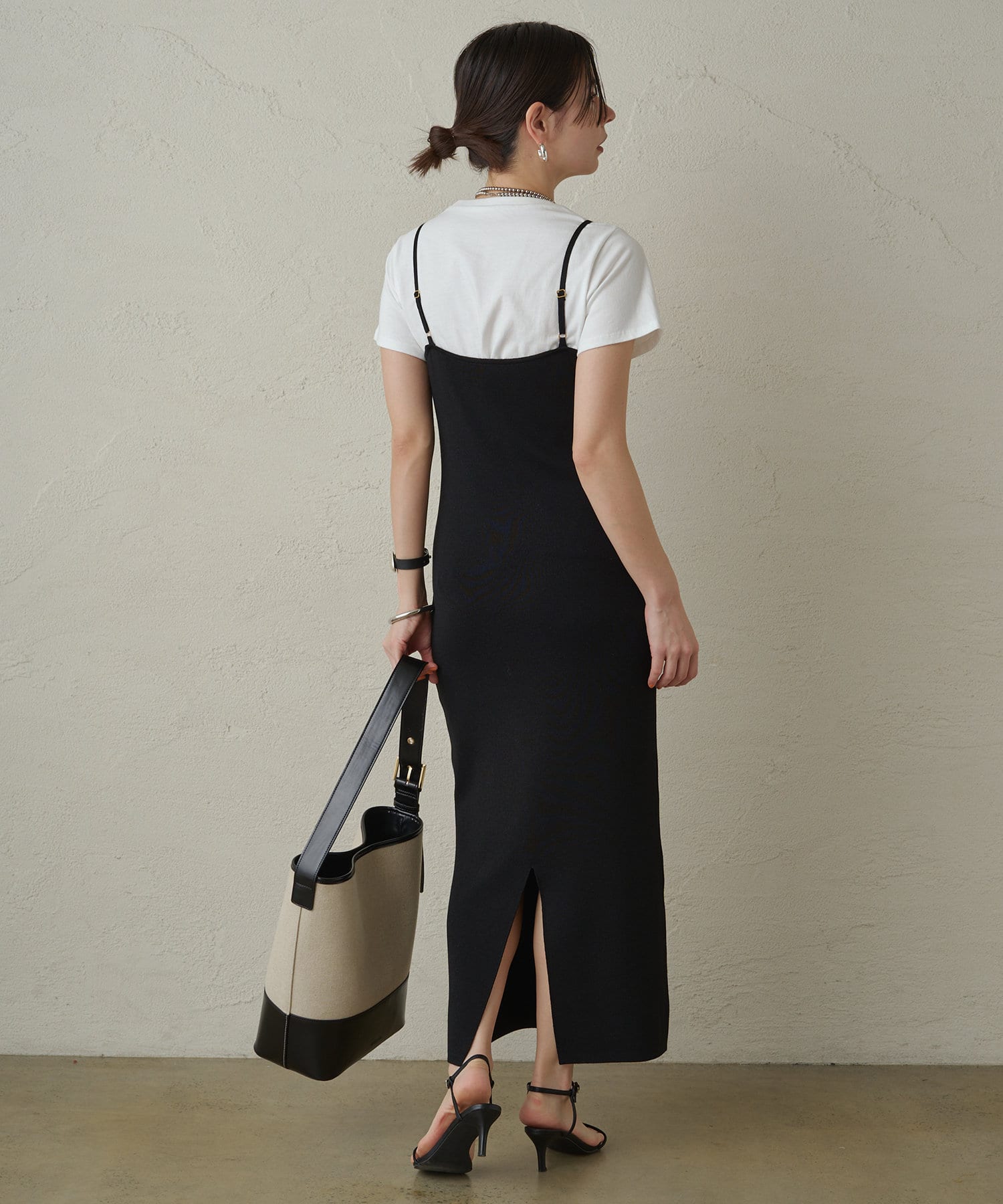 シンプルで着回し力抜群のニットキャミワンピース