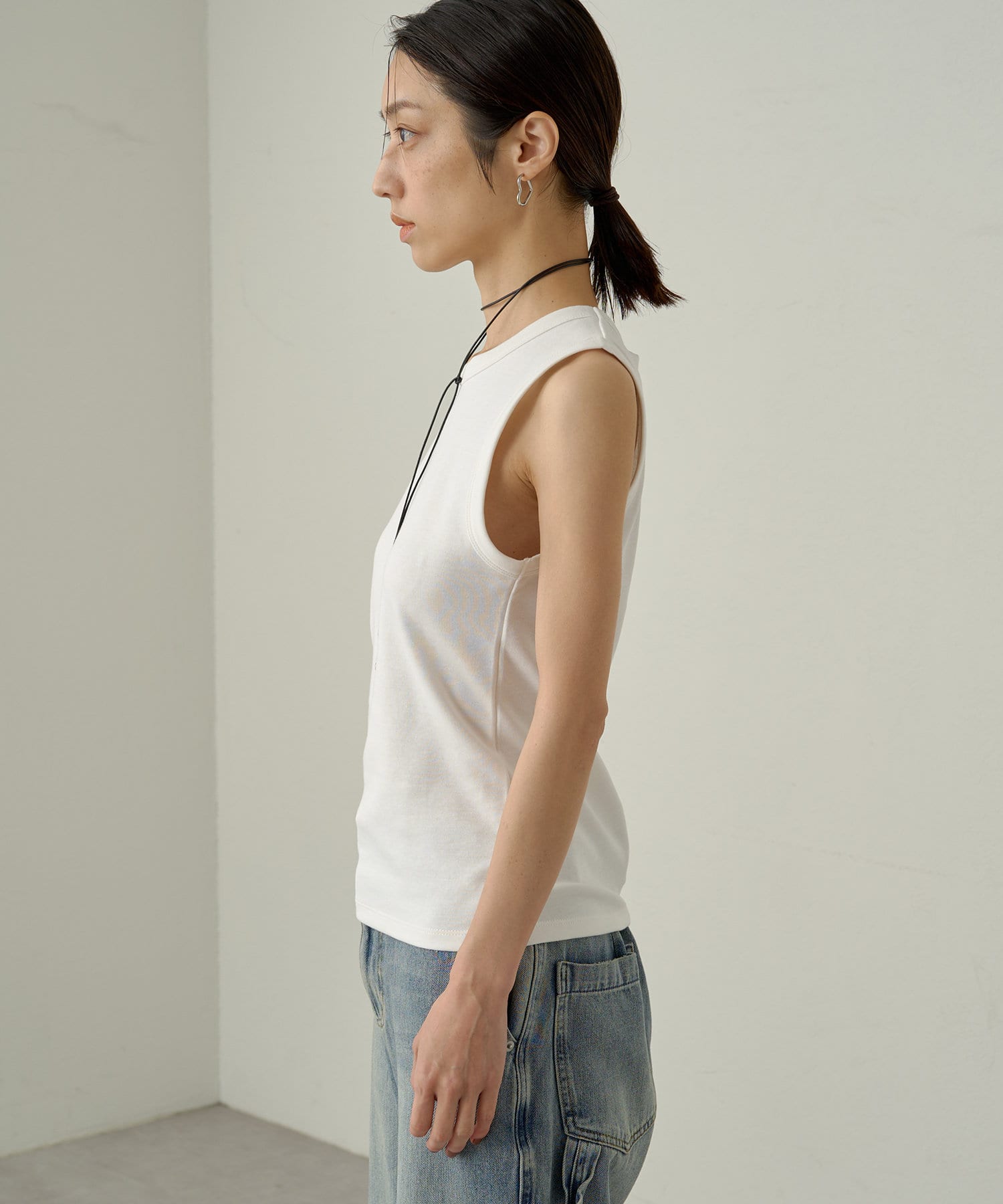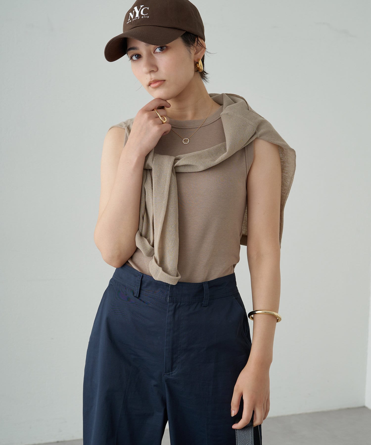 ポケットシアーカーディガンなどシアーアイテムのインナーに使用したり、アンサンブルのようにお使いいただくのもおすすめです。