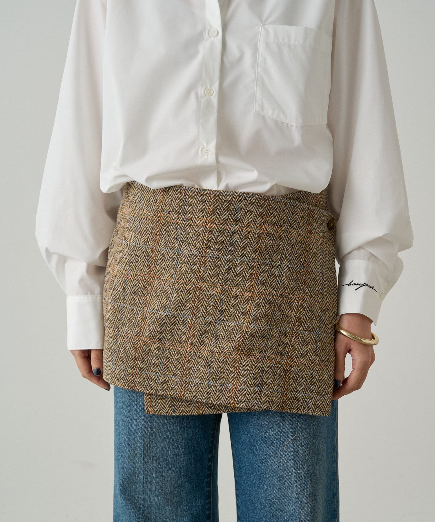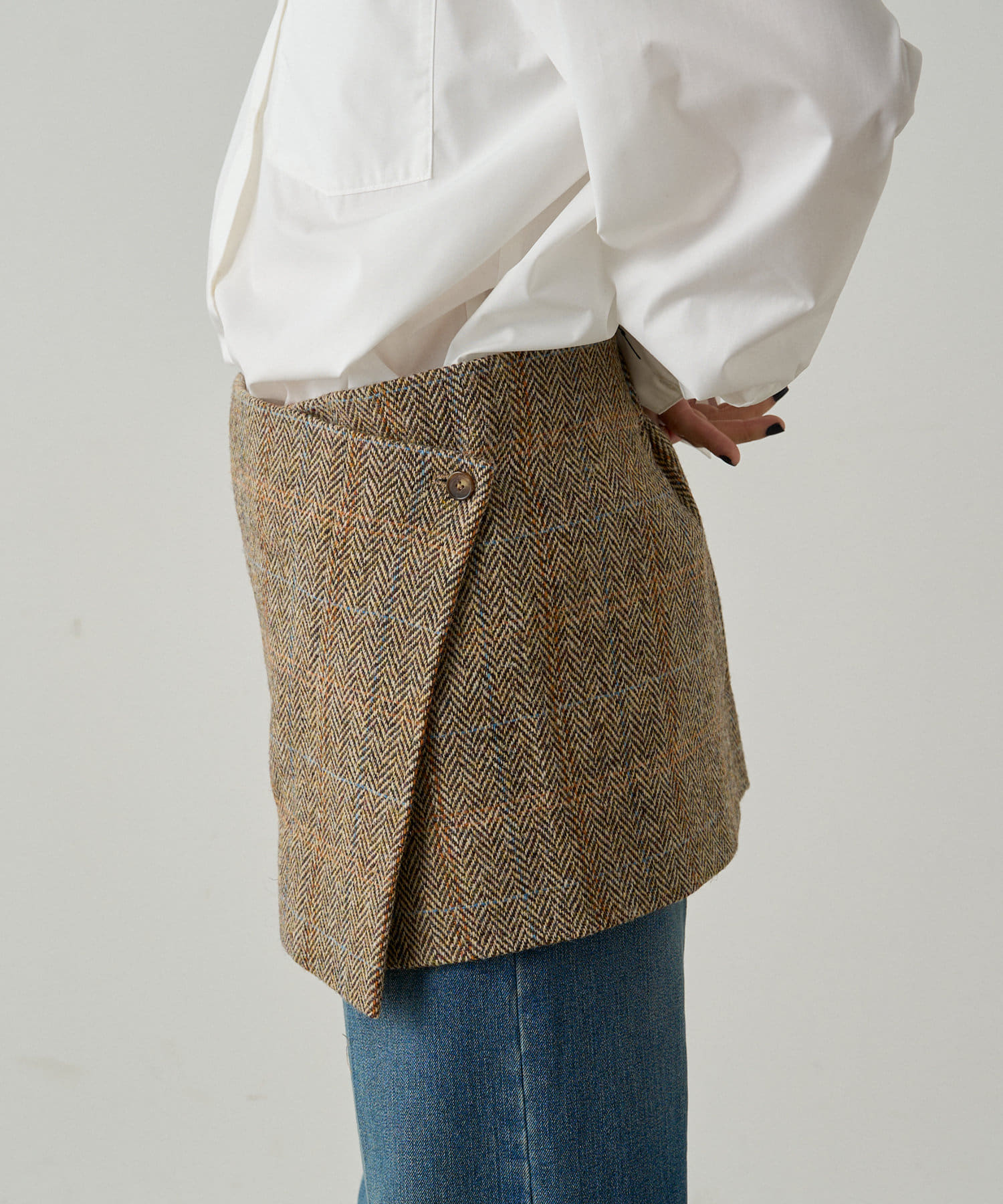 スコットランドの伝統な素材である「ハリスツイード」でお作りしたラップスカートです。