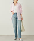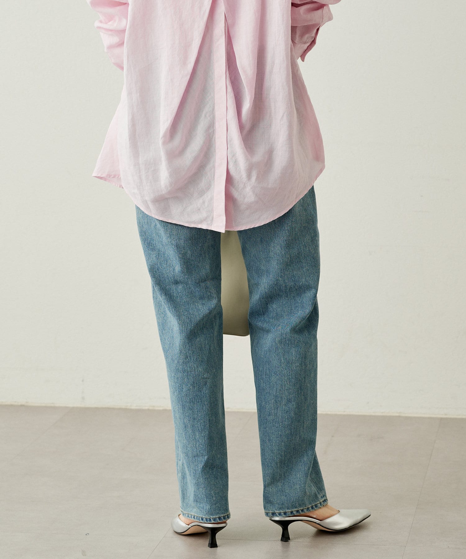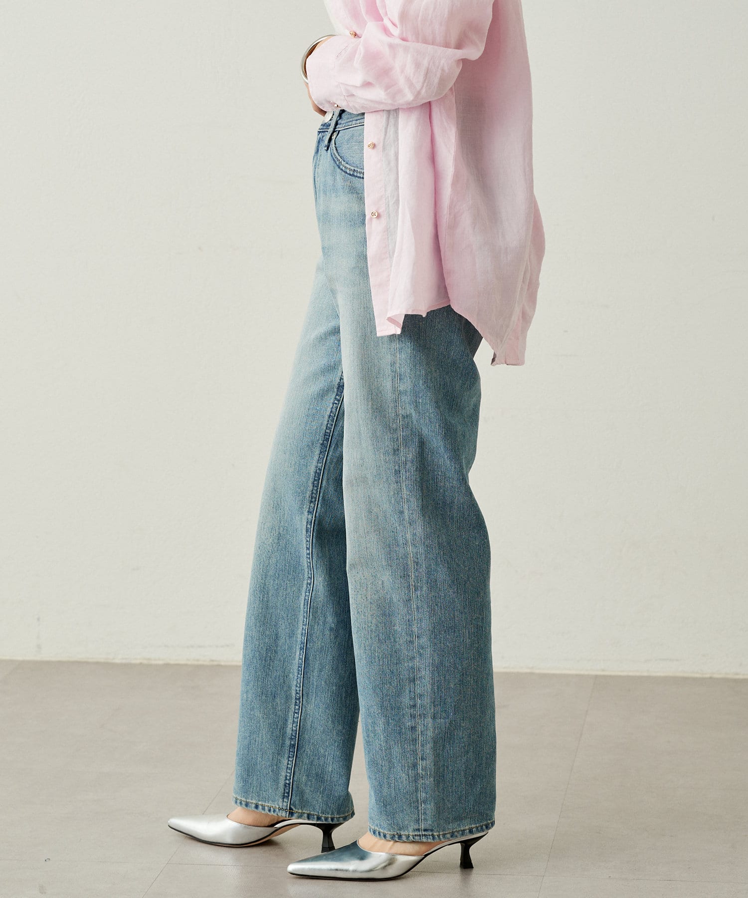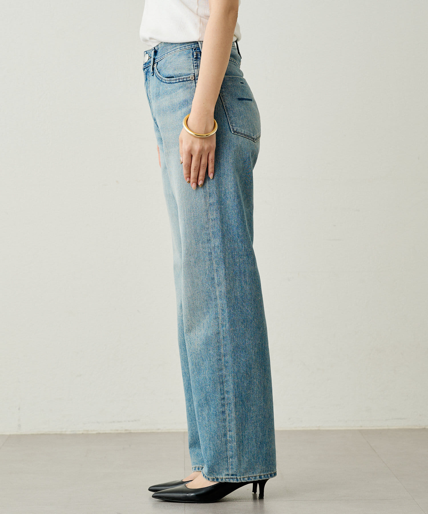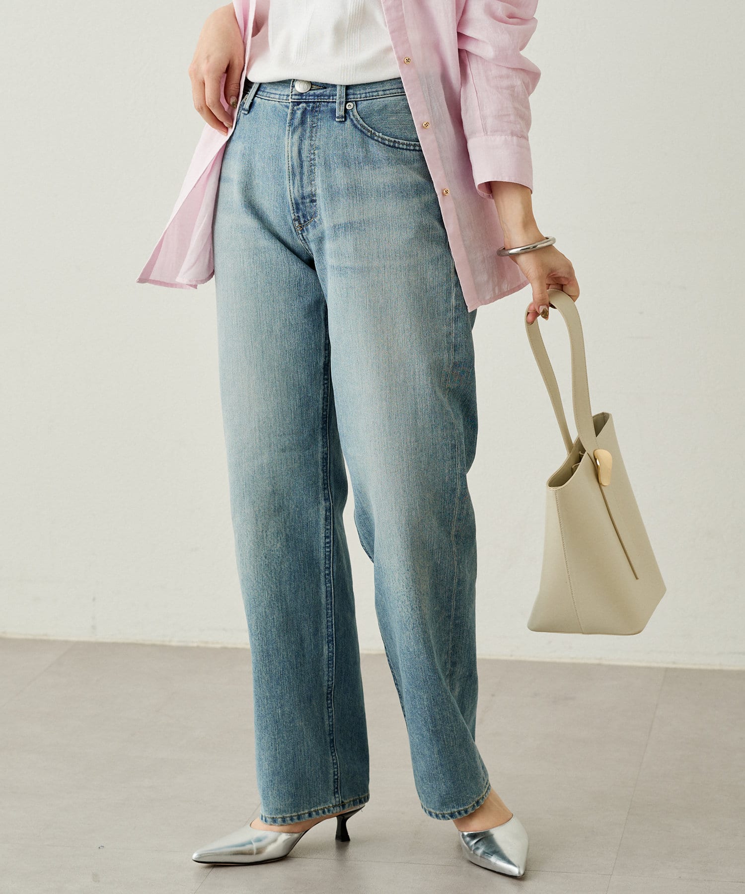 ゆとりのあるストレートはどうしても野暮ったくなりがちですが、LEAはパターンにこだわることで美脚に、