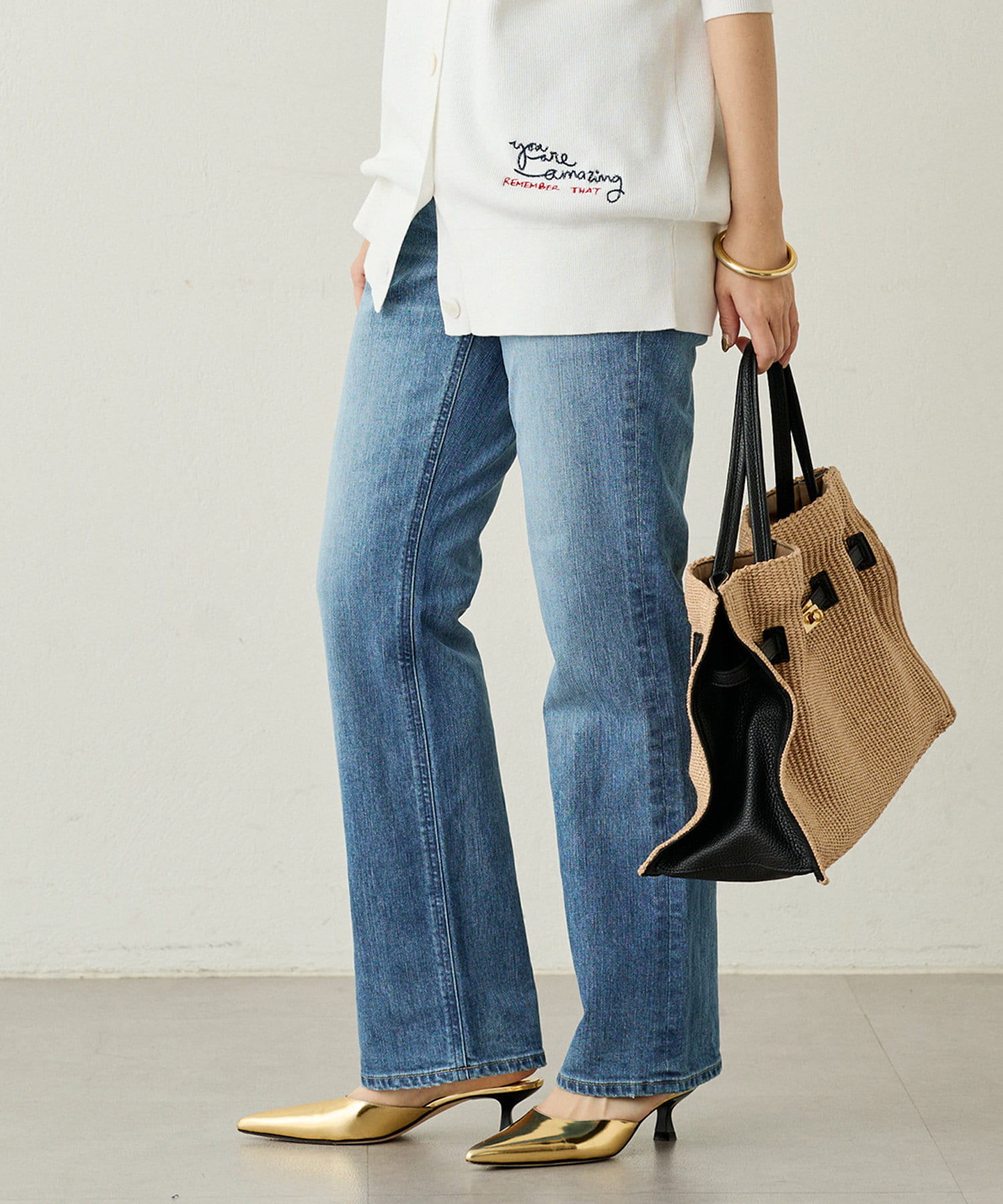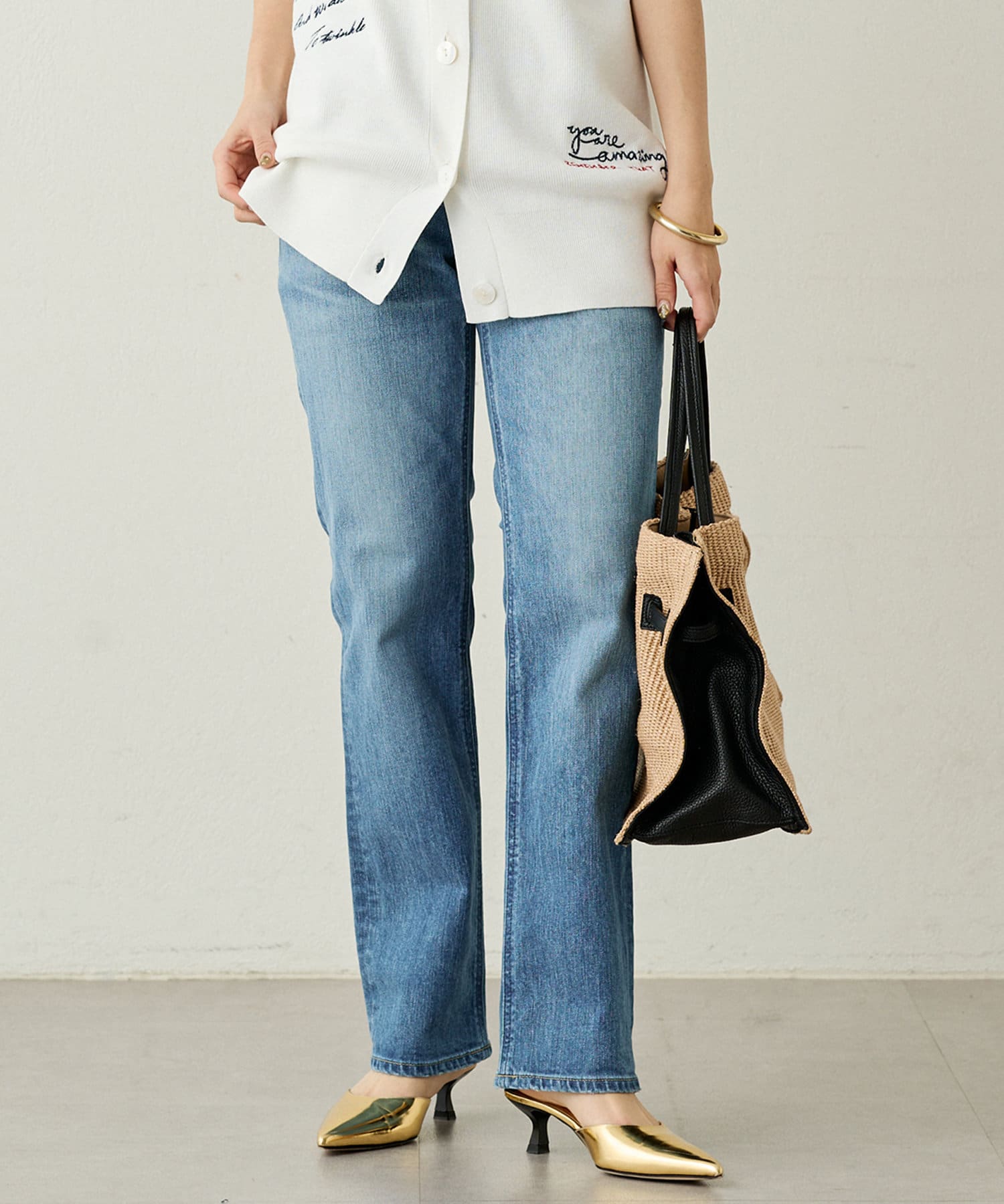 脚の付け根からすらっと伸びるシルエットが特徴のストレートデニムLOUISE。