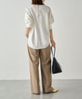 さらっとした素材で着やすく、生地もぶ厚過ぎず薄過ぎずちょうど良い。ストレッチが効いていて、袖をまくってもしっかり止まる。程よいゆとりで、こなれた感じになるのにカジュアルすぎない素材なのでオフィスカジュアルにも使えると個人的にいいことずくめだったので、色違いのブラックも追加で購入しました。