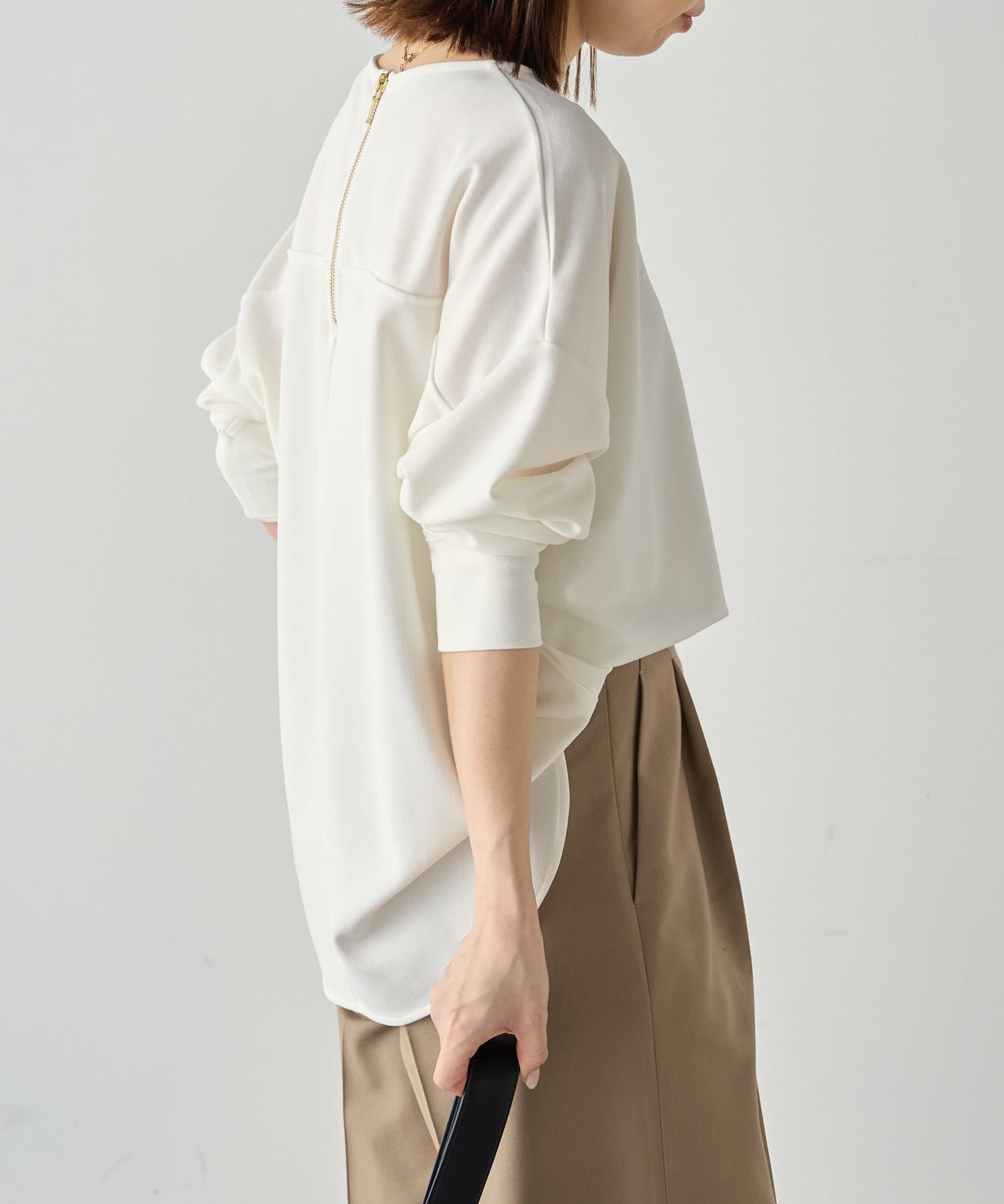 こういうトップスは似たようなものはたくさんありますが、Loungedressのものは後ろのジップデザインも素敵で、これ一枚でもサラッと着れて最高です。