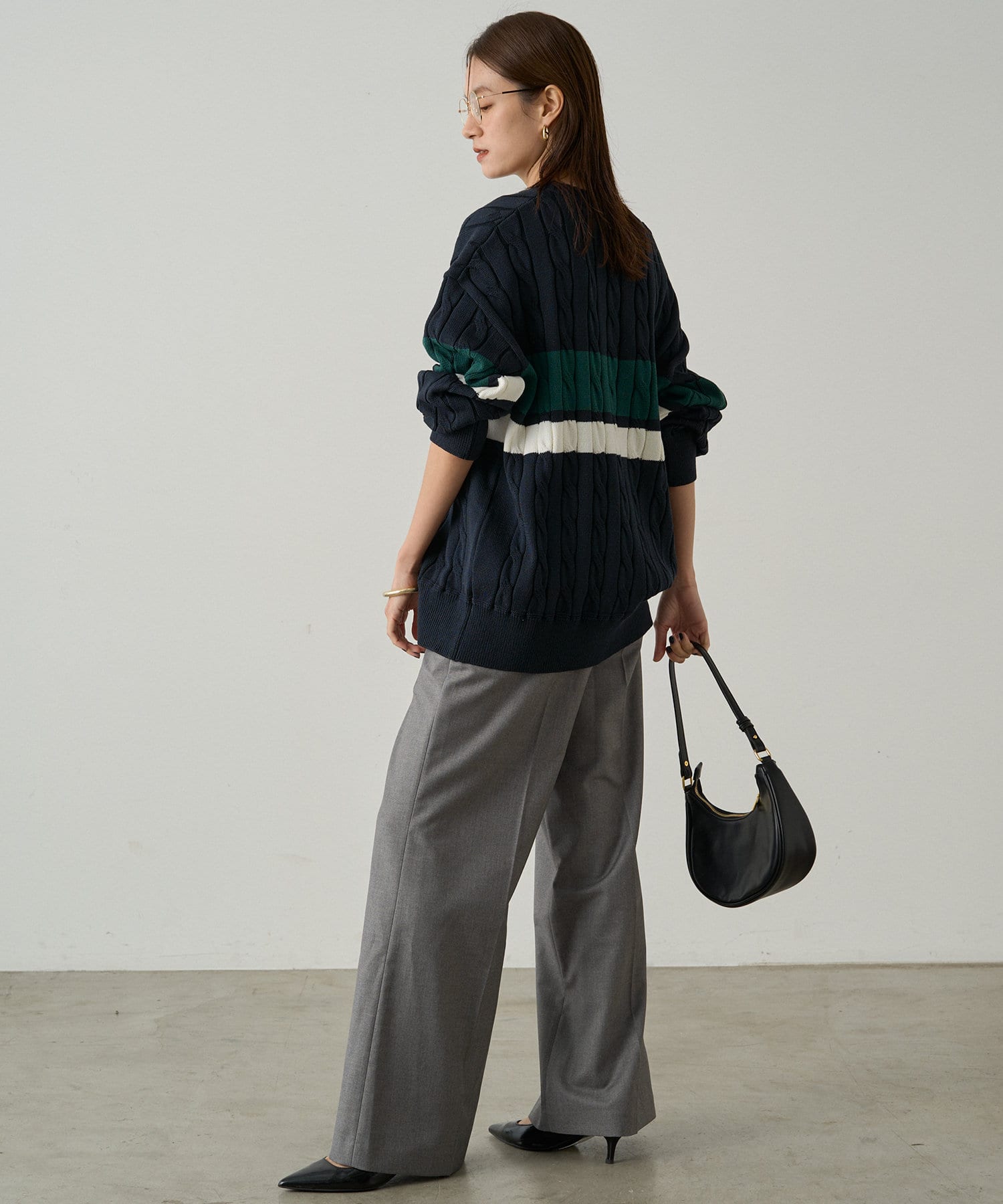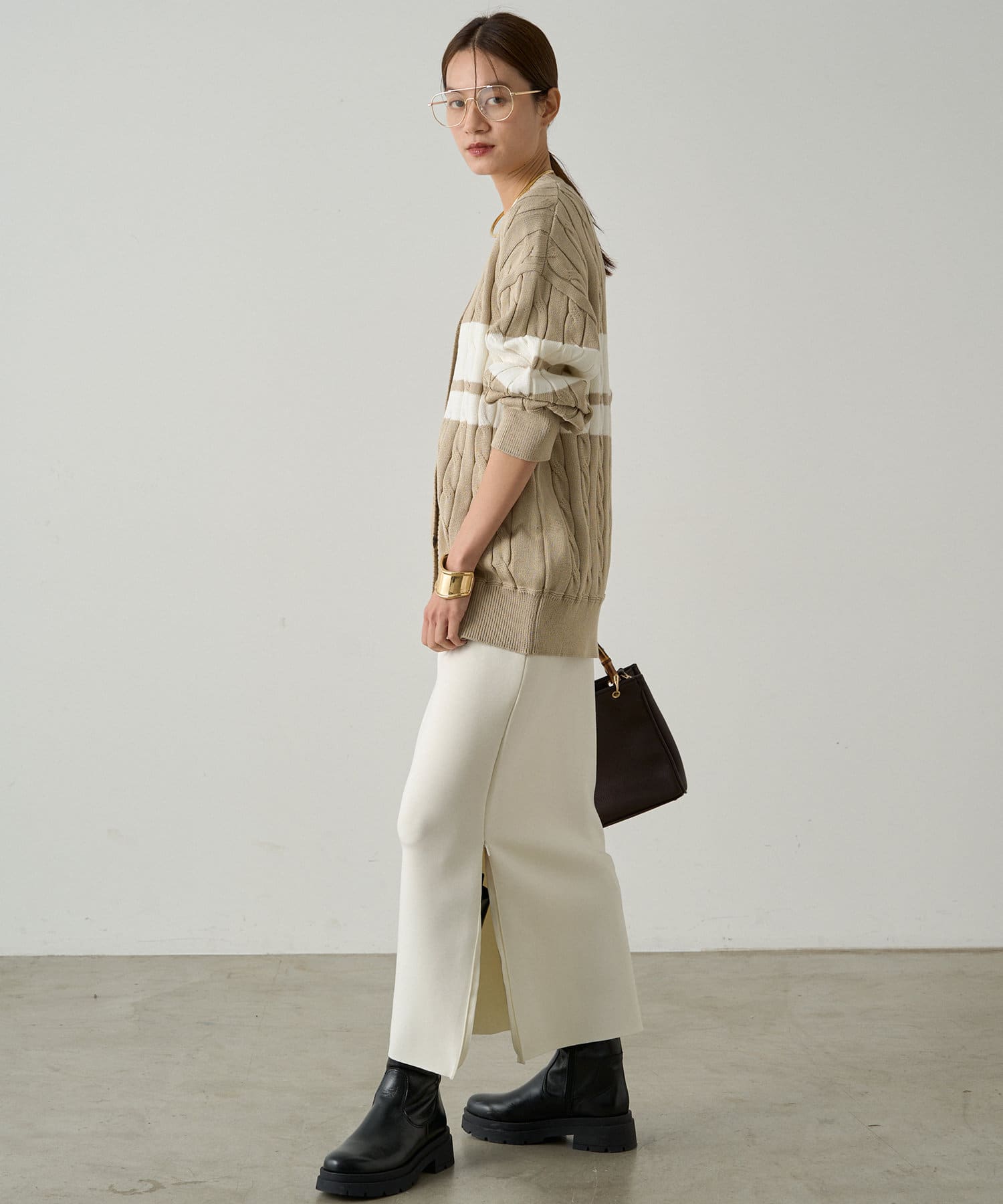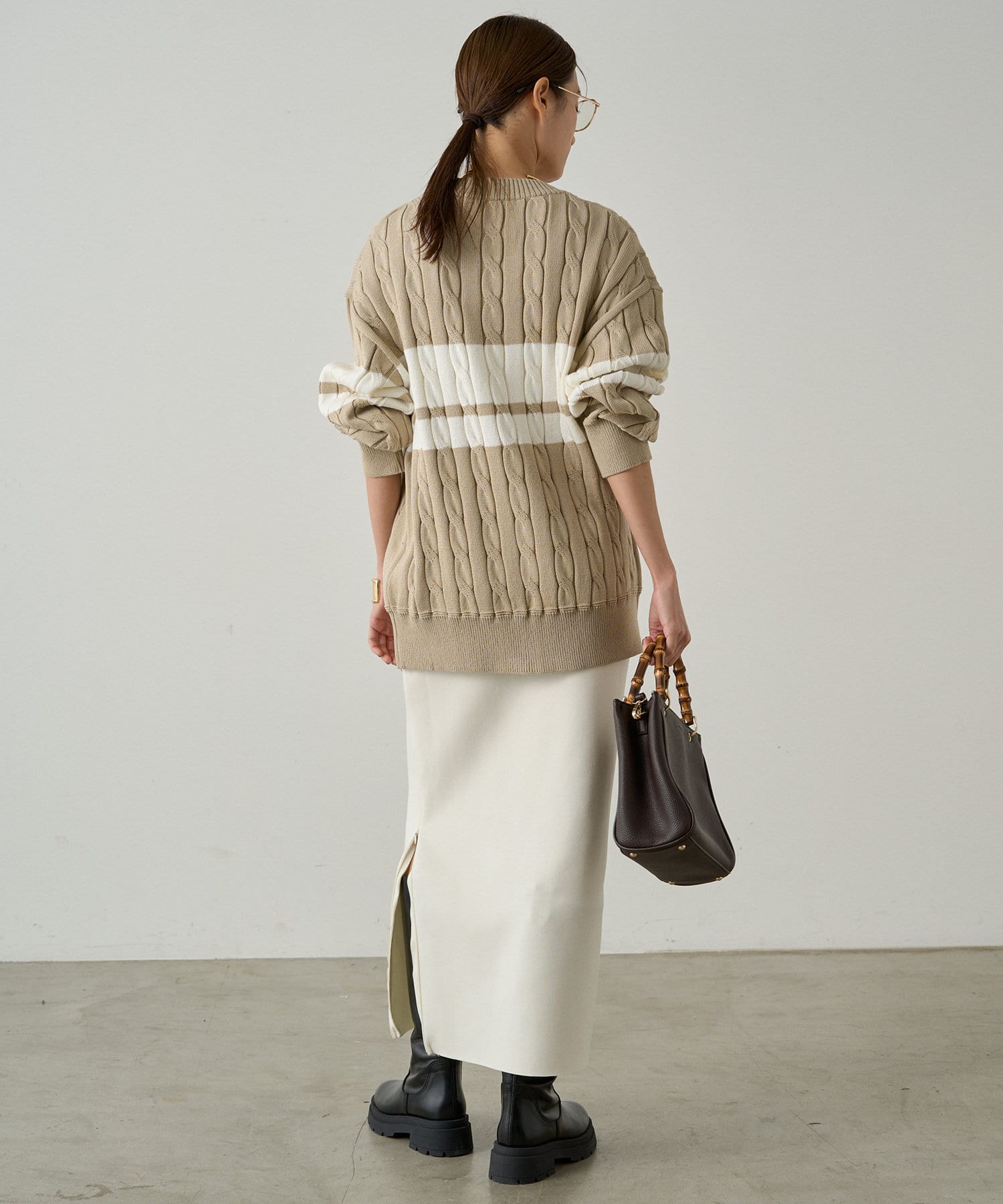 長めのデザインのニットは、タイトスカートやテーパードパンツのようなすっきりとしたボトムを合わせると