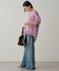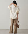 裾が長めなのでタイトシルエットのボトムスとも合わせやすいデザインです。