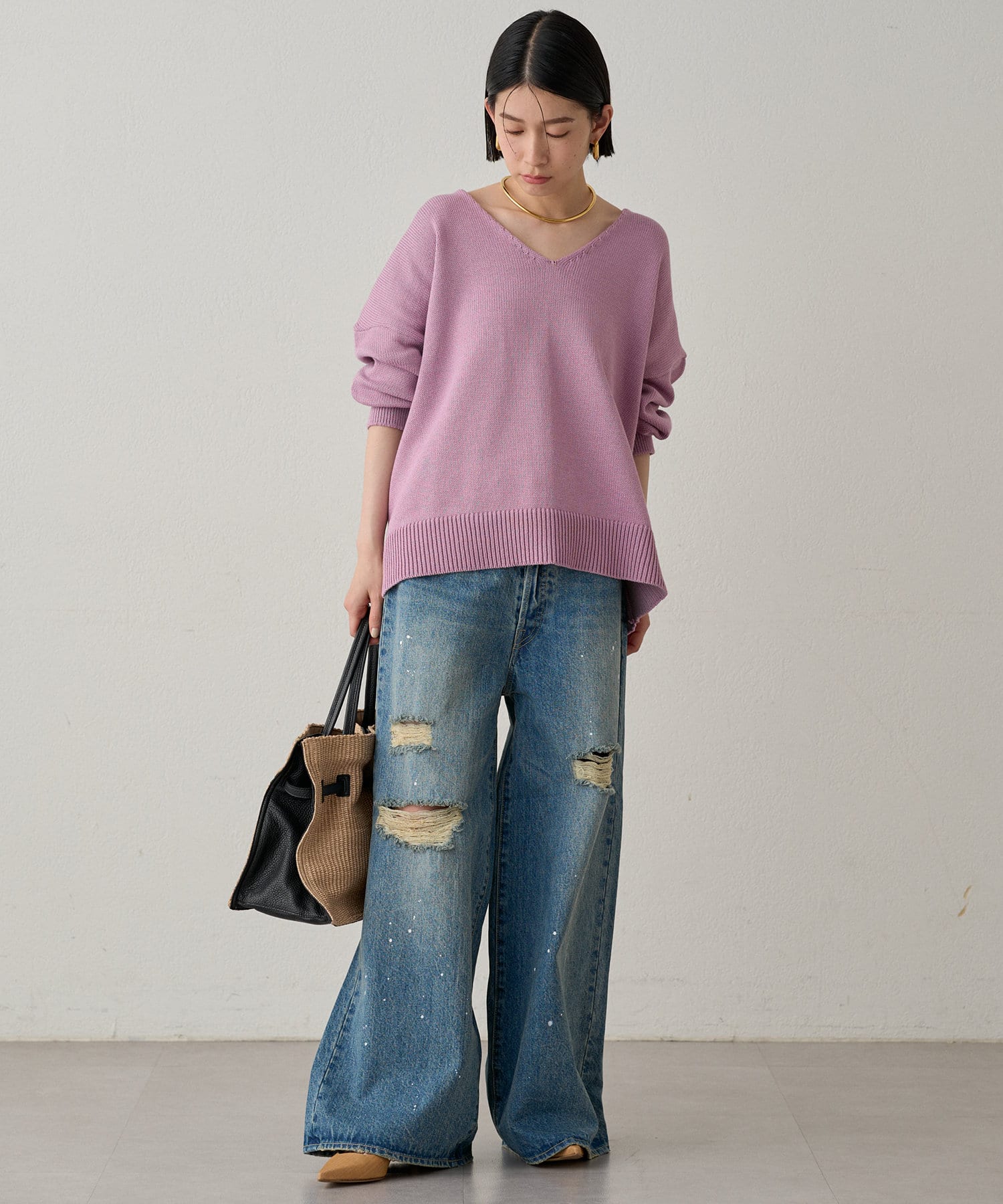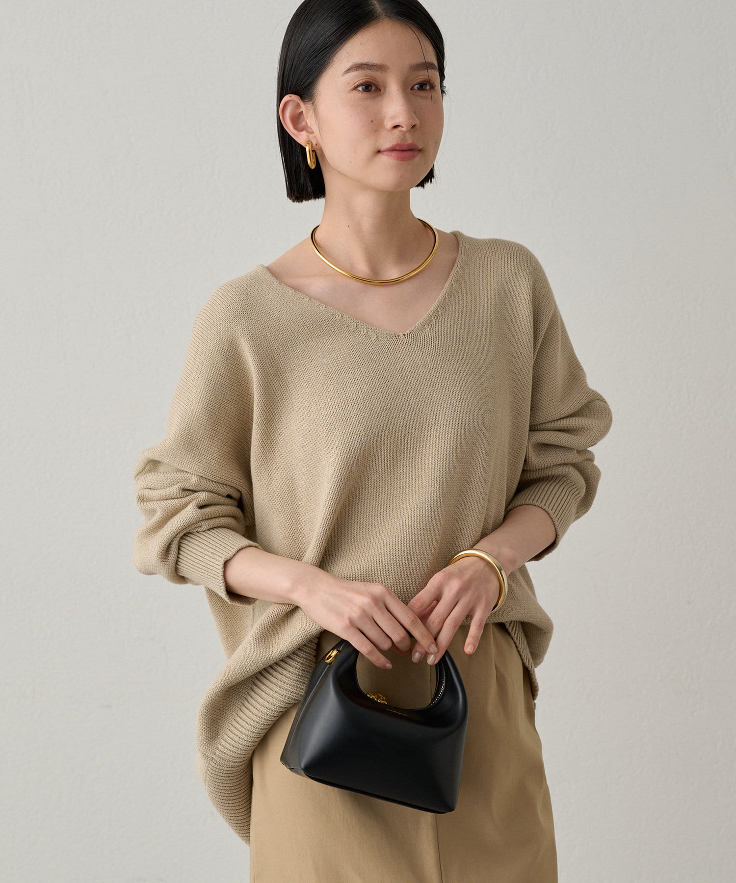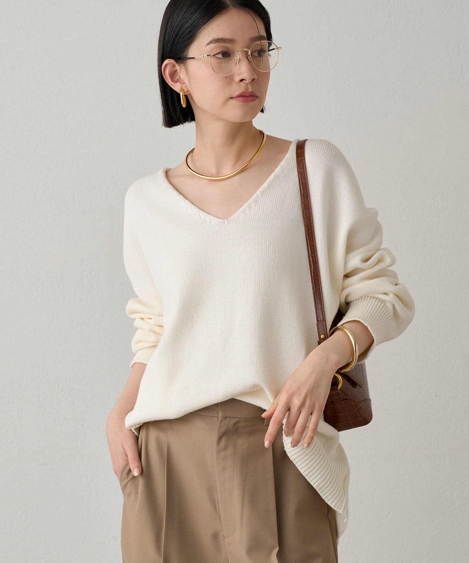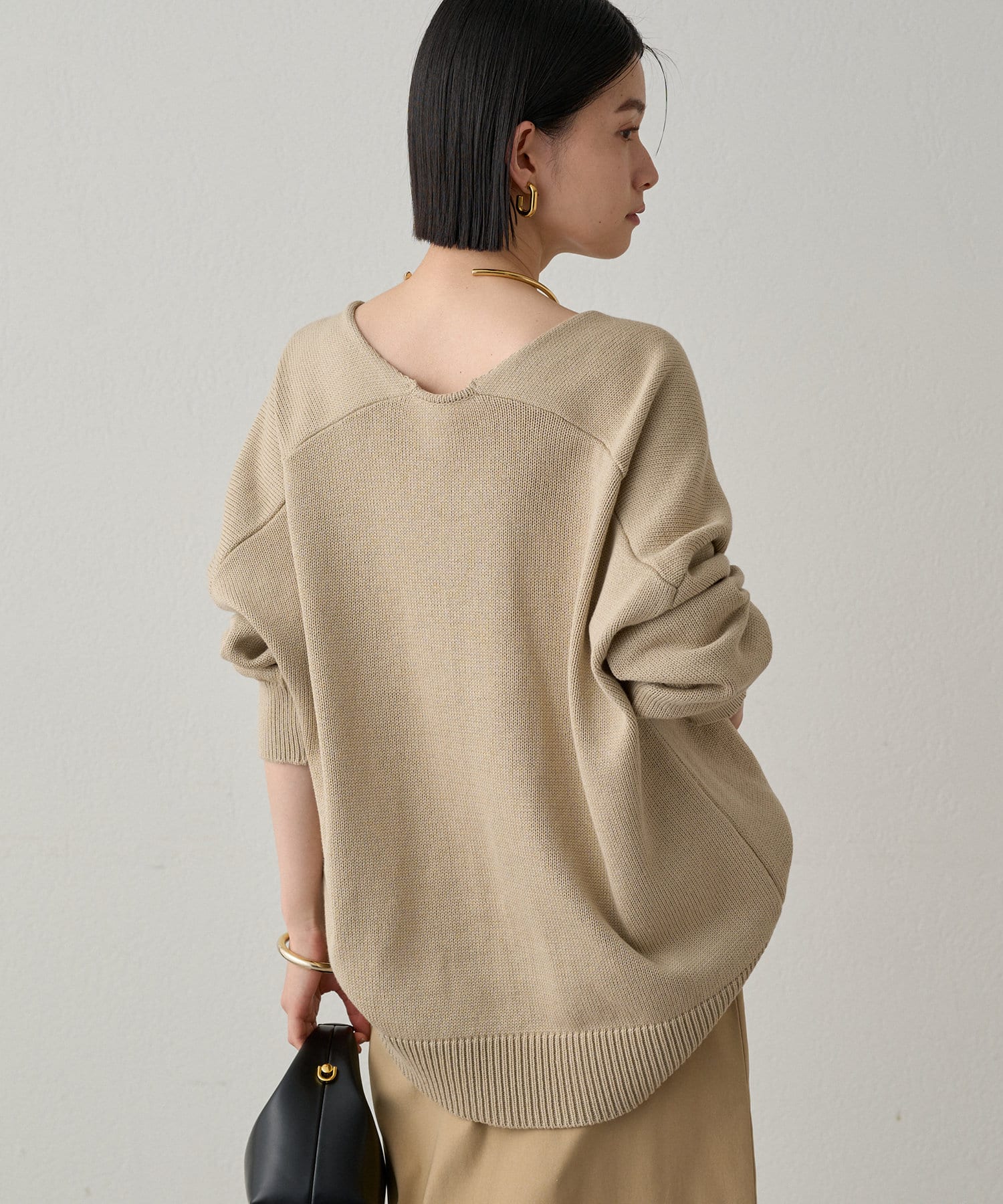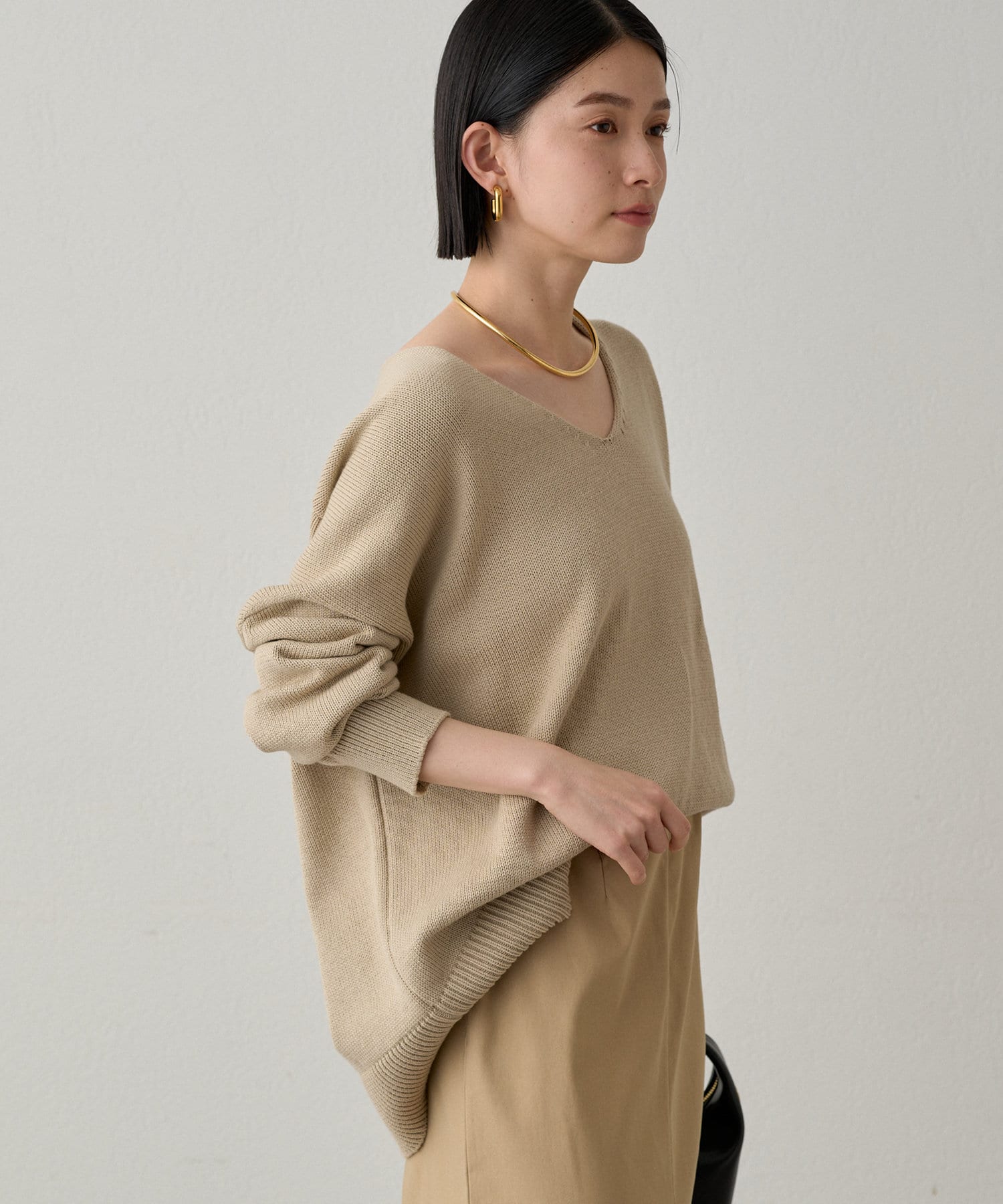 首元のV開きが女っぽく見せてくれるコットンニット。