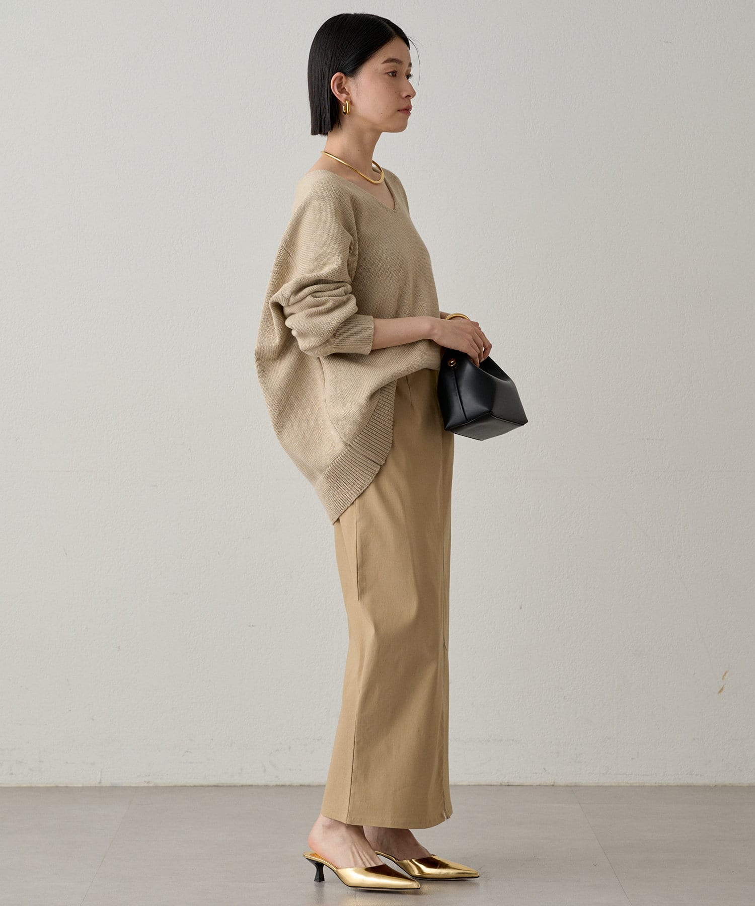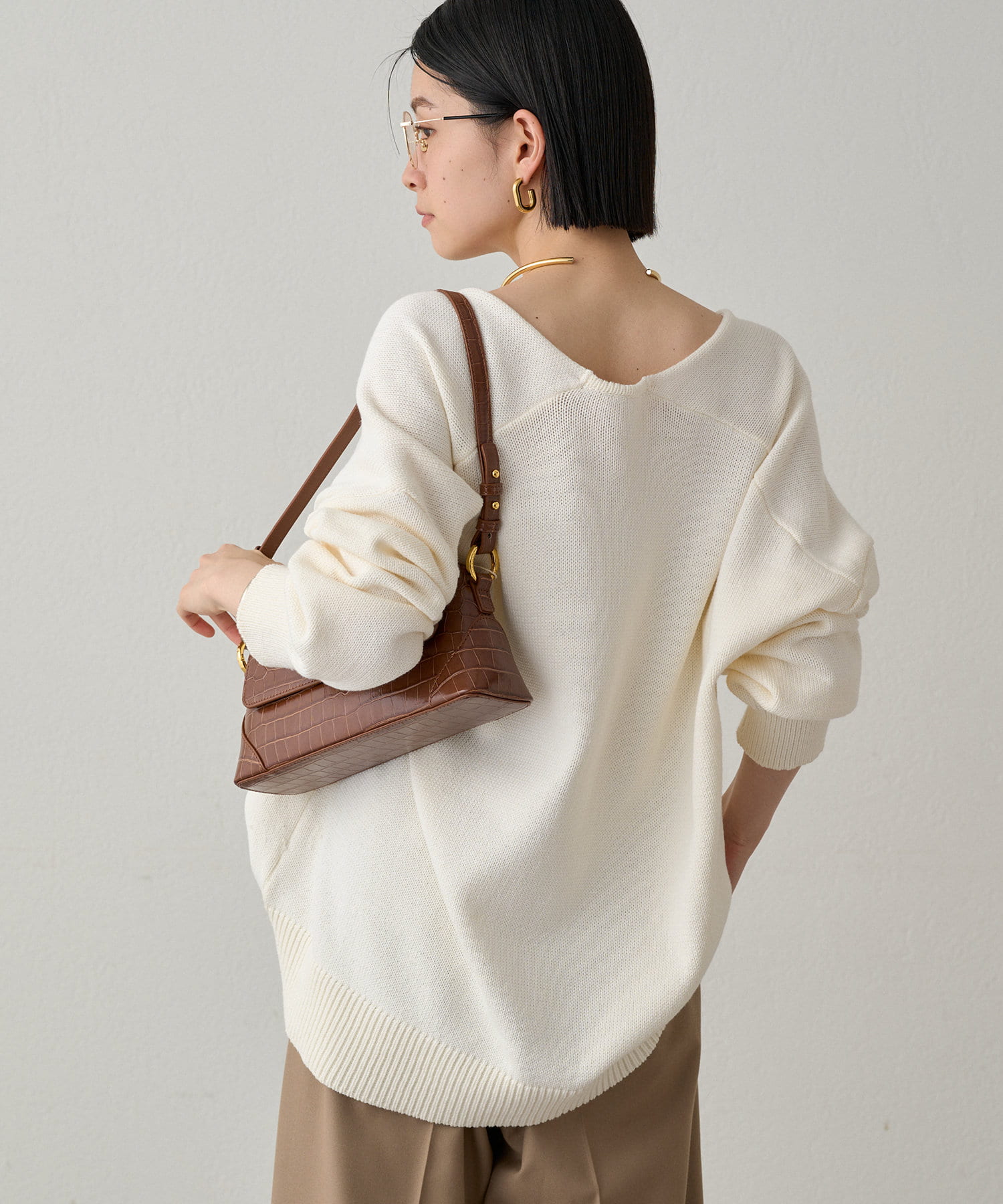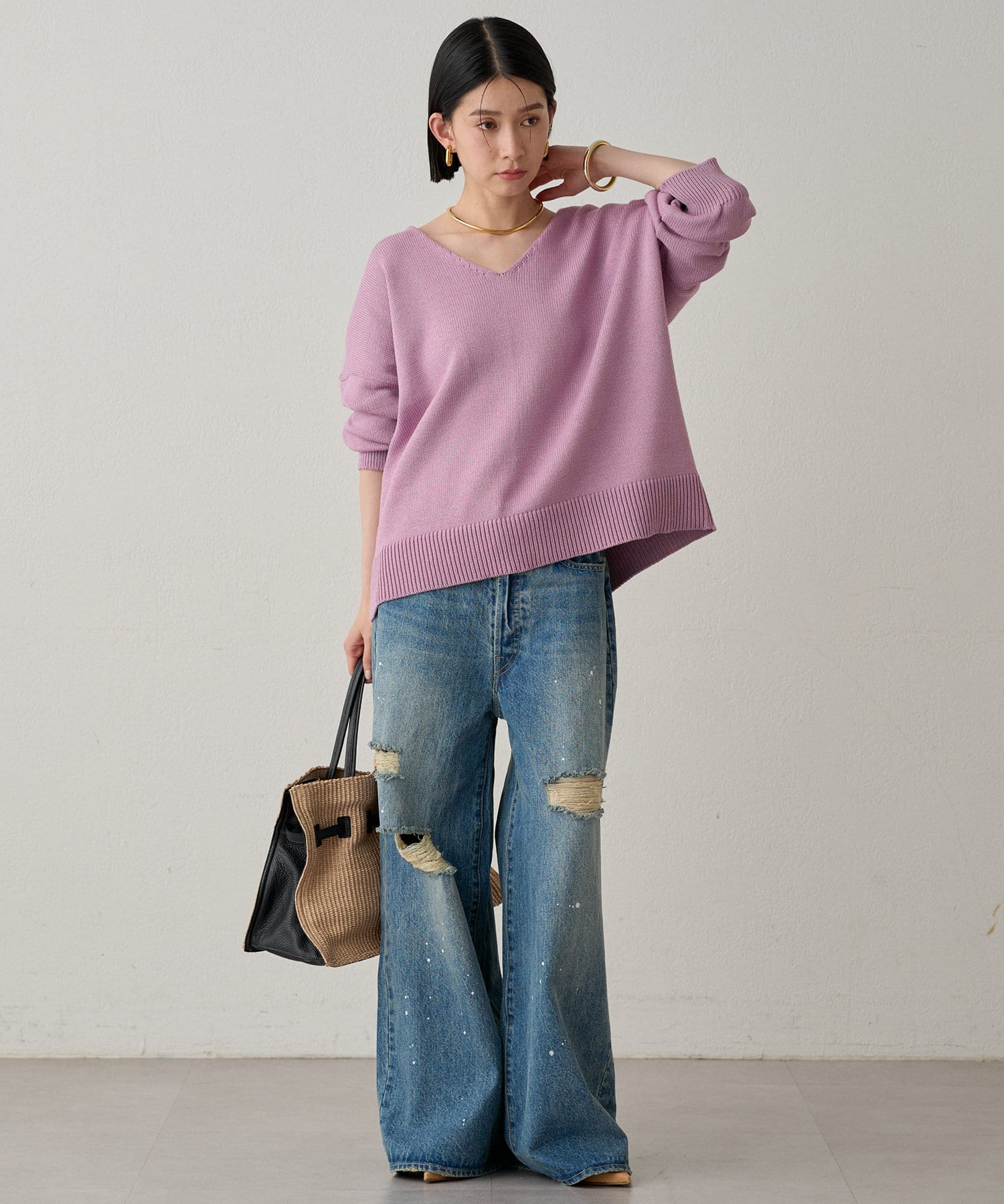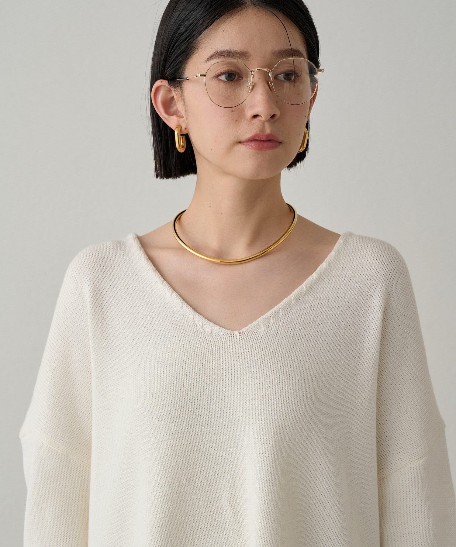 首元のV開きが女っぽく見せてくれるコットンニット。