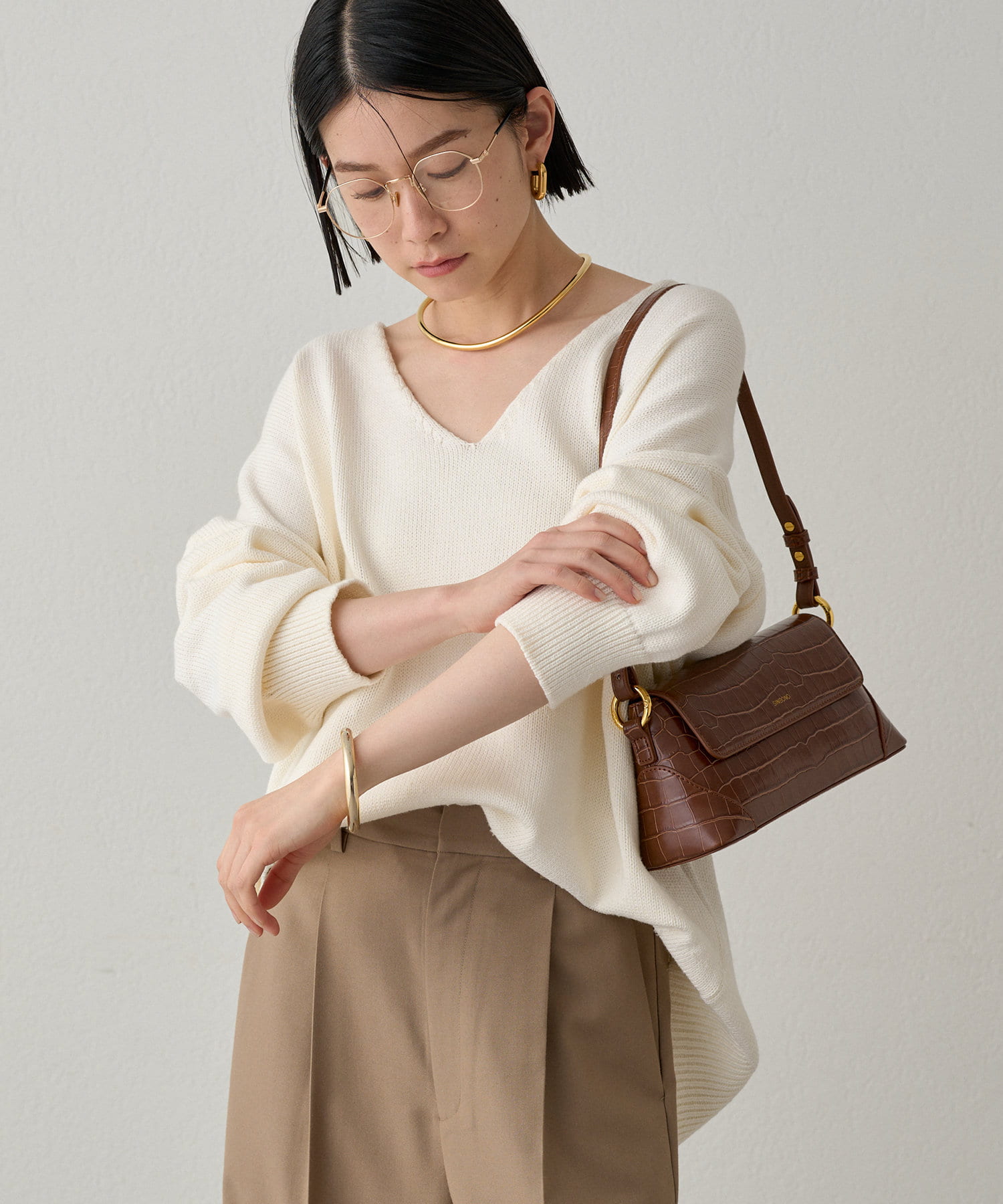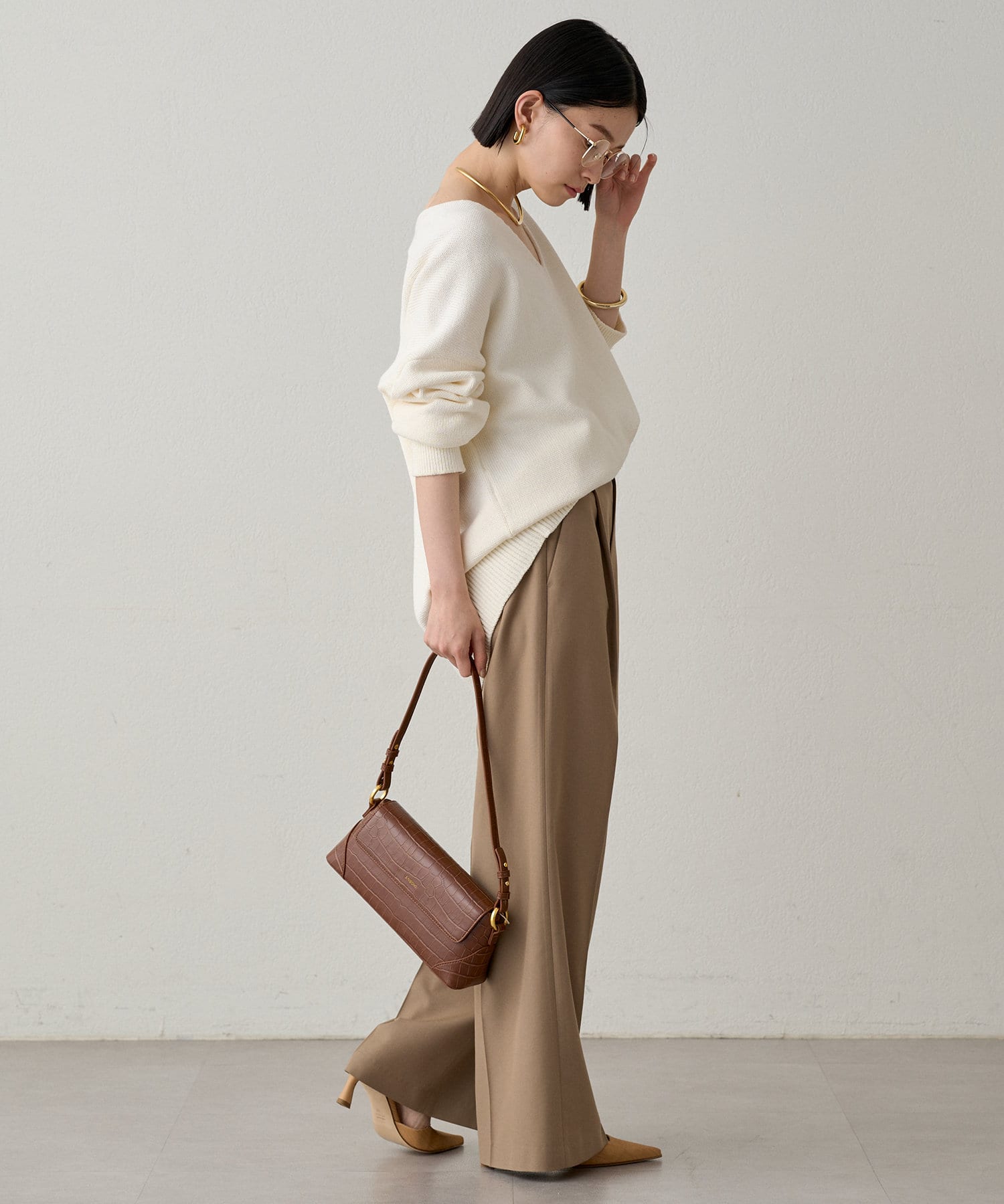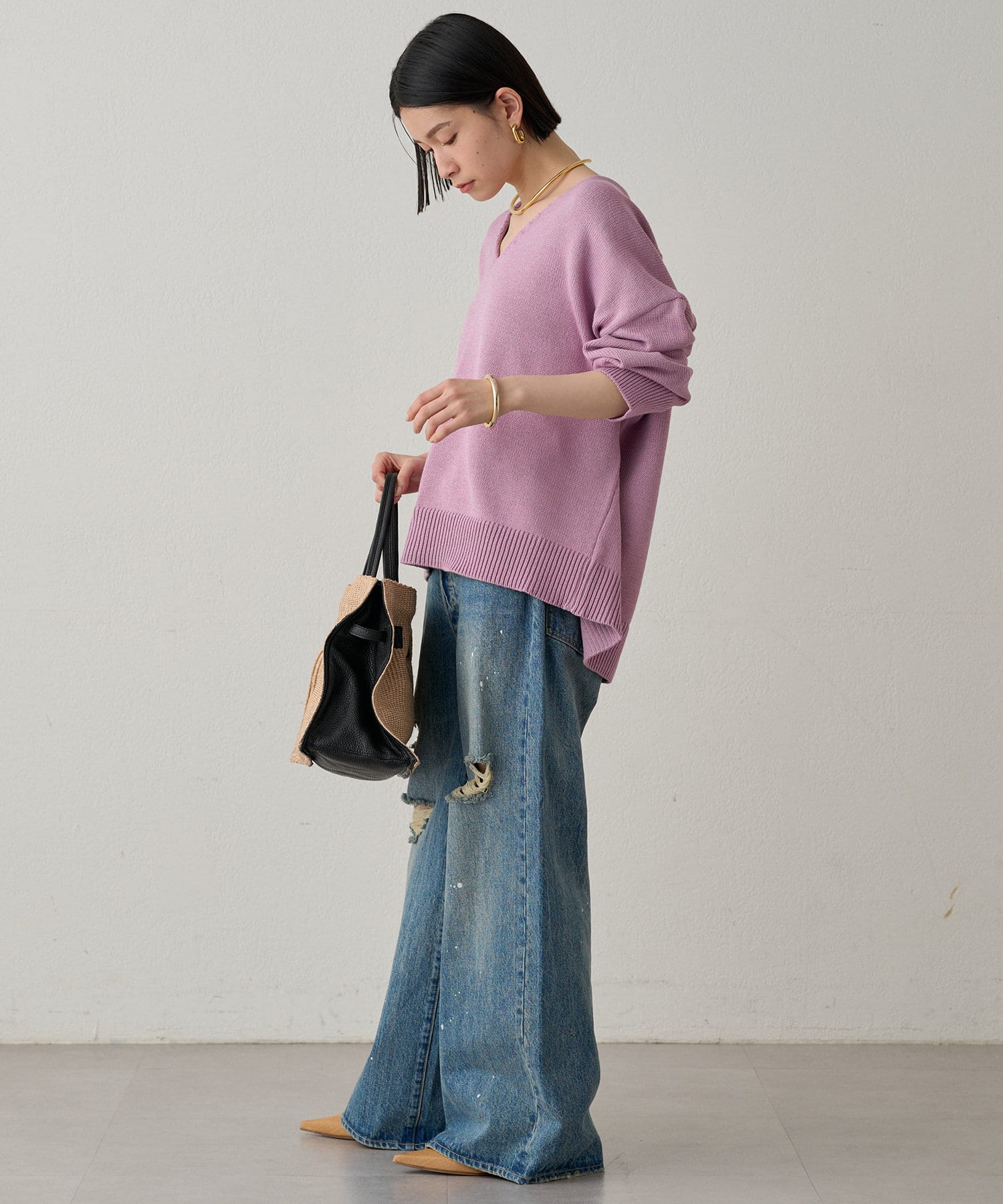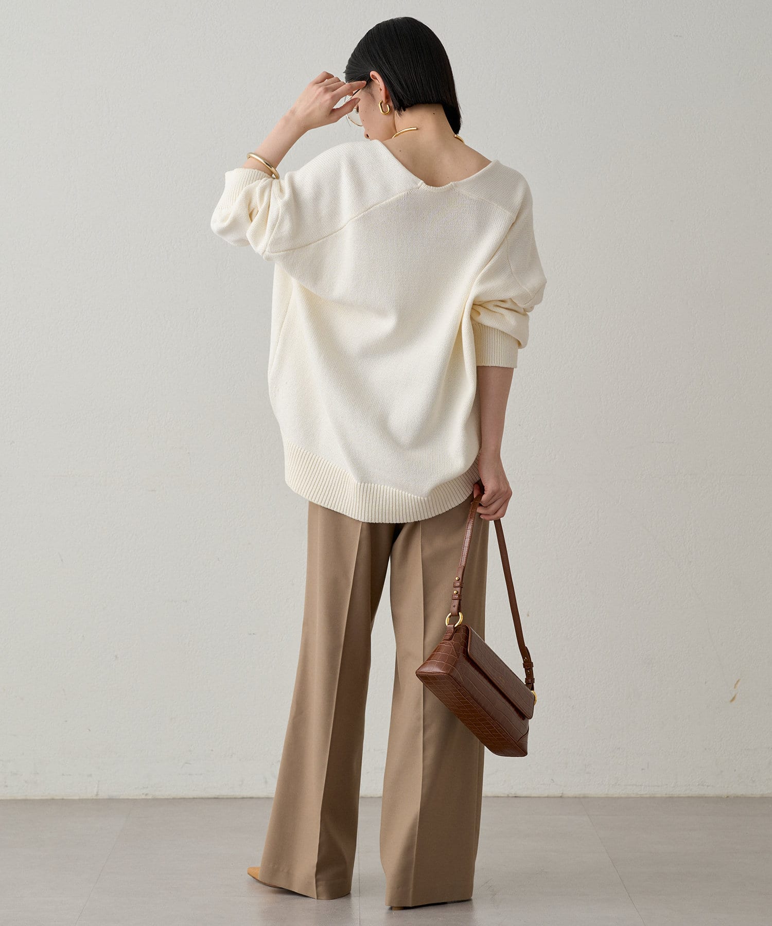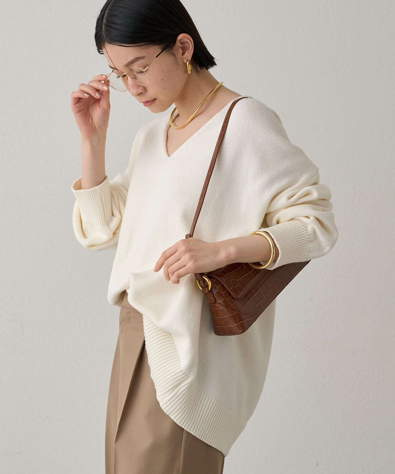 首元のV開きが女っぽく見せてくれるコットンニット。