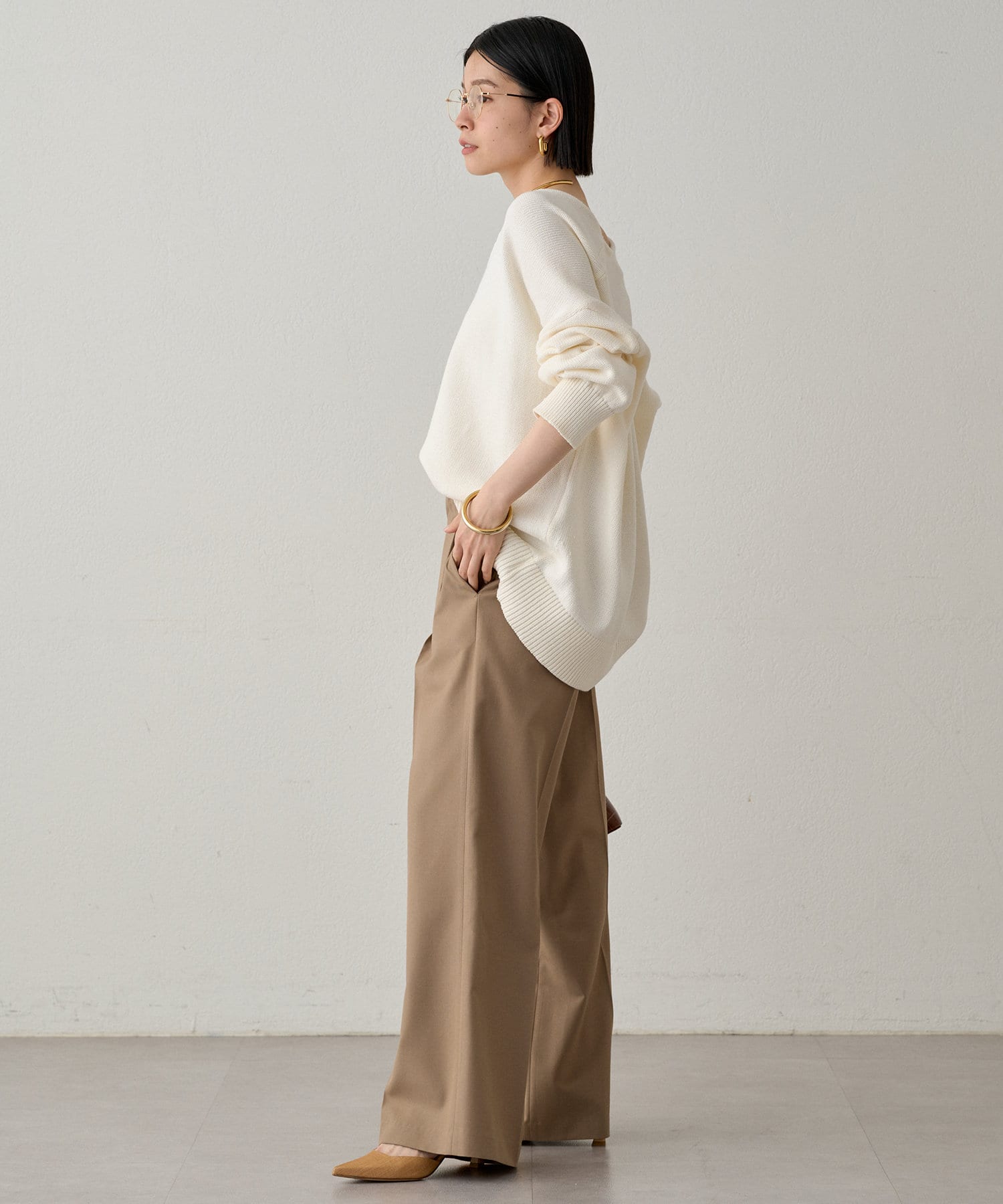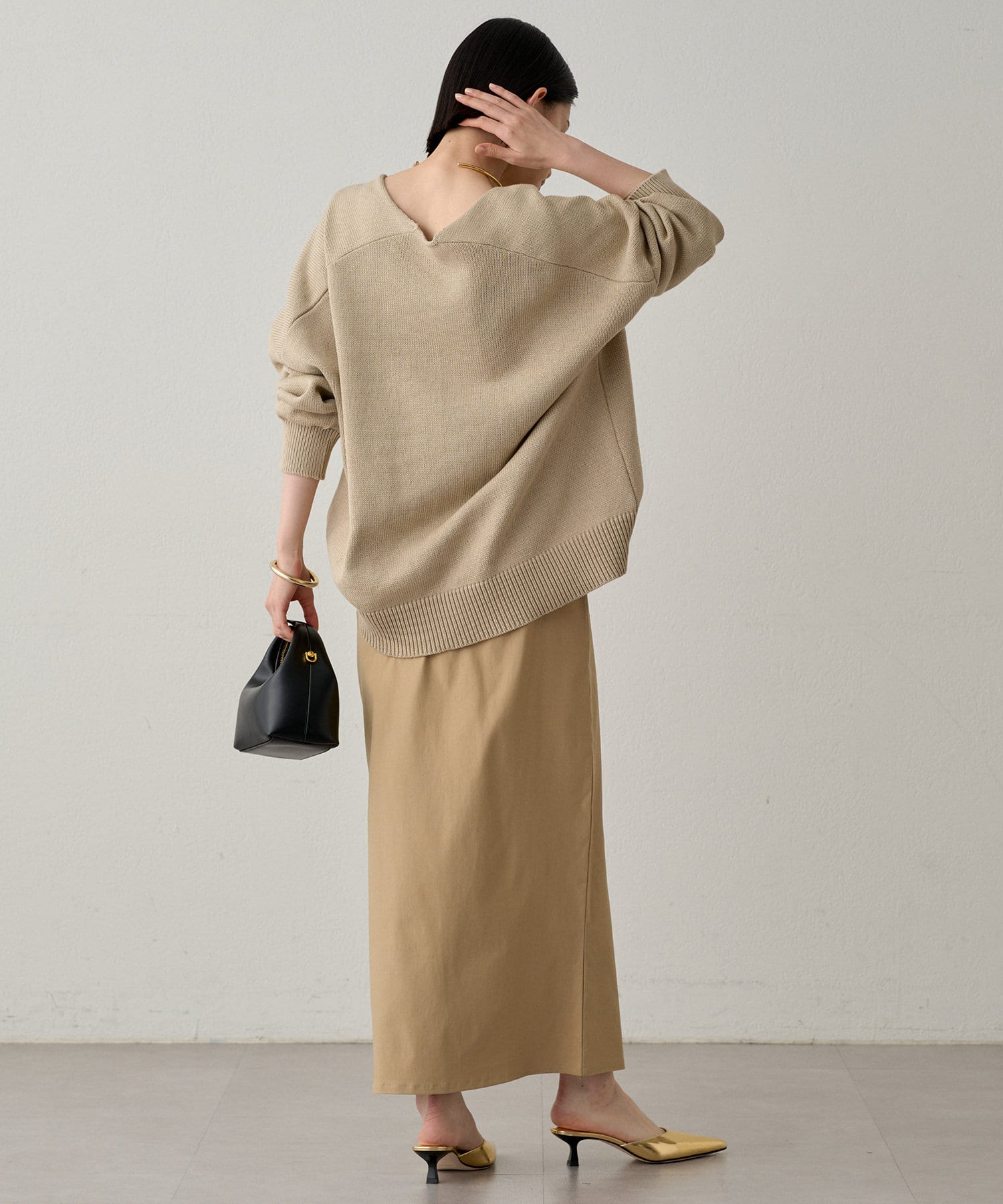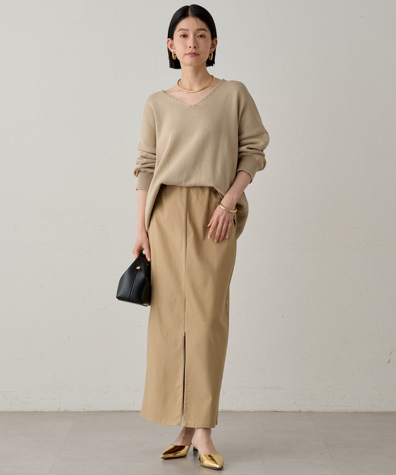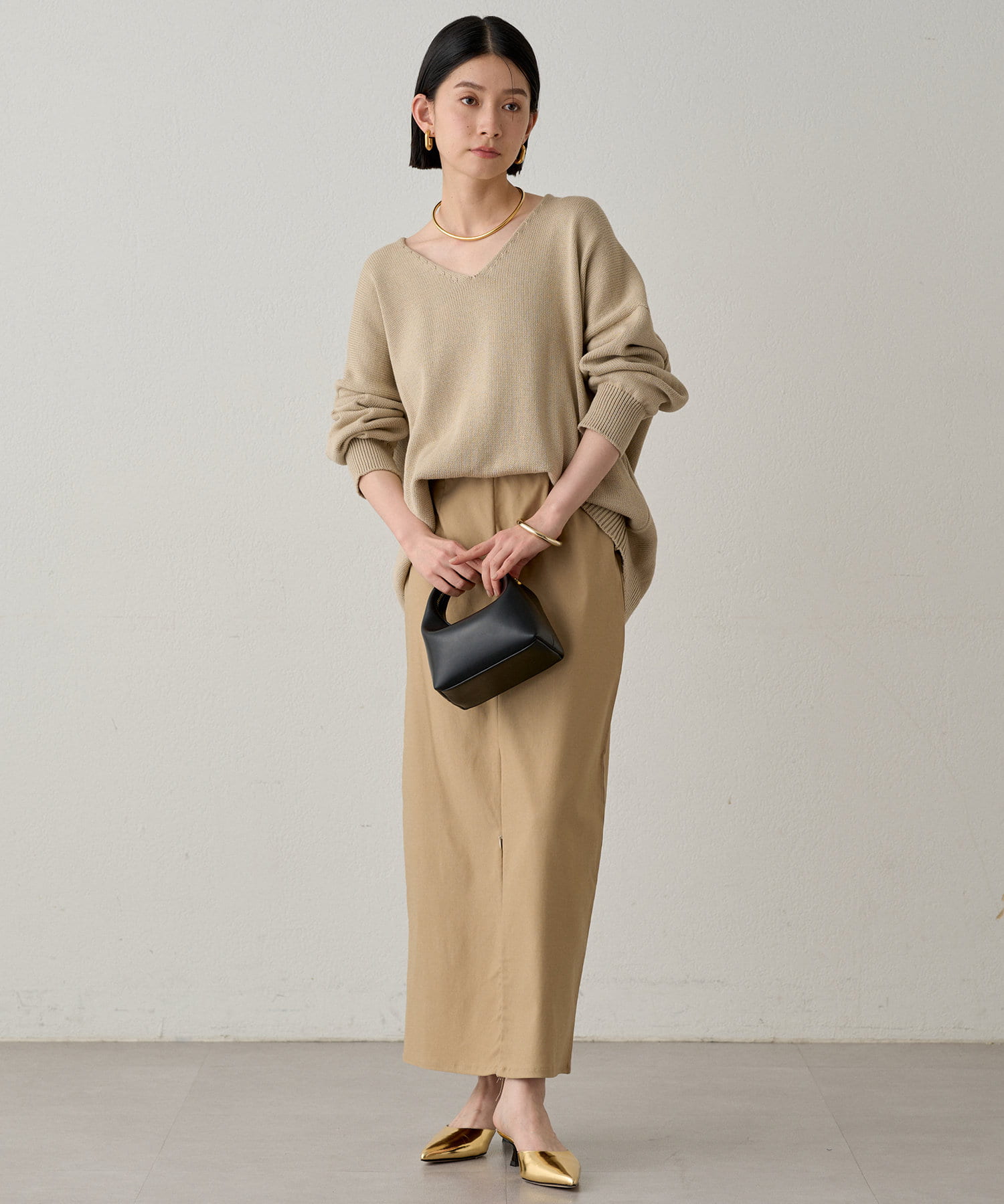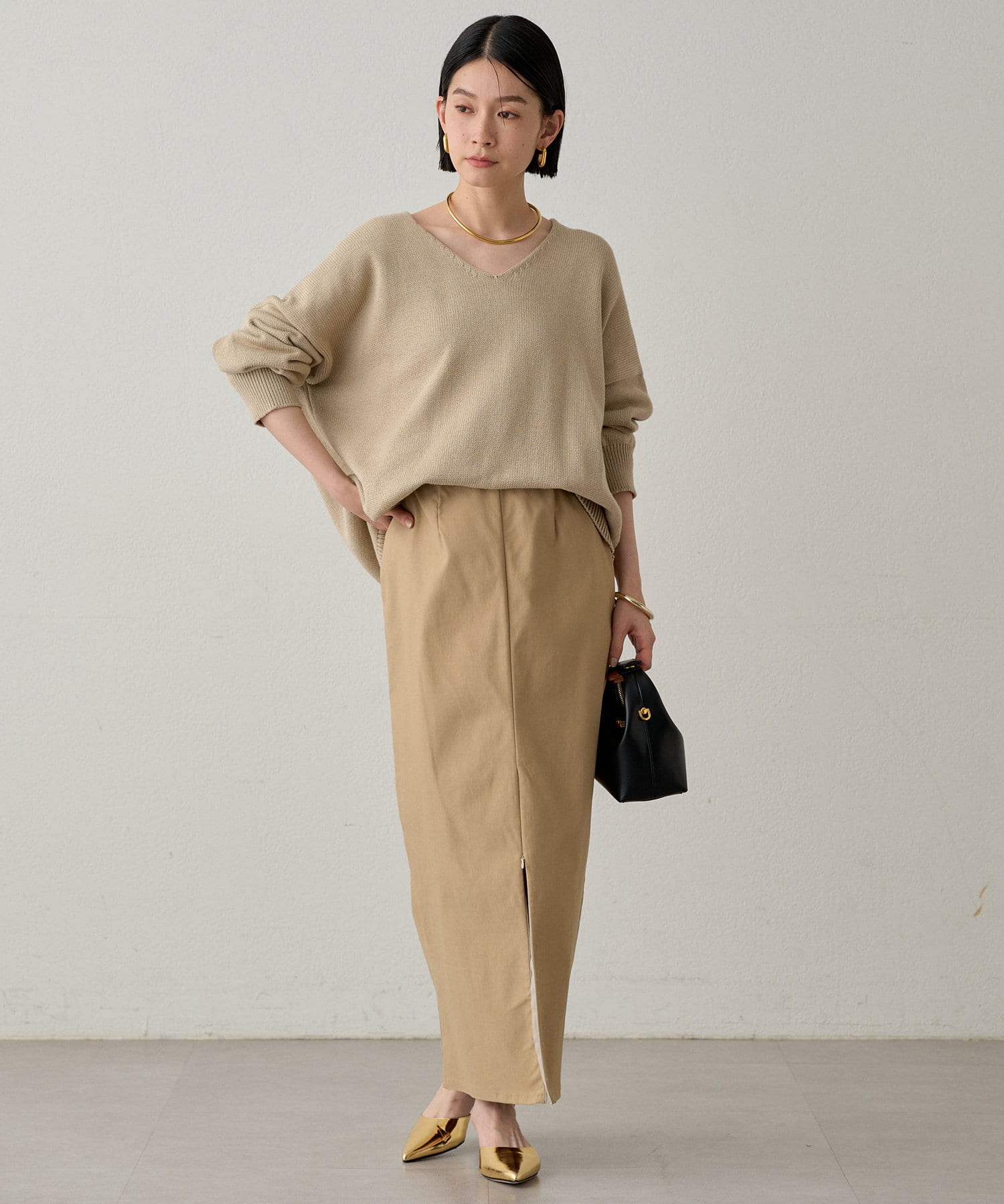 きれいめなボトムスを合わせたオンスタイルや、デニムやフレアスカートなどを合わせたオフスタイルにも。