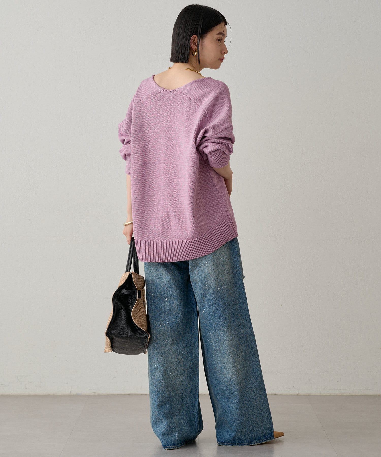 【Loungedress】コットンVニット