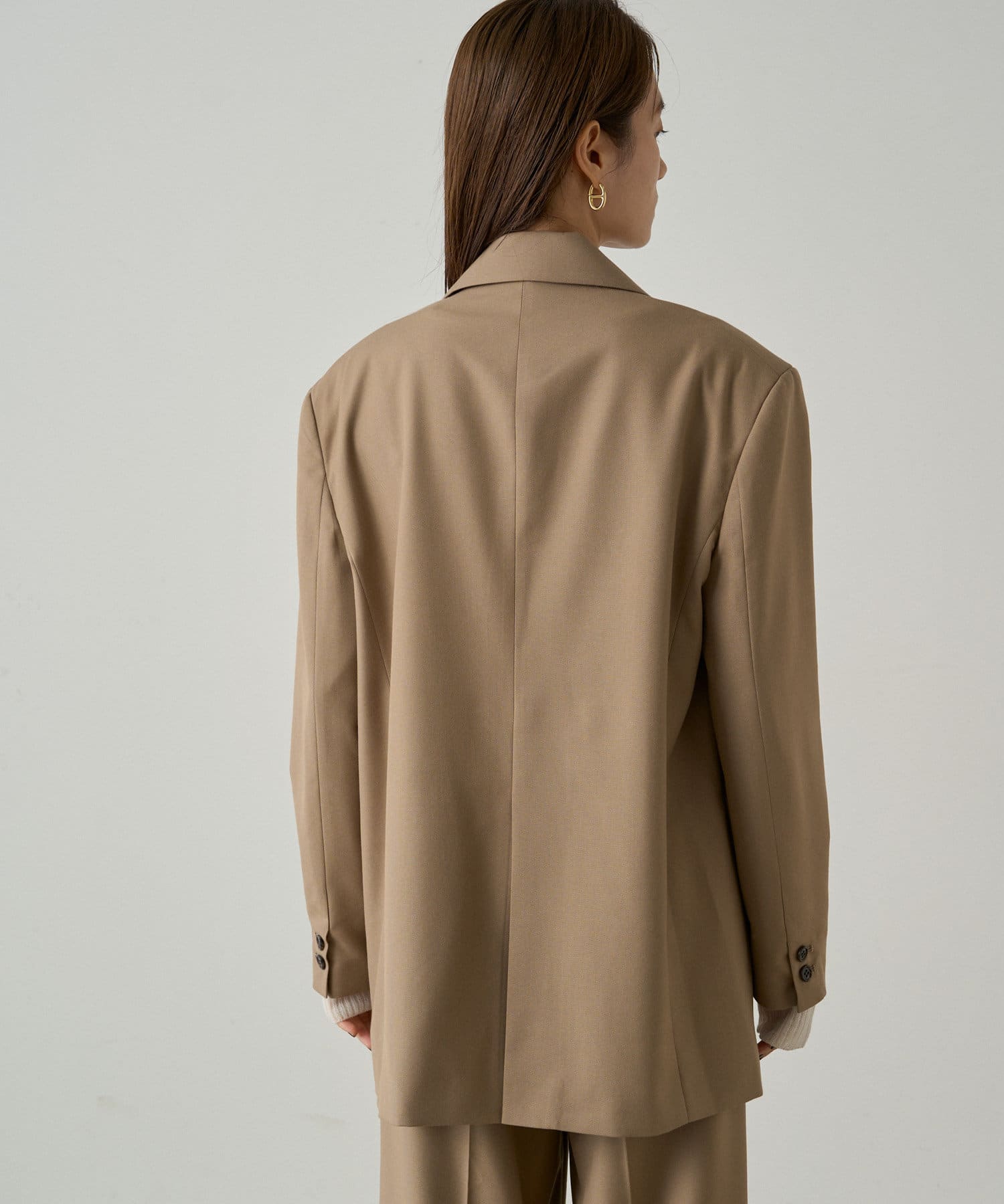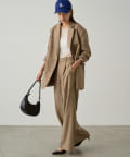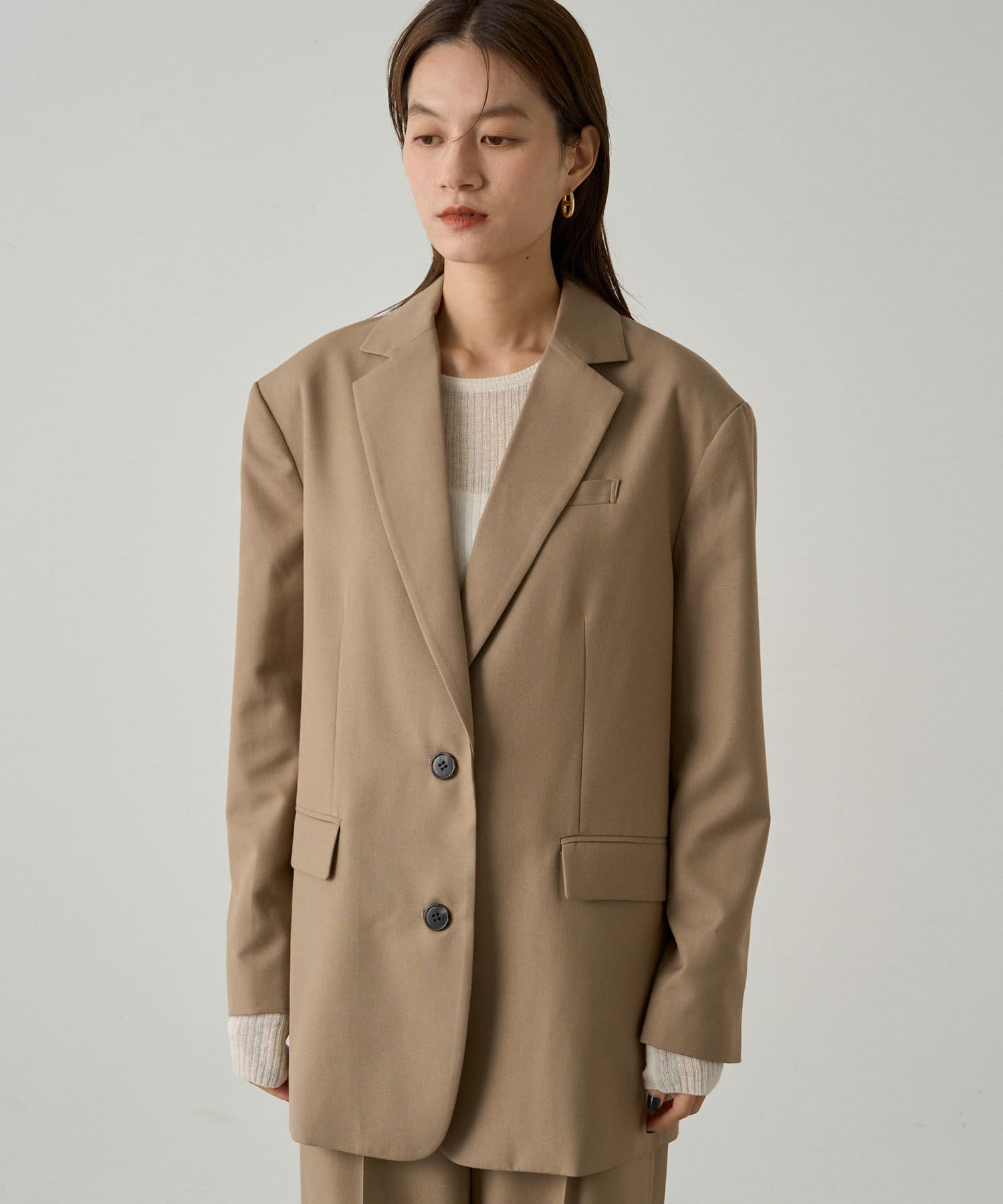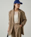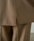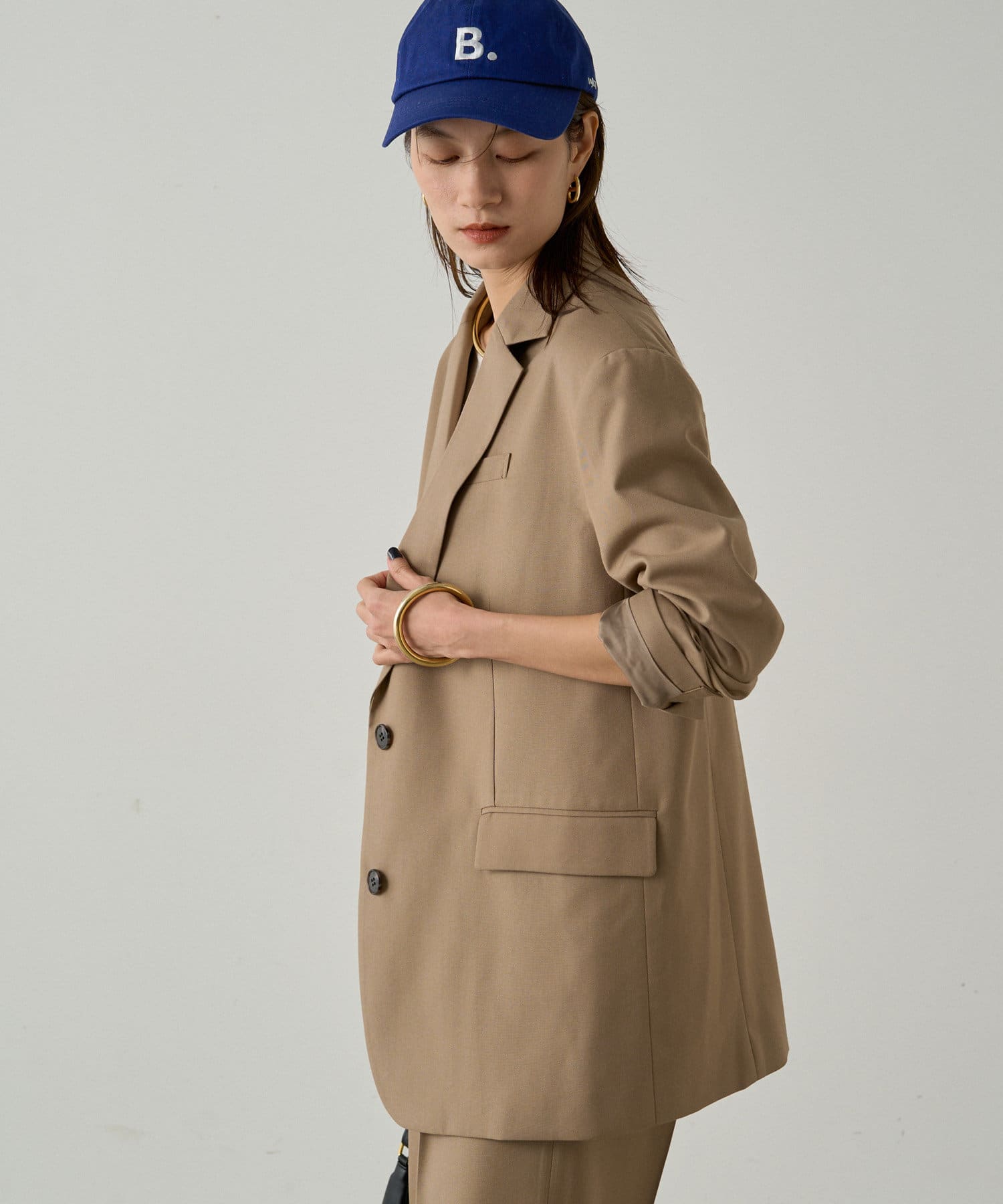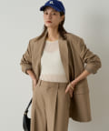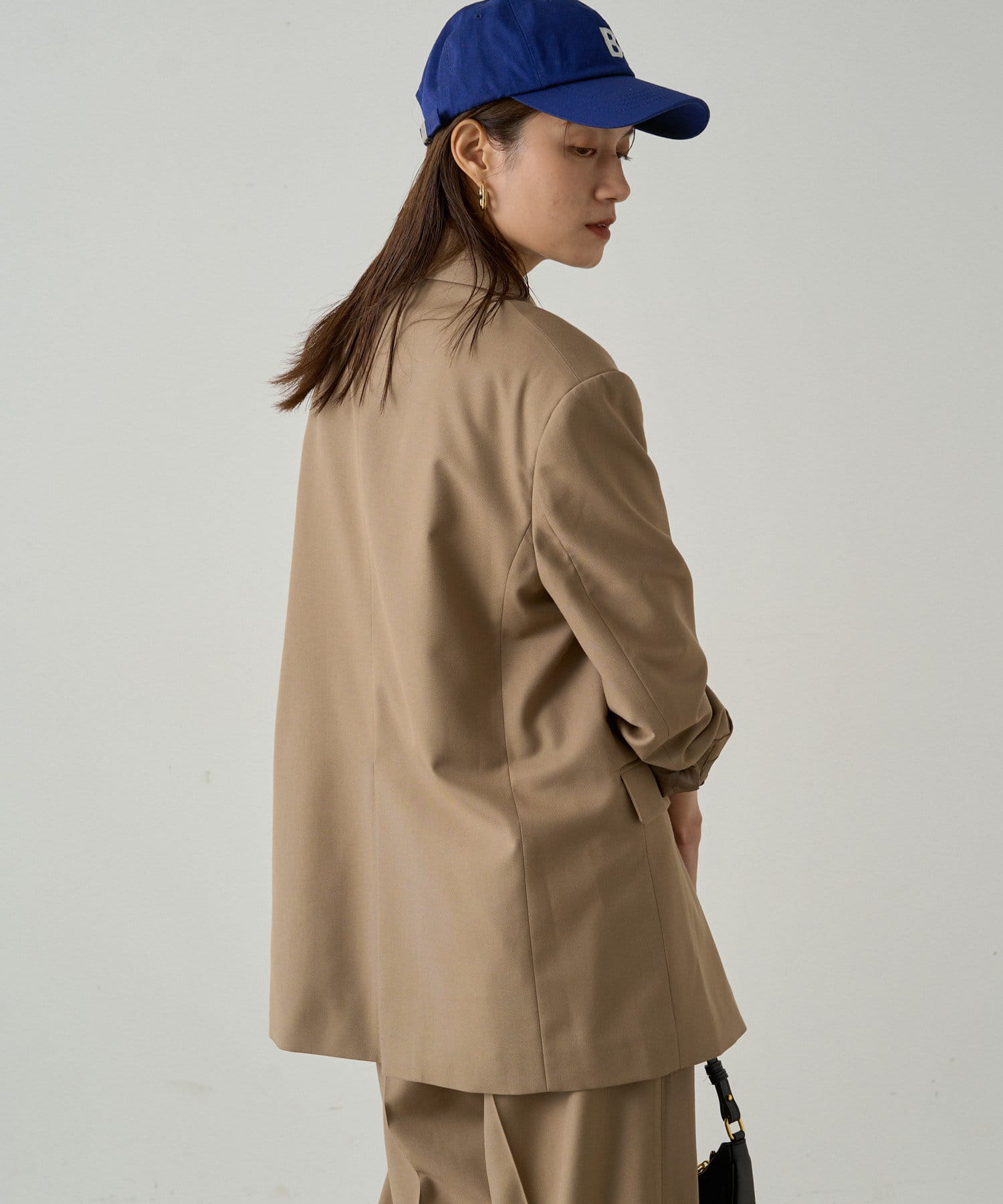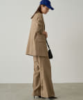 同素材のパンツと合わせたセットアップスタイルはオフィスやカジュアルな場面など様々なシーンで活躍してくれます。