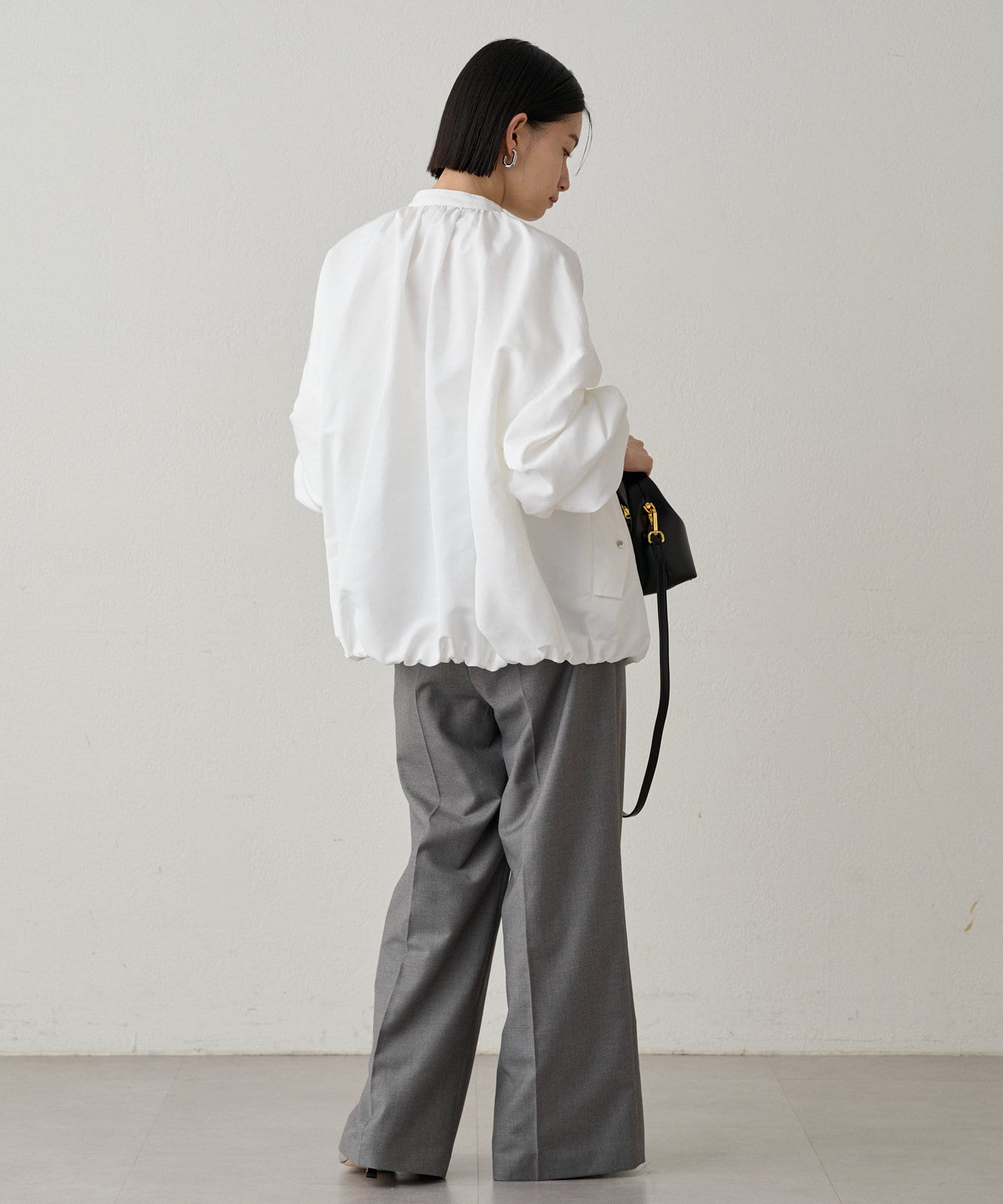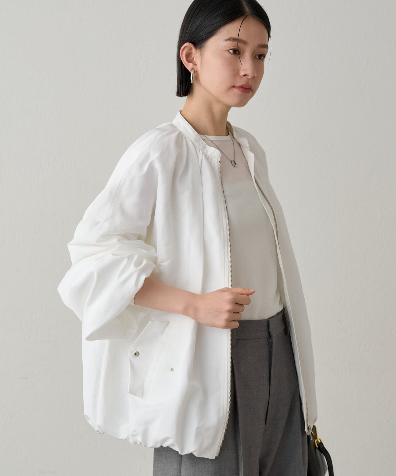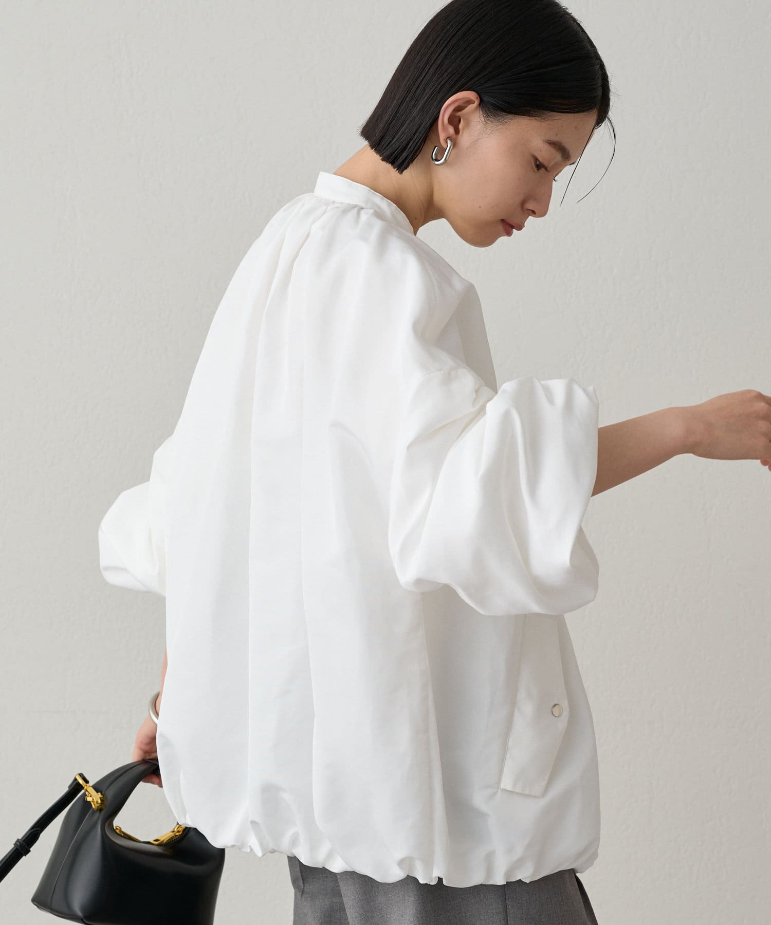 ギャザーのデザインとボリュームのあるシルエットが新鮮なブルゾン。