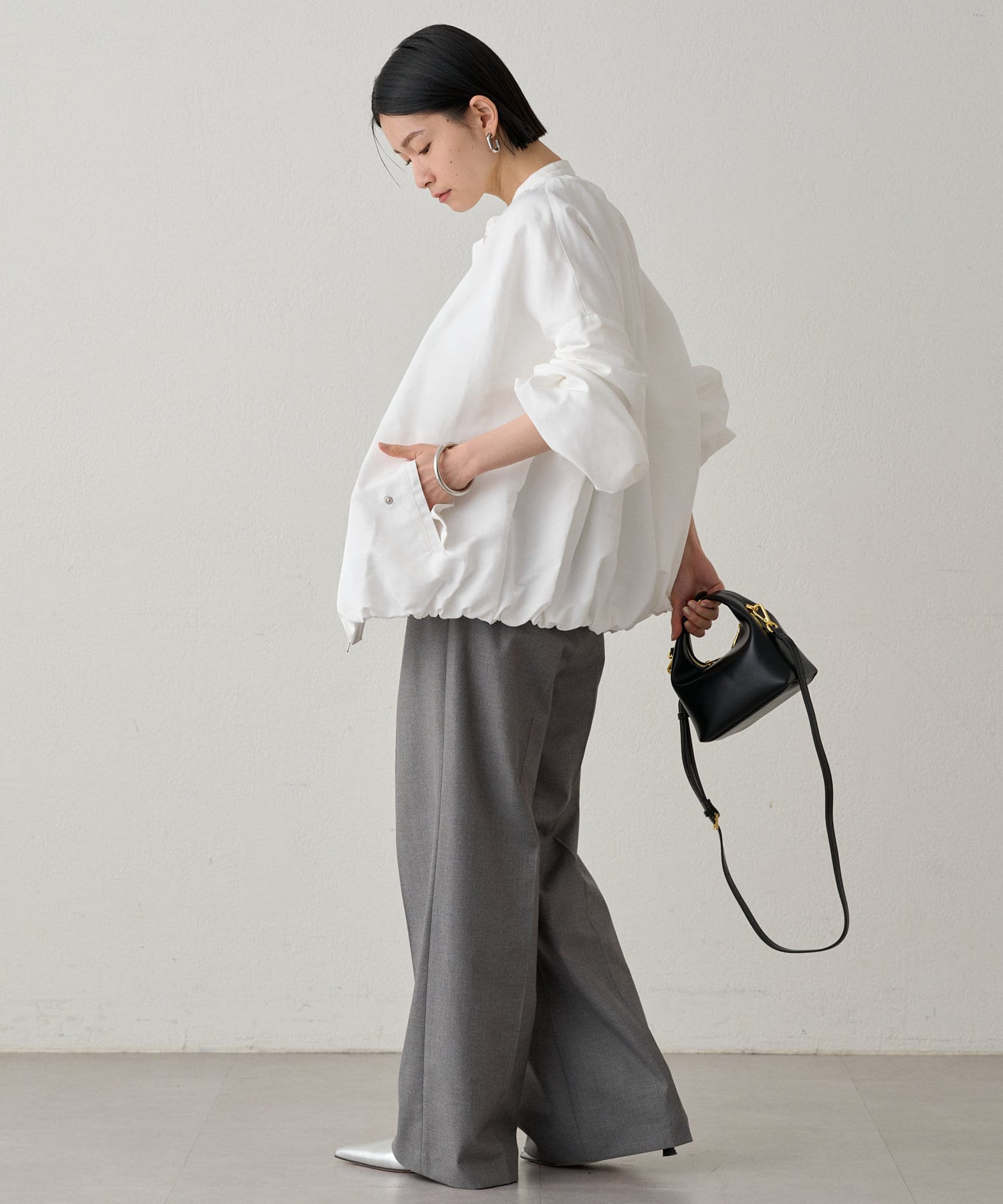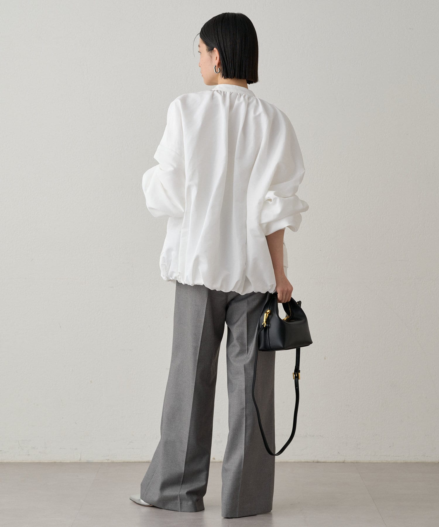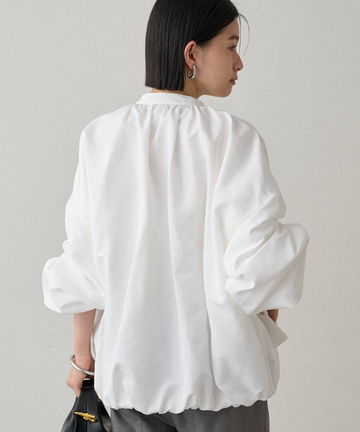 ギャザーのデザインとボリュームのあるシルエットが新鮮なブルゾン。