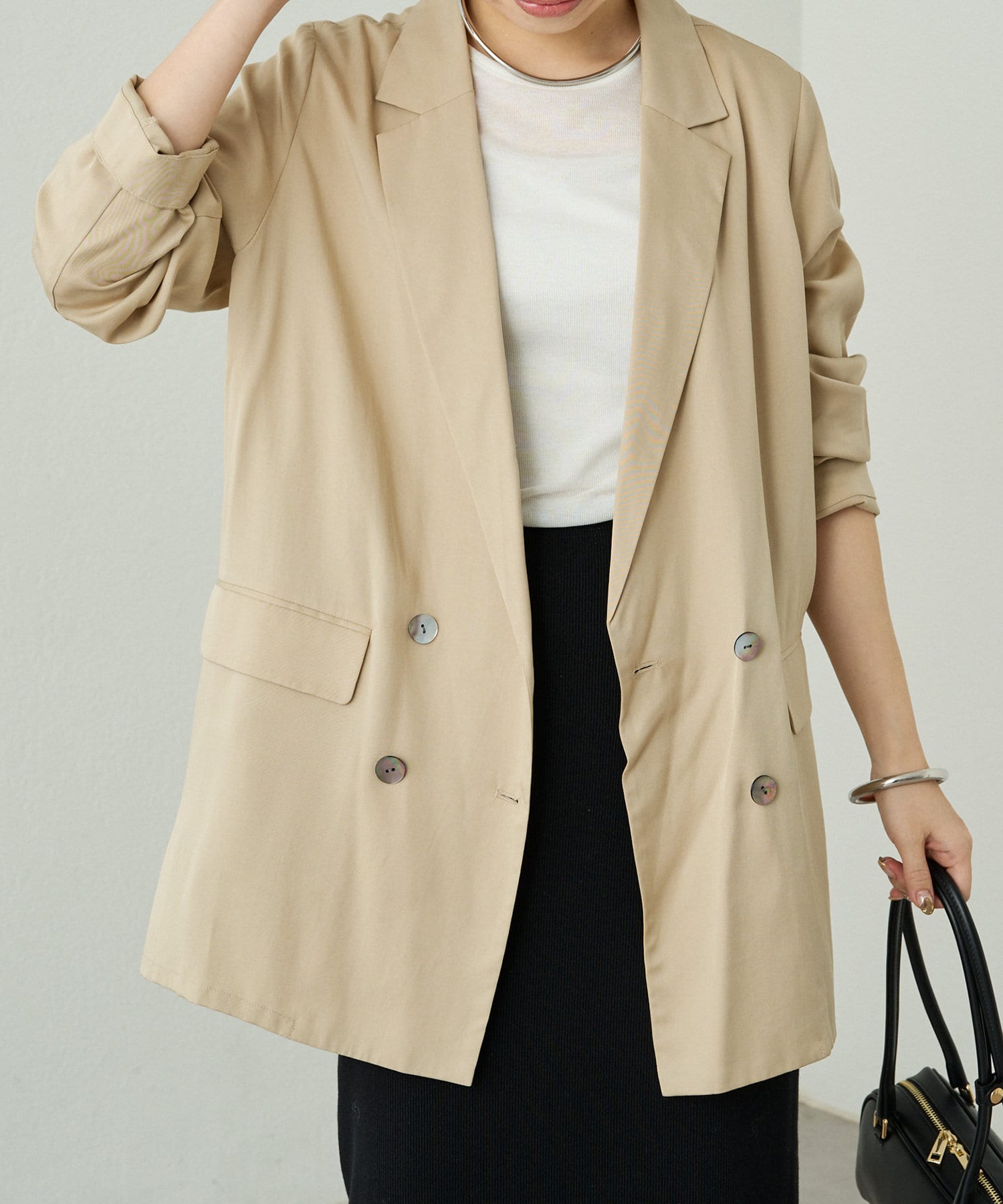 裏地はなく、シャツ感覚で羽織れてきちんと感も演出してくれるアイテム。