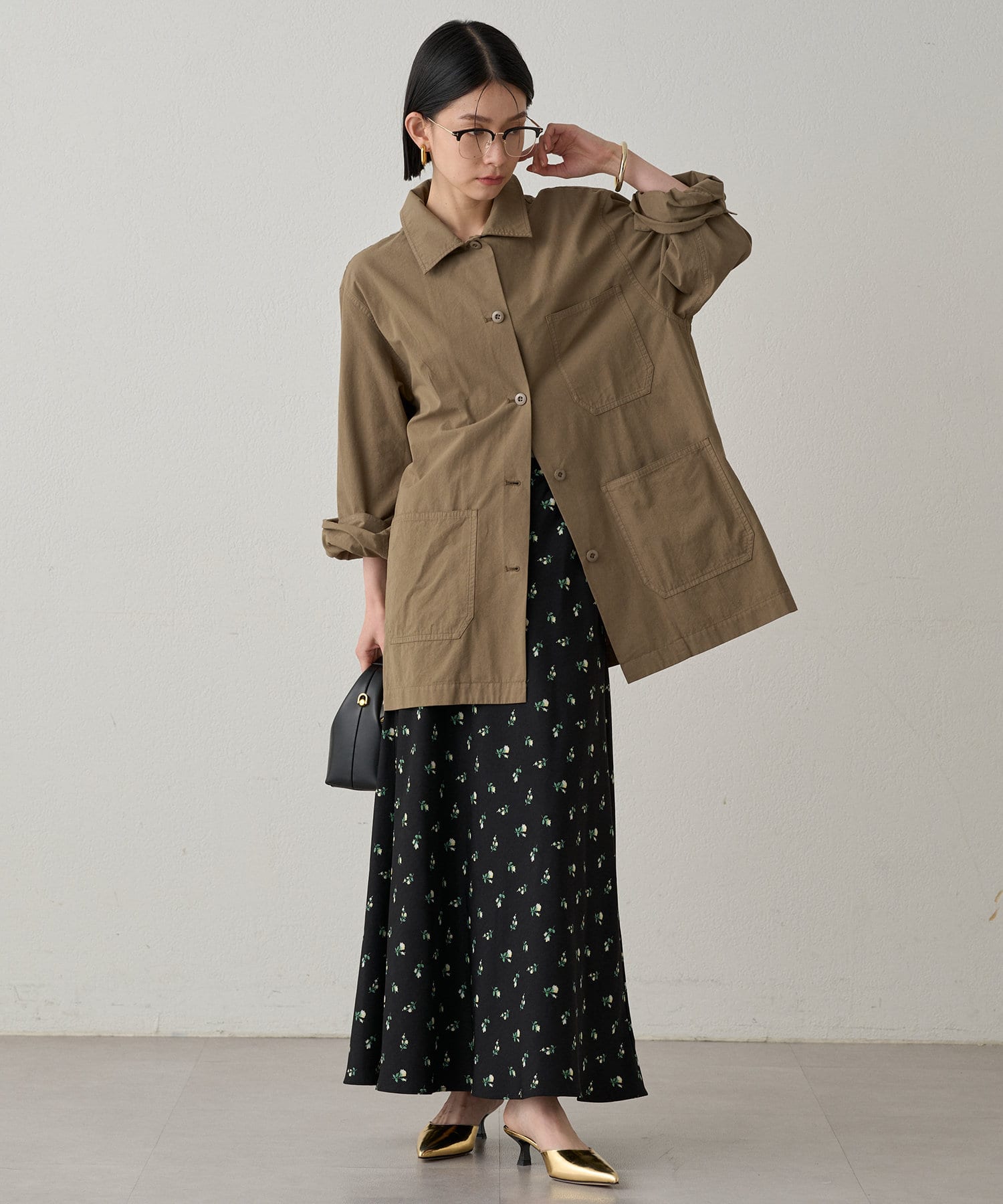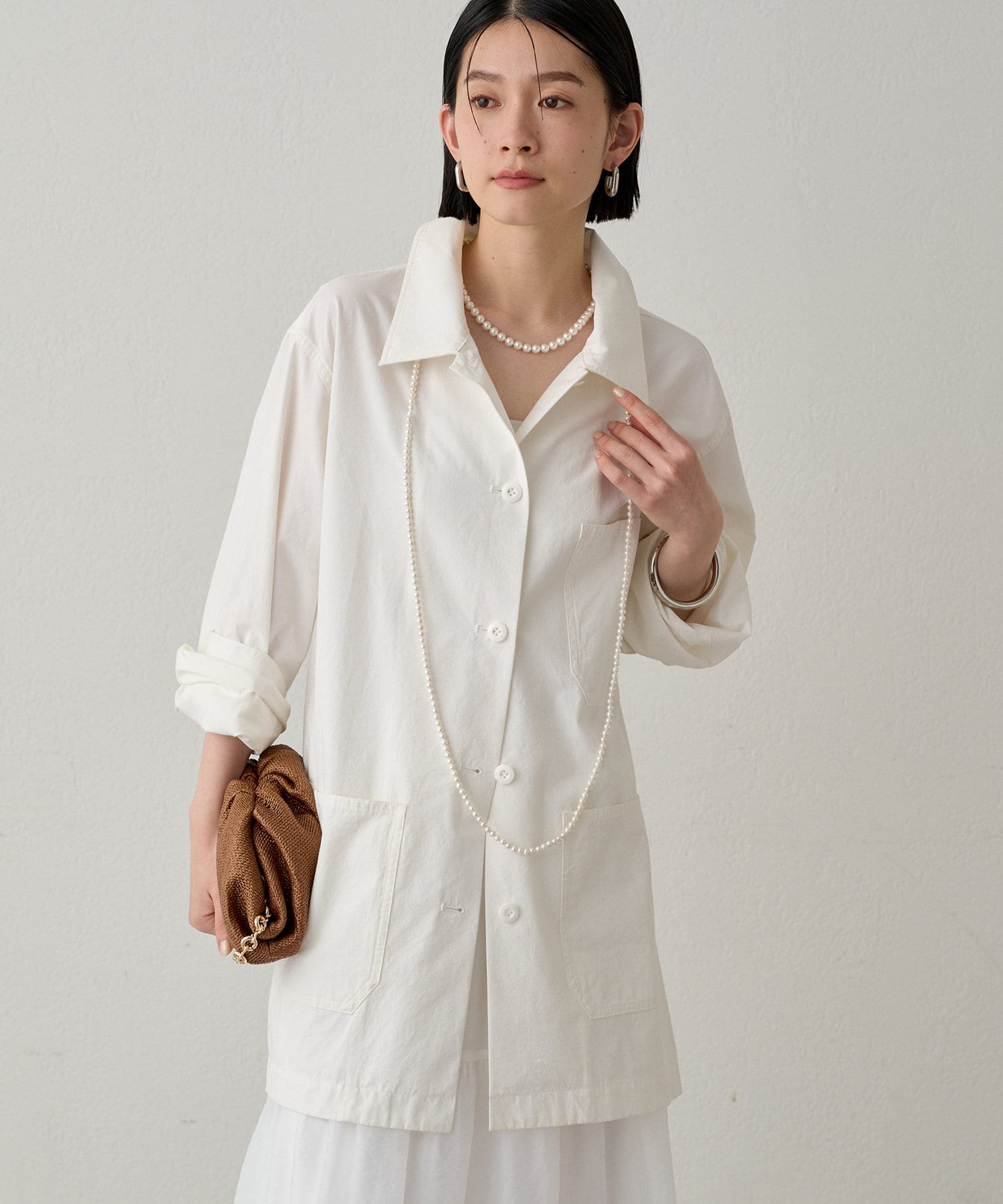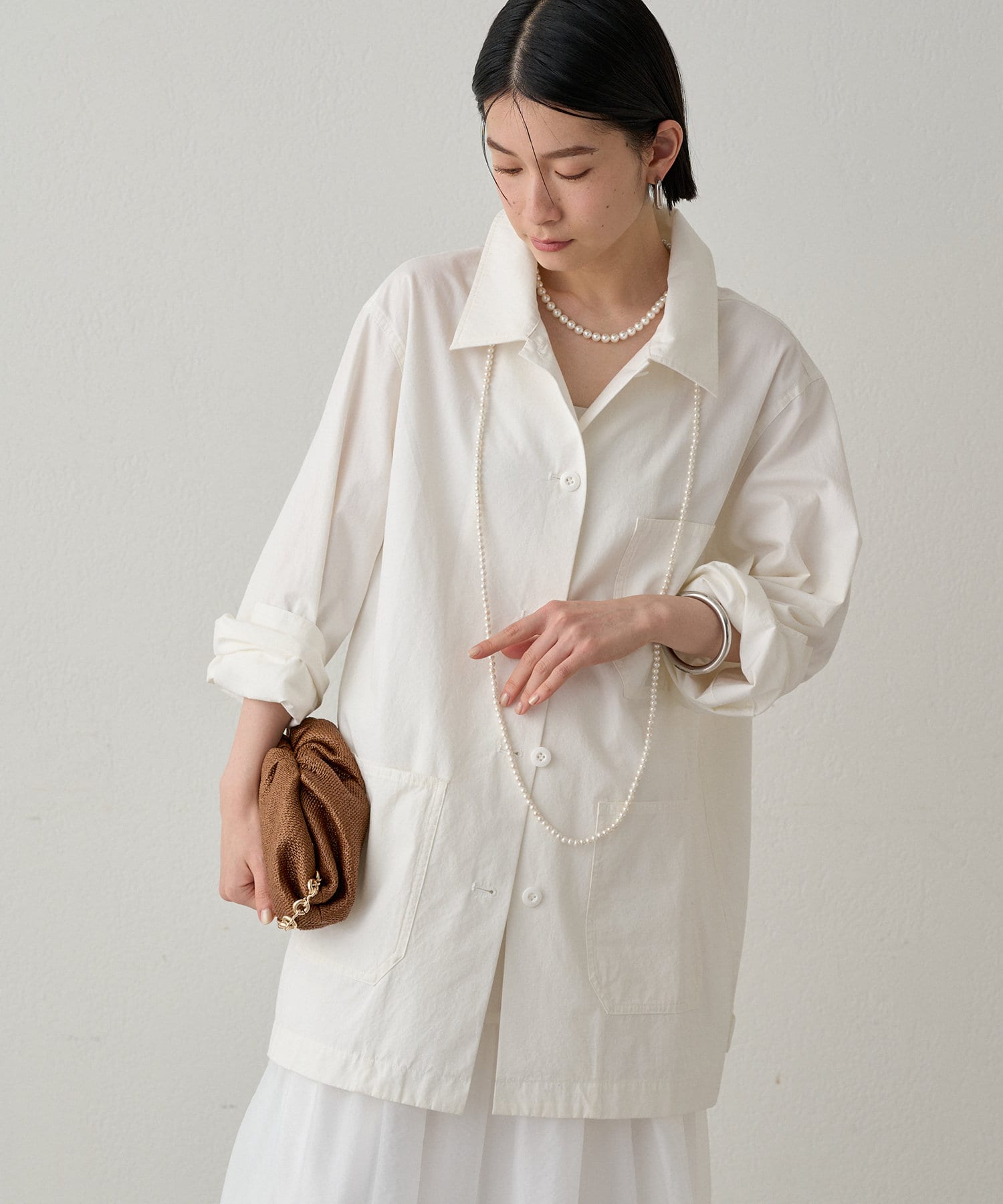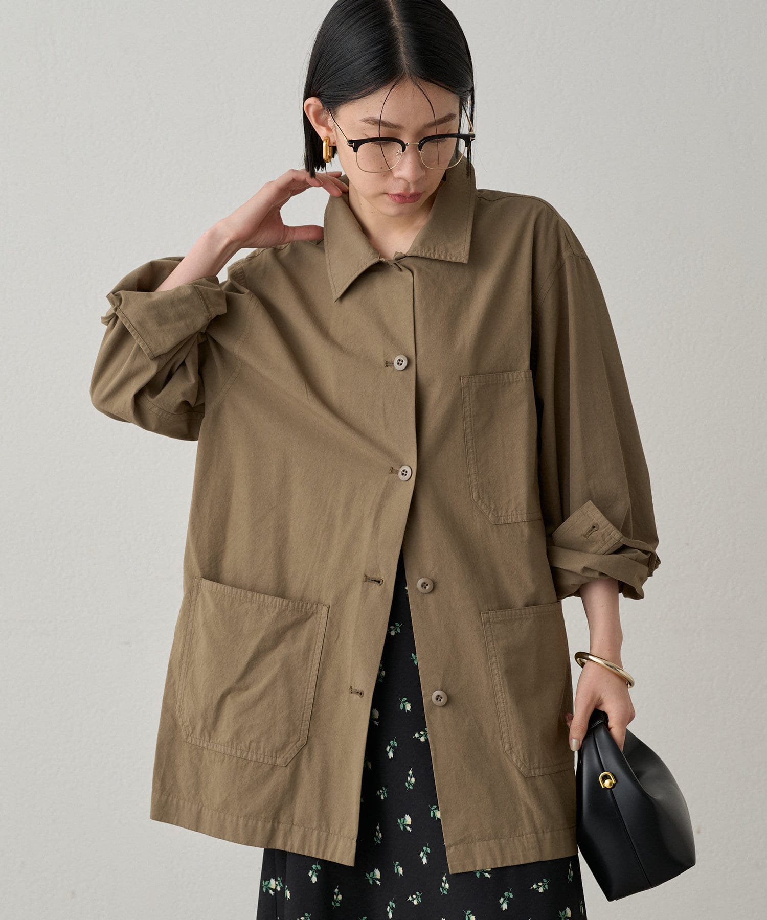 トップスとしても羽織りとしても使える生地感で、着回しがきく1枚です。