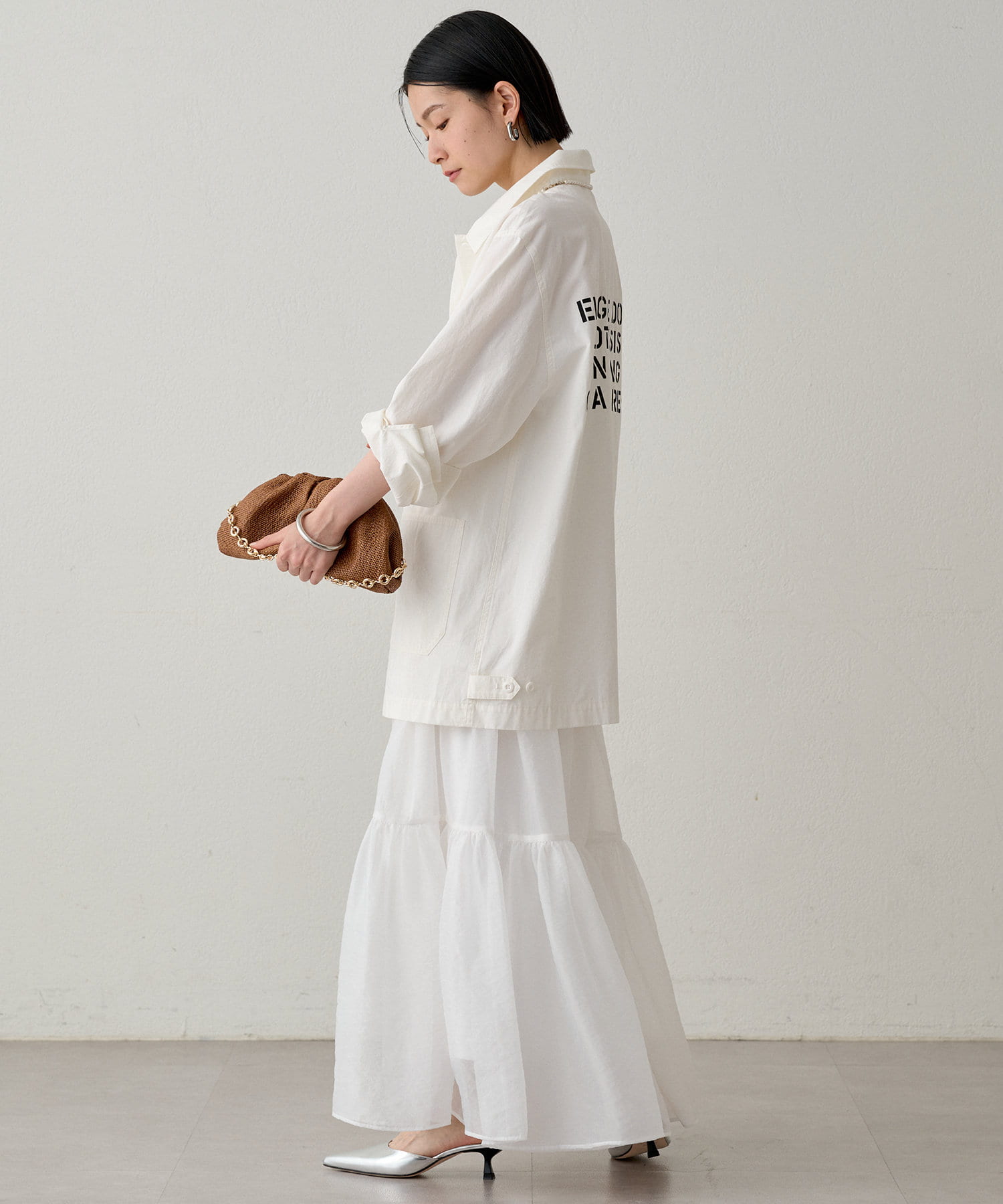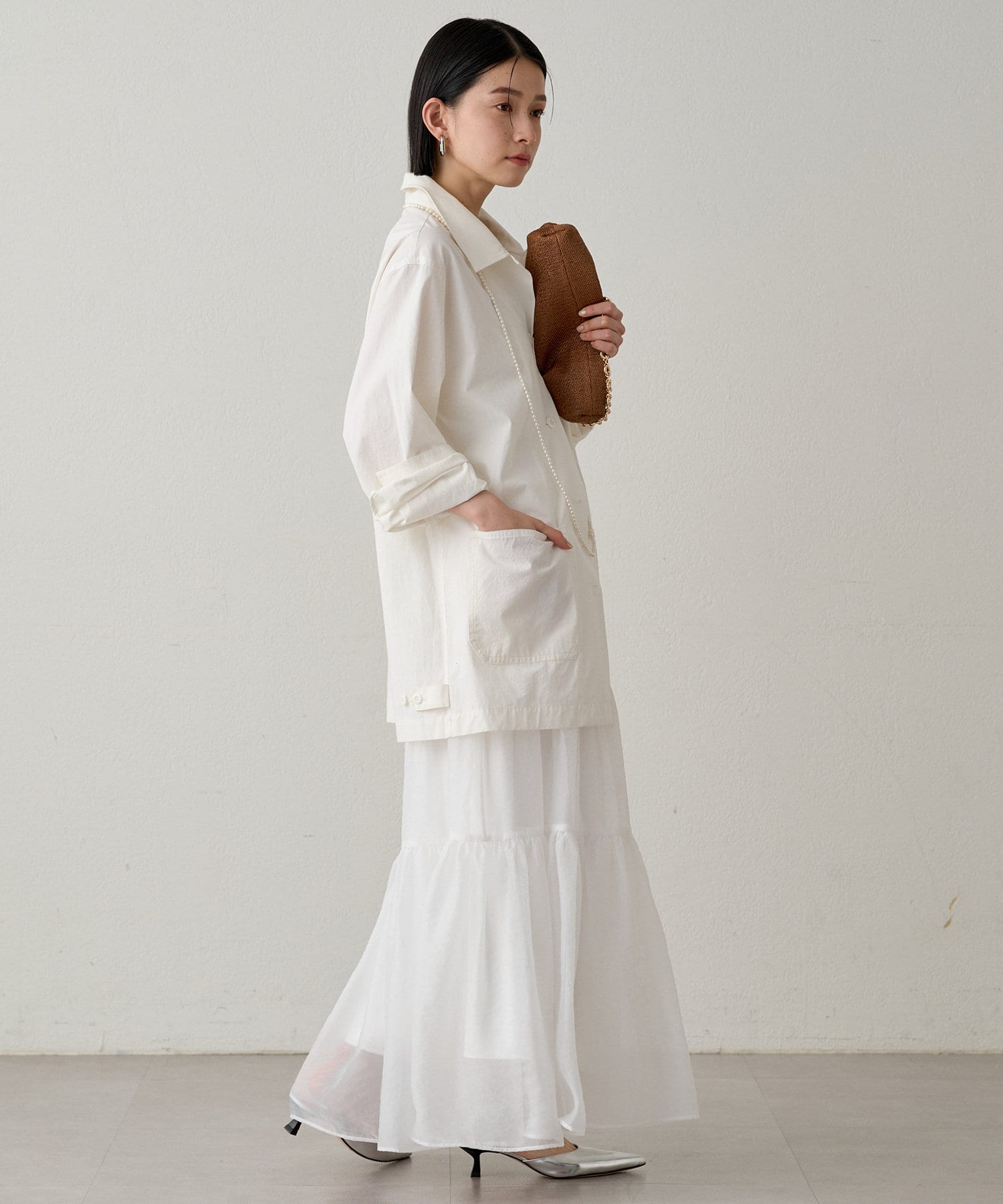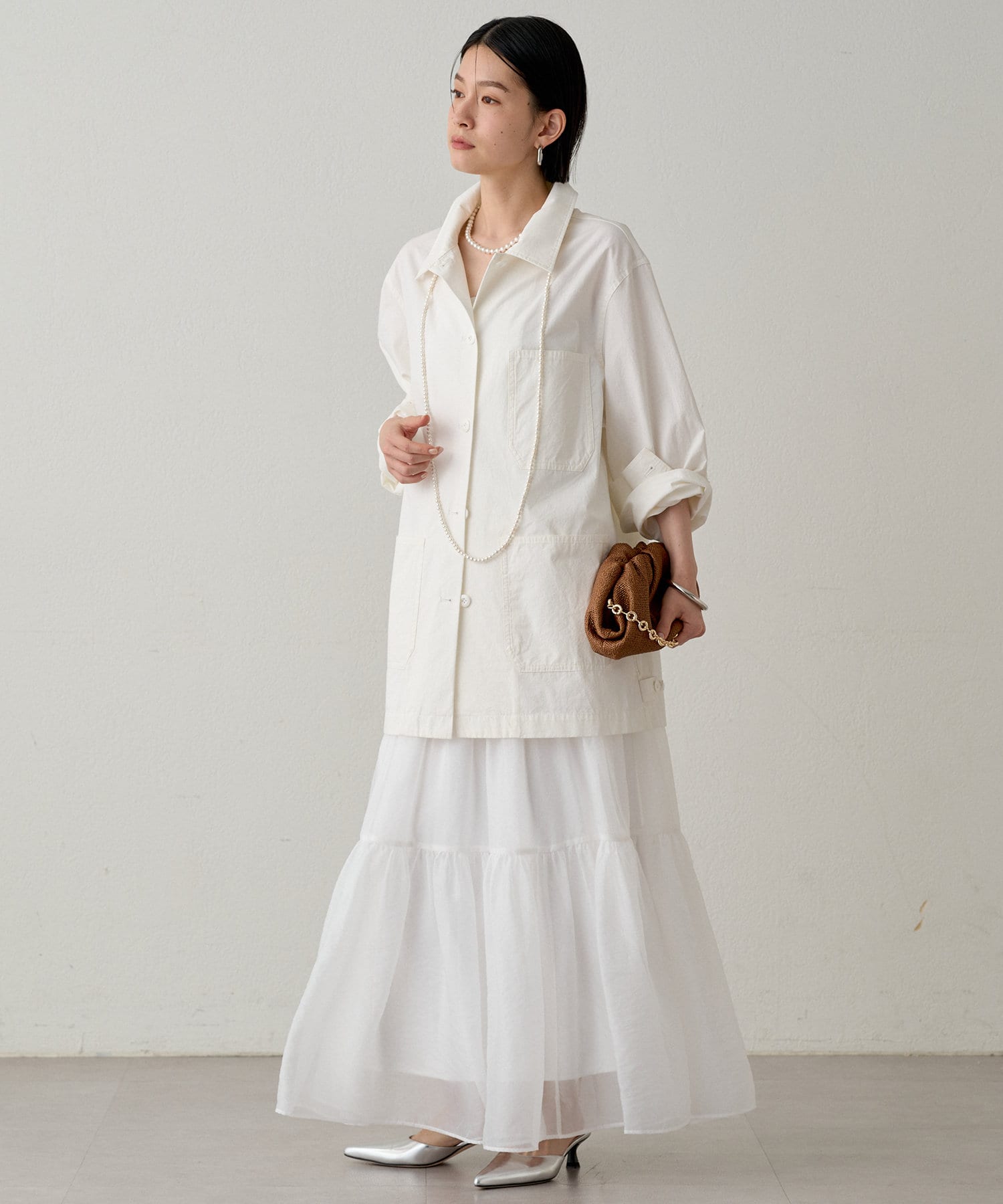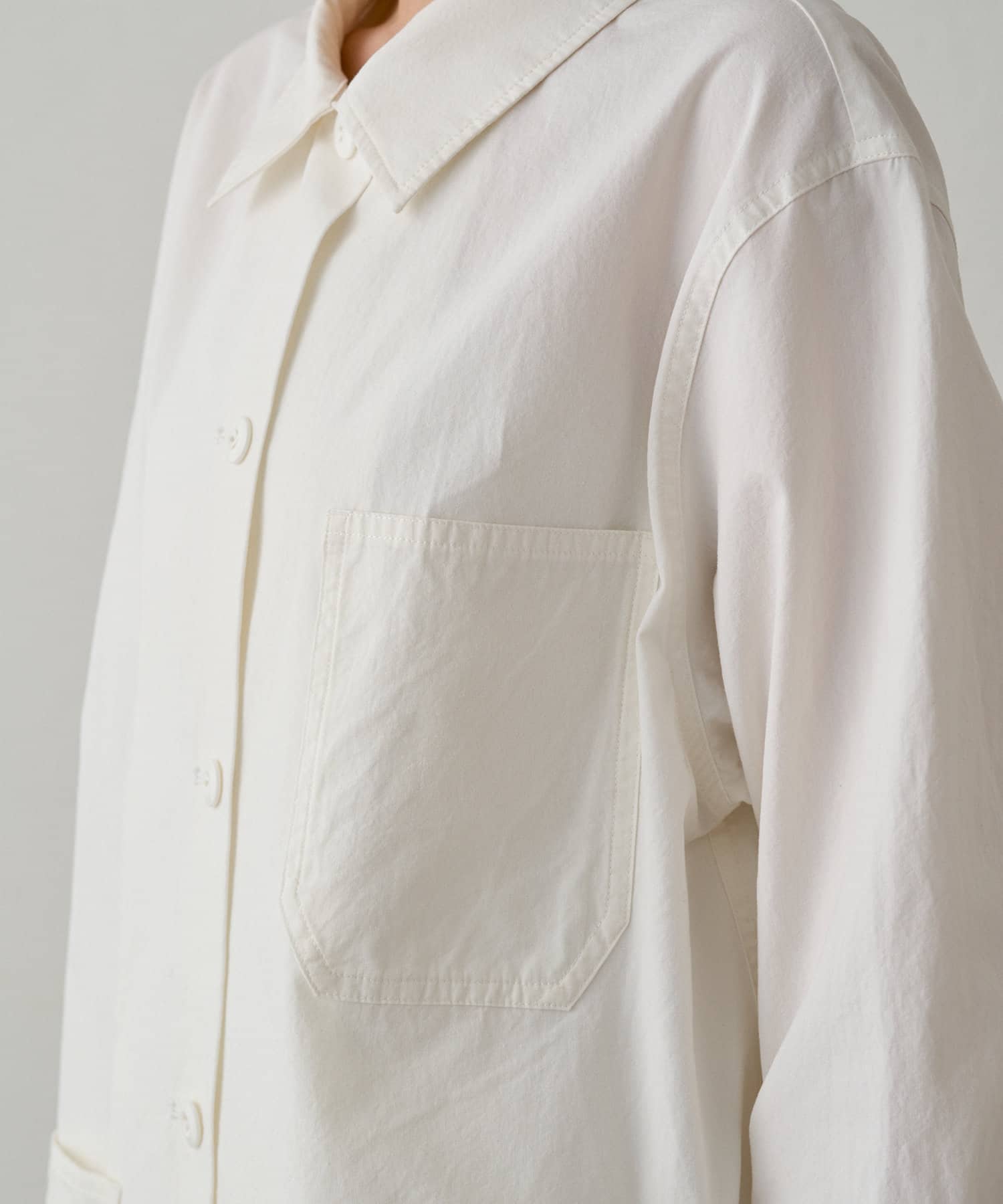 トップスとしても羽織りとしても使える生地感で、着回しがきく1枚です。
