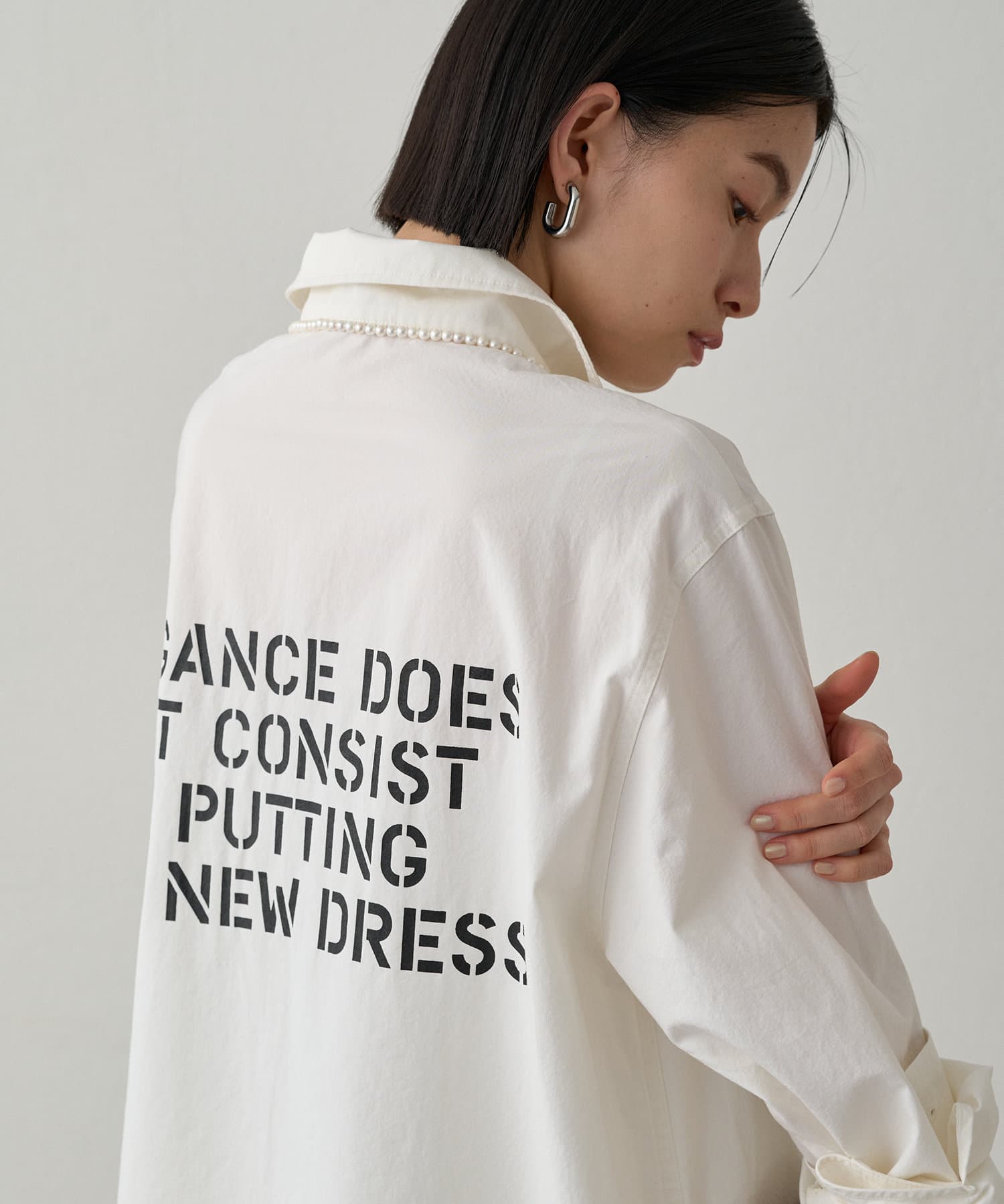 シンプルなスタイリングを引き立てるバックロゴデザインのシャツ。