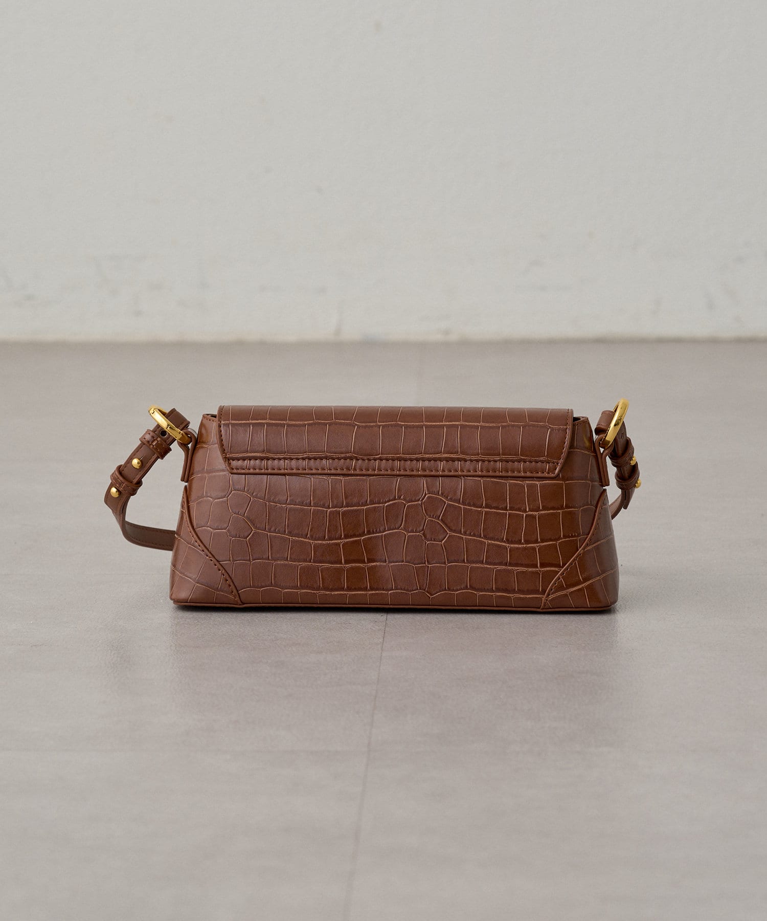 フラップ付きのショルダーバッグ。