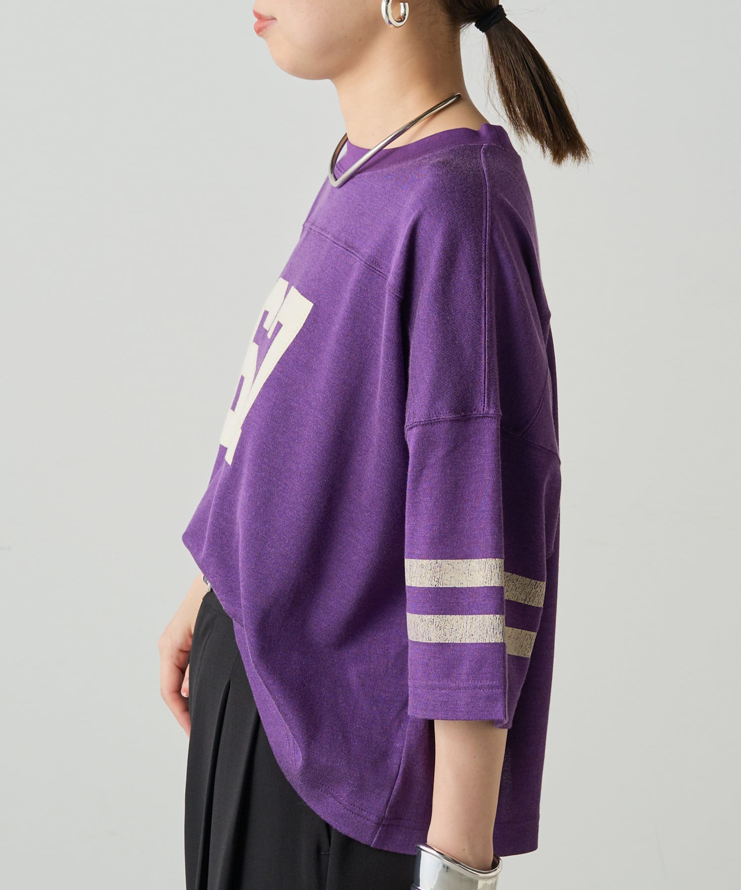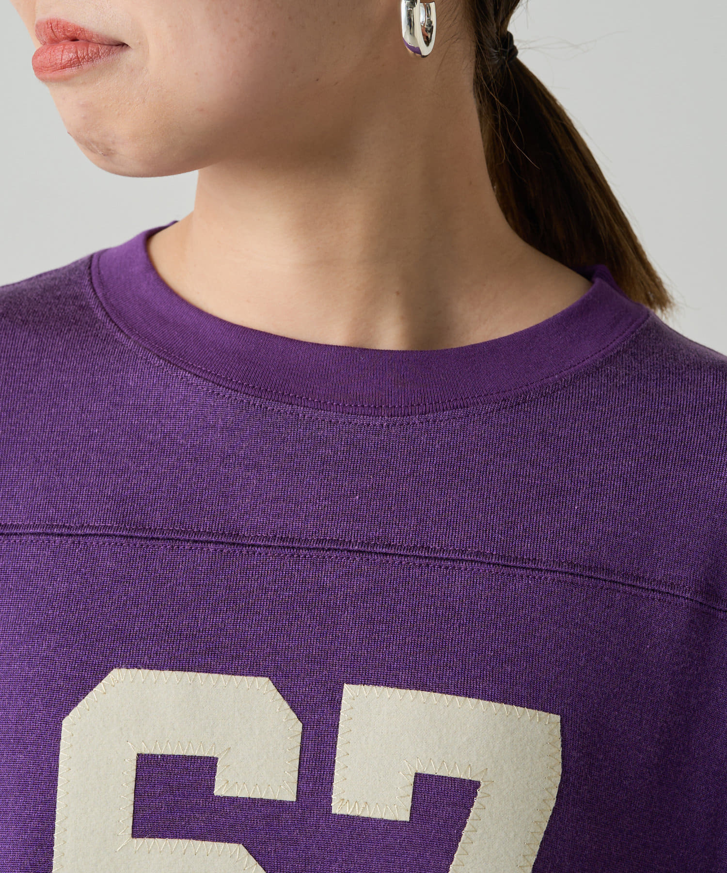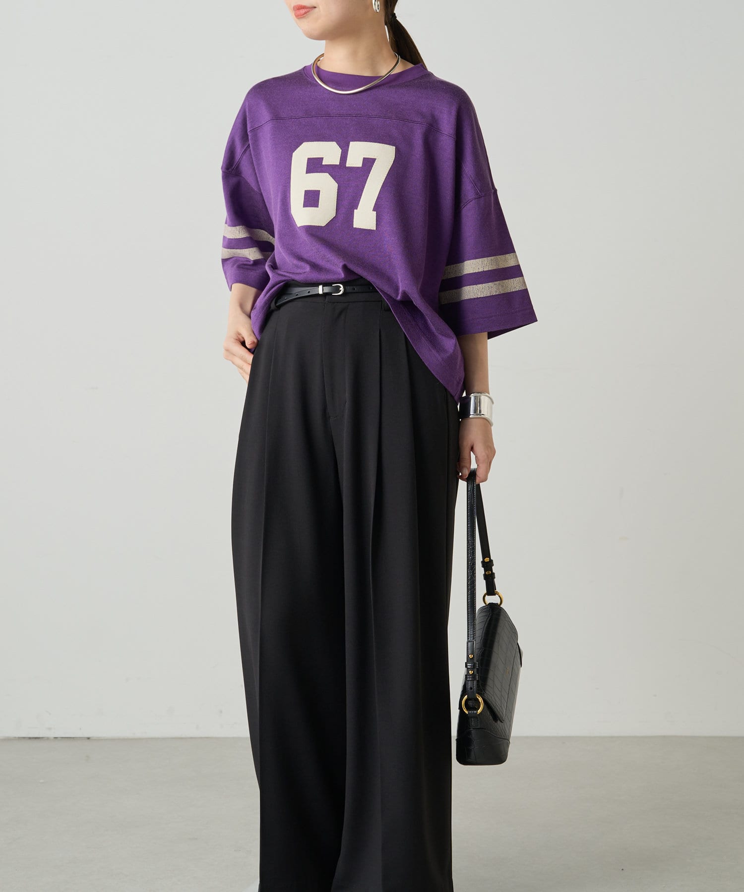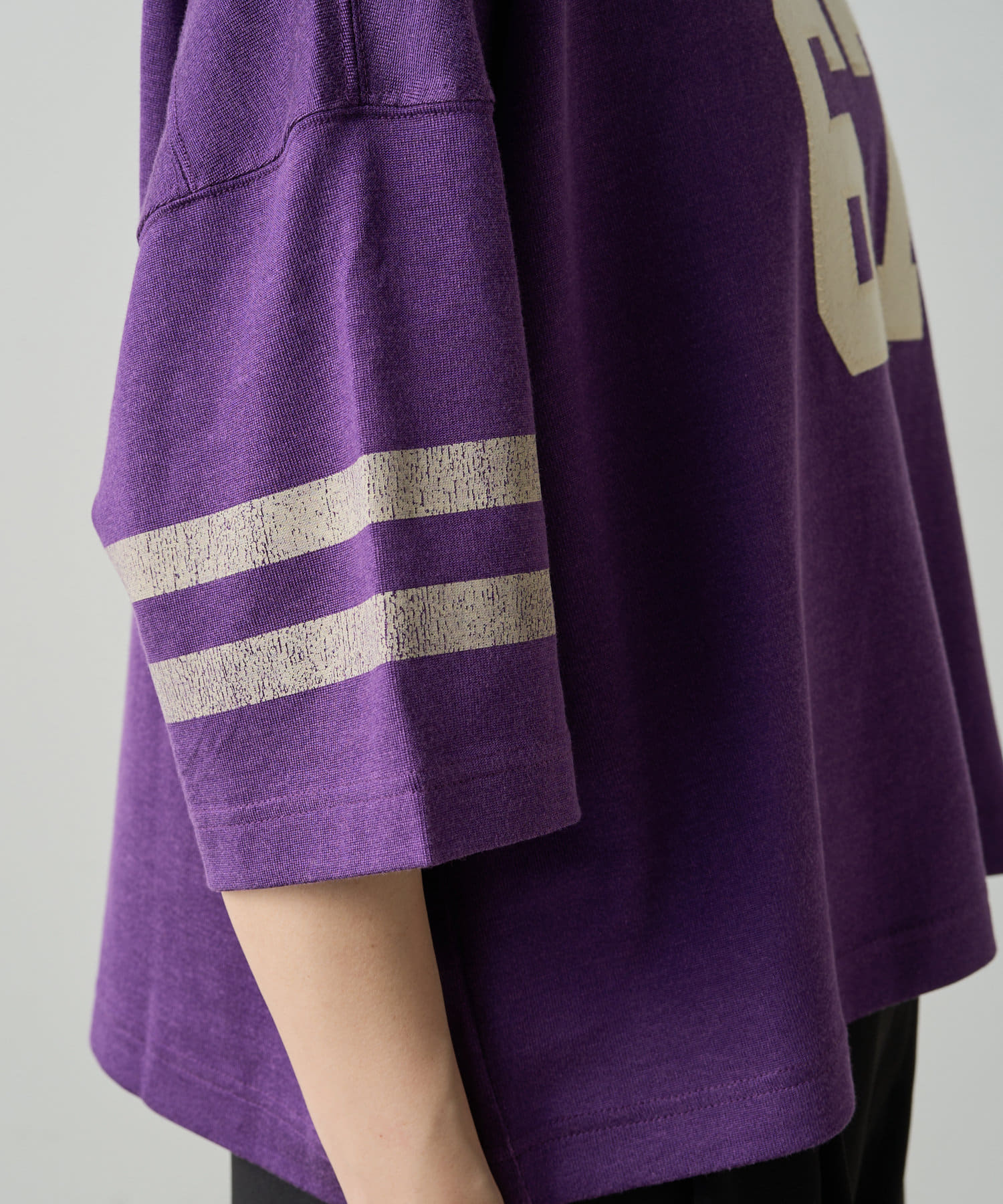 ナンバーロゴと袖のラインがスポーティなデザインのTシャツ。