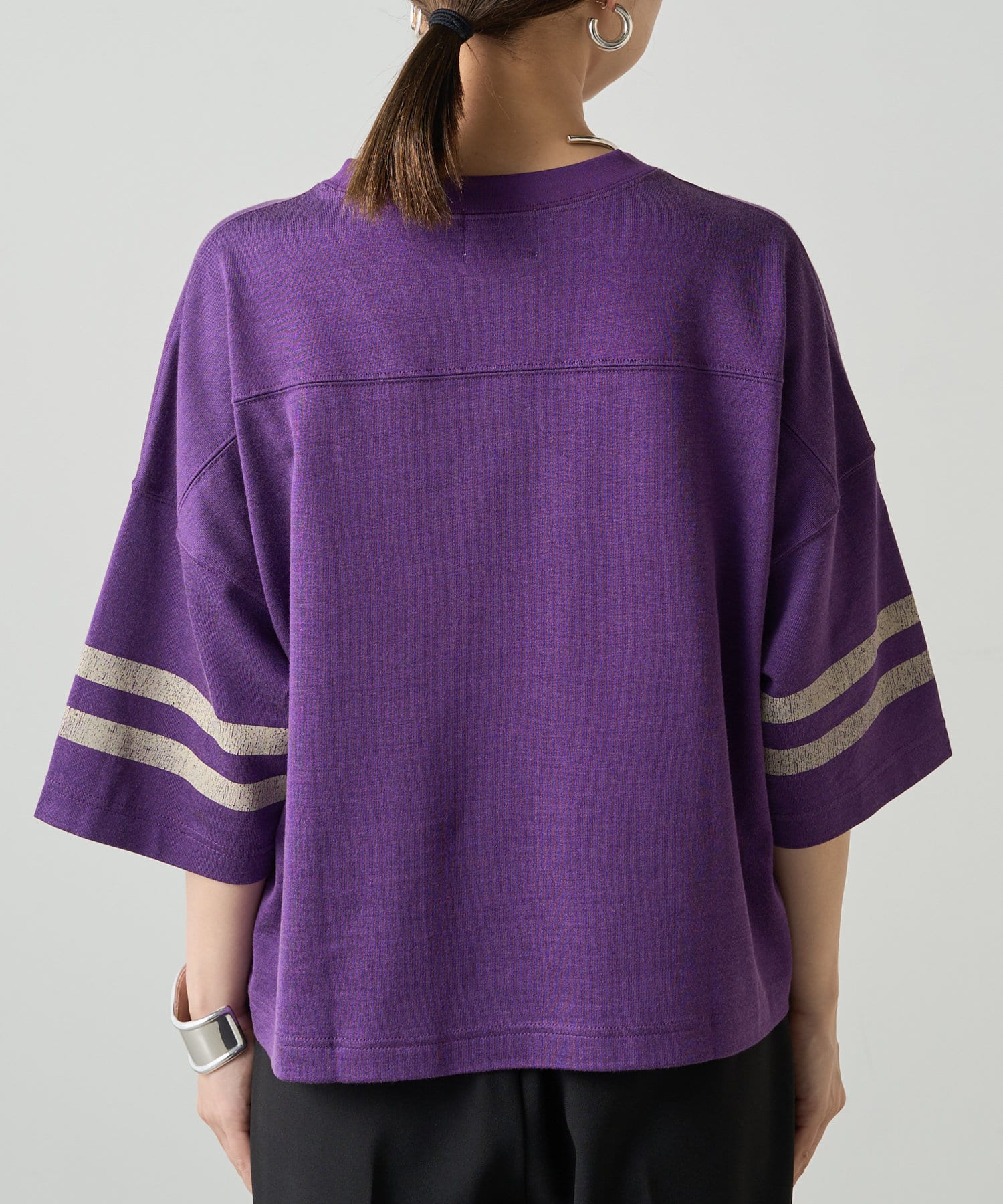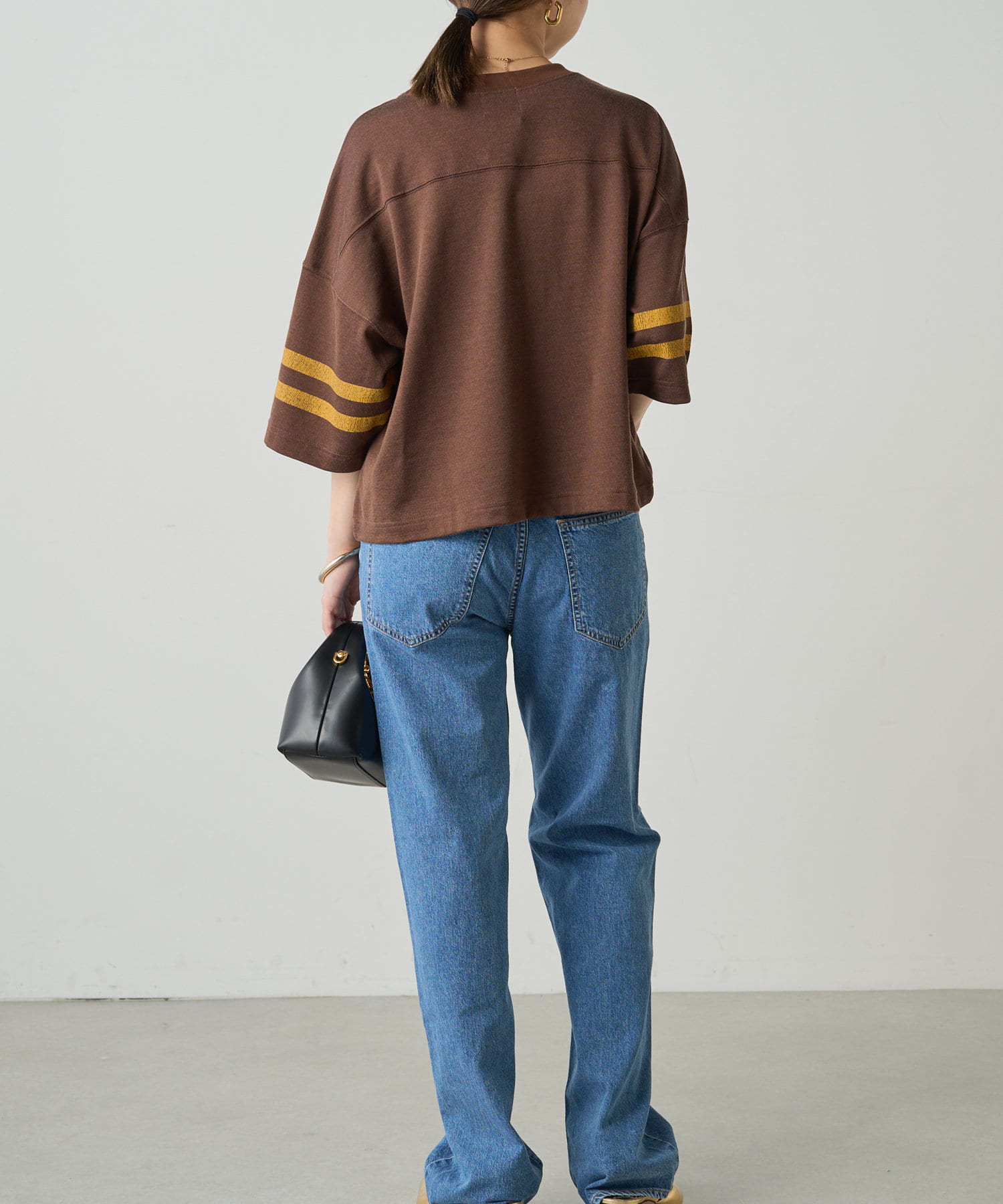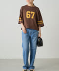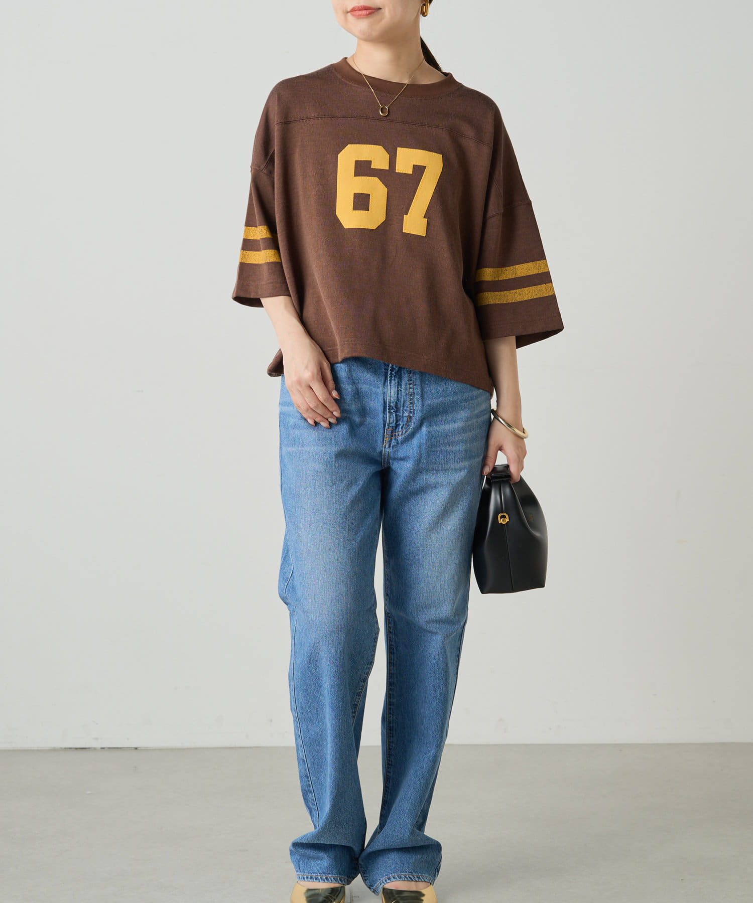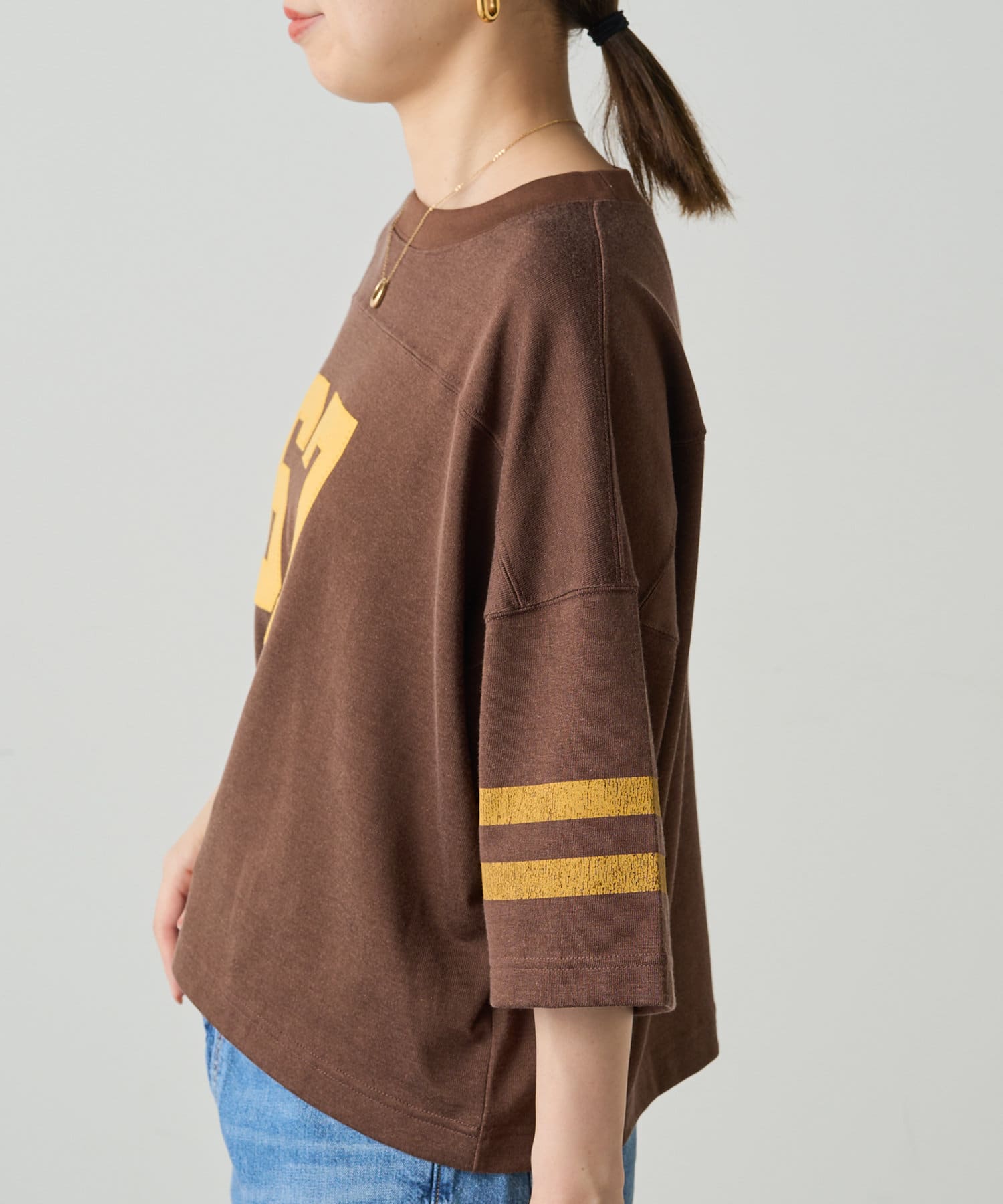 ナンバーロゴと袖のラインがスポーティなデザインのTシャツ。