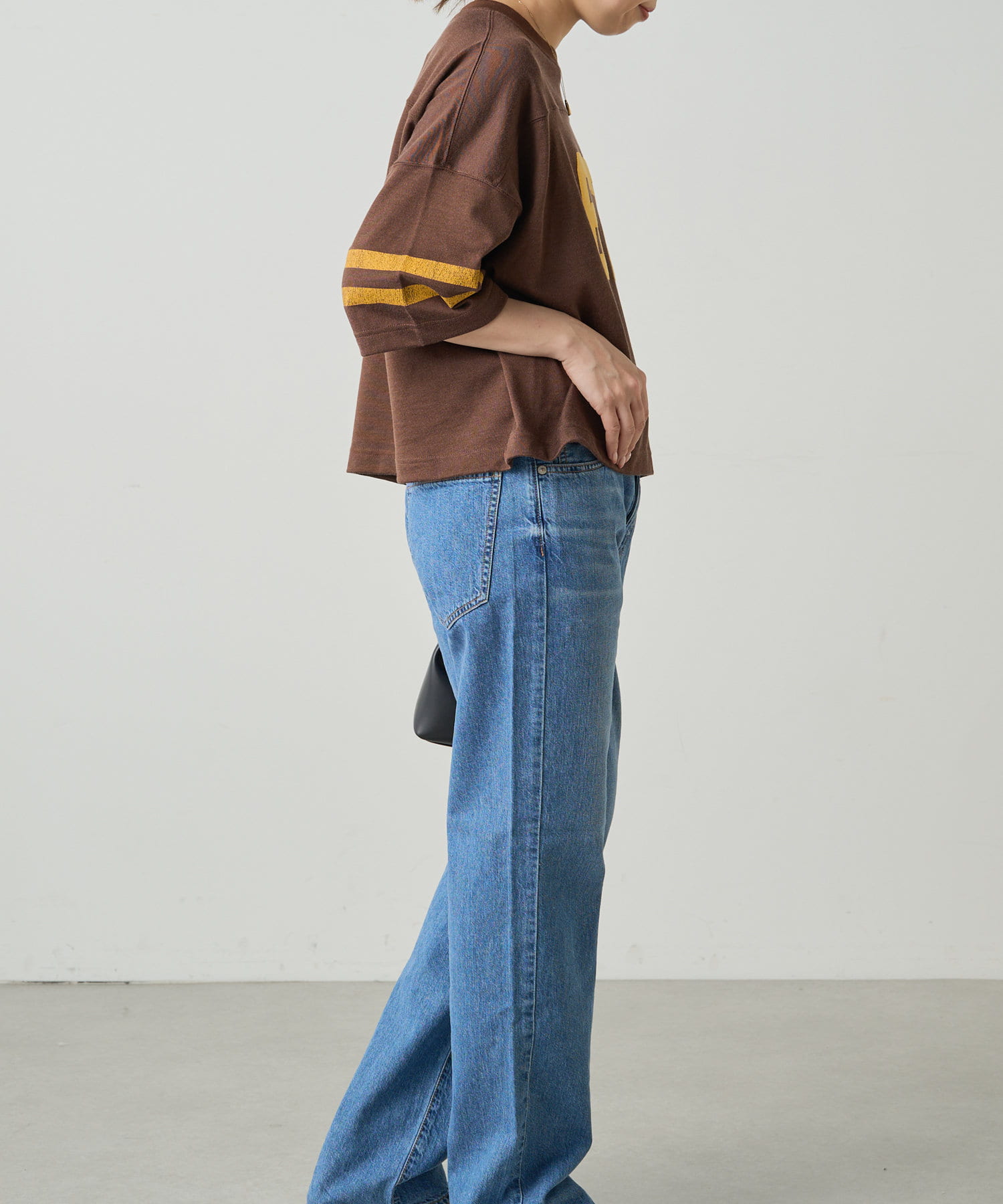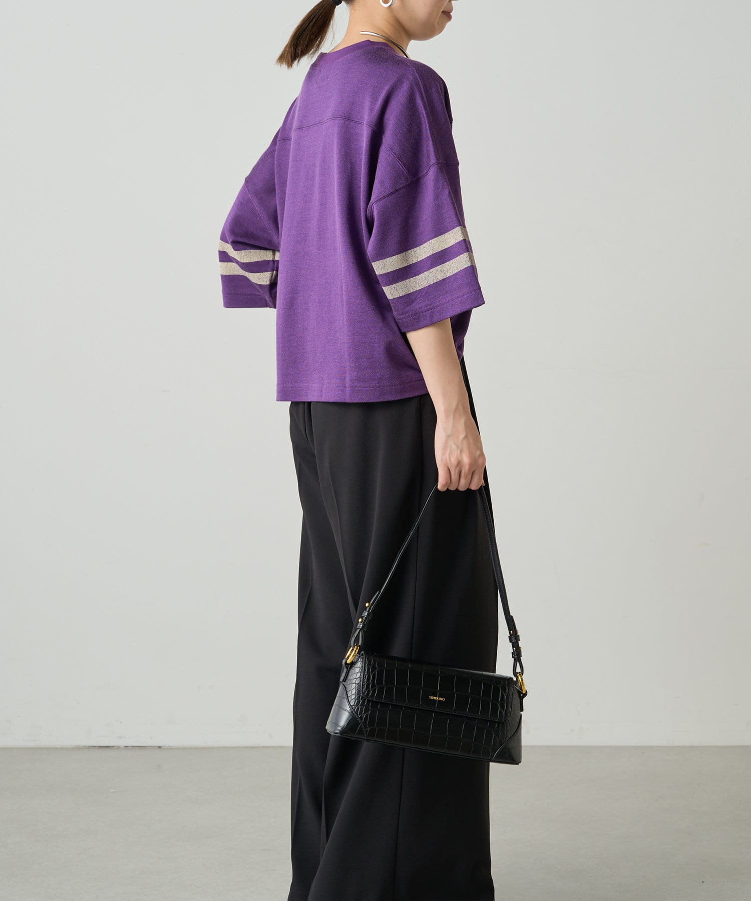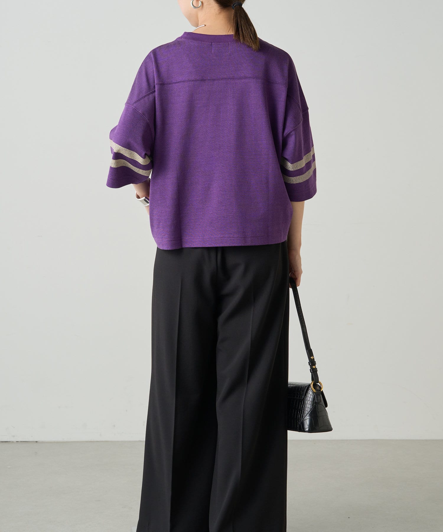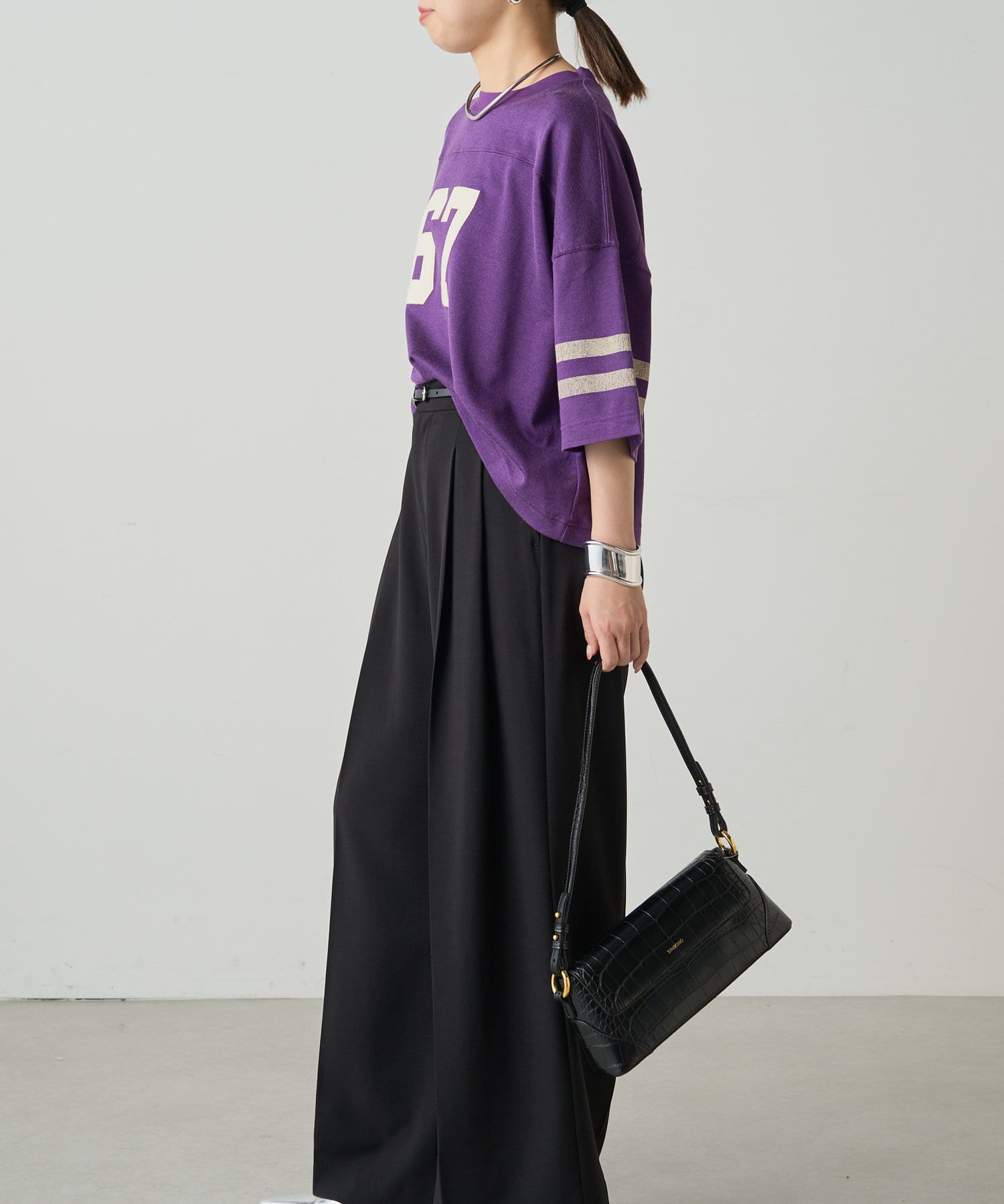 ナンバーロゴと袖のラインがスポーティなデザインのTシャツ。