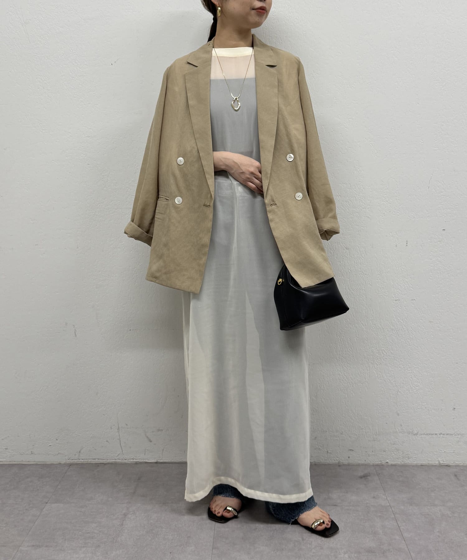 今季らしいシアー感のあるワンピース